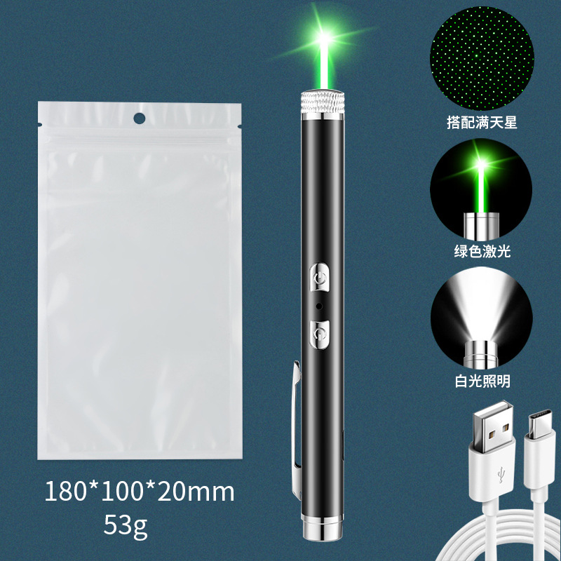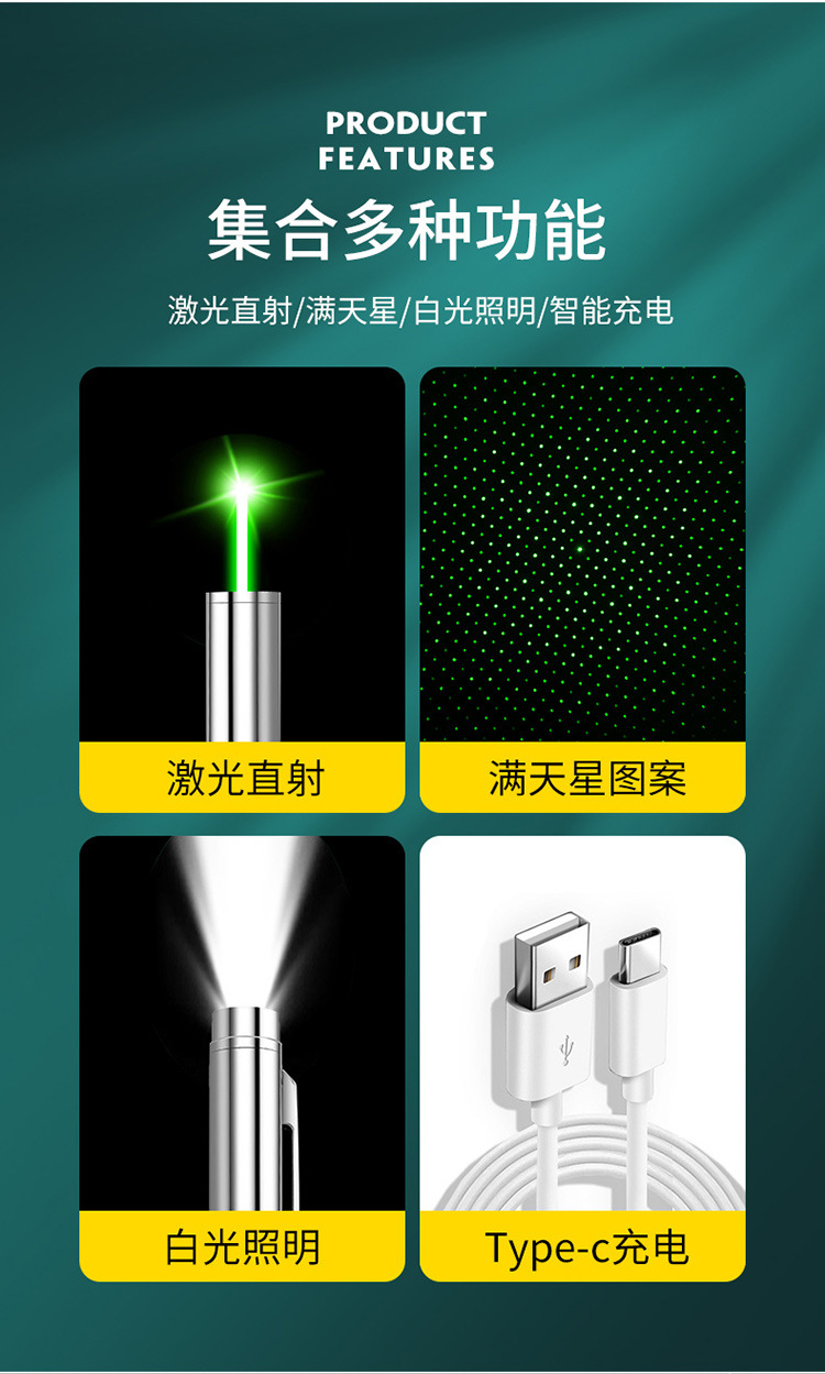 功能:激光光点+激光满天星+强光照明