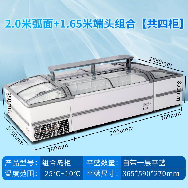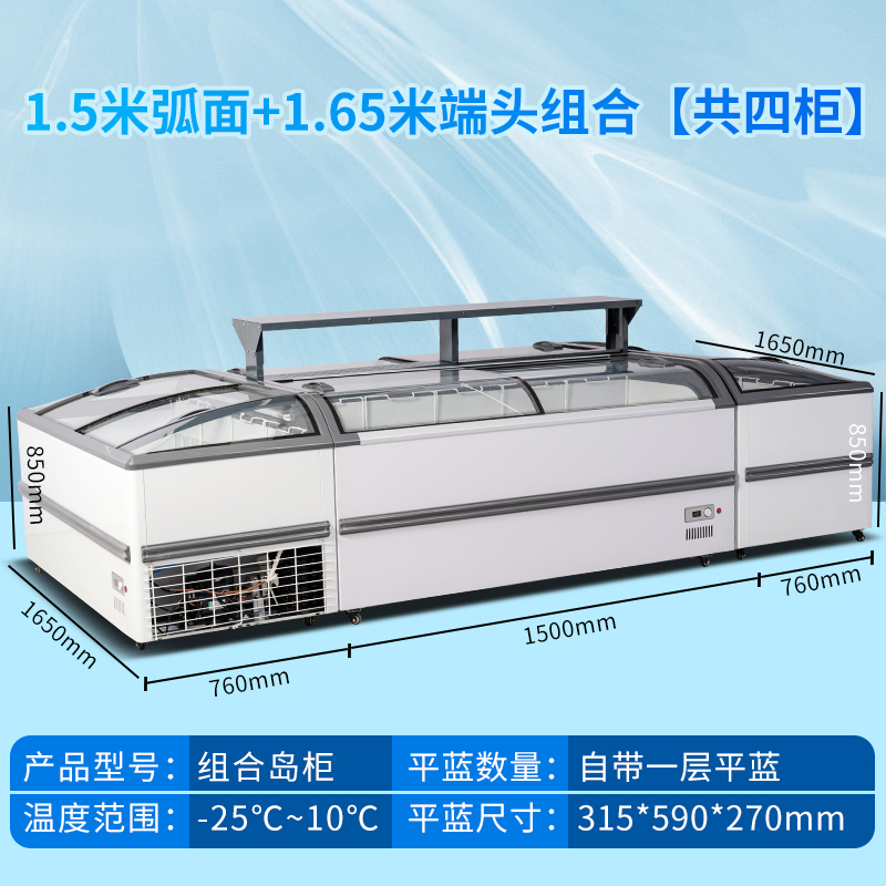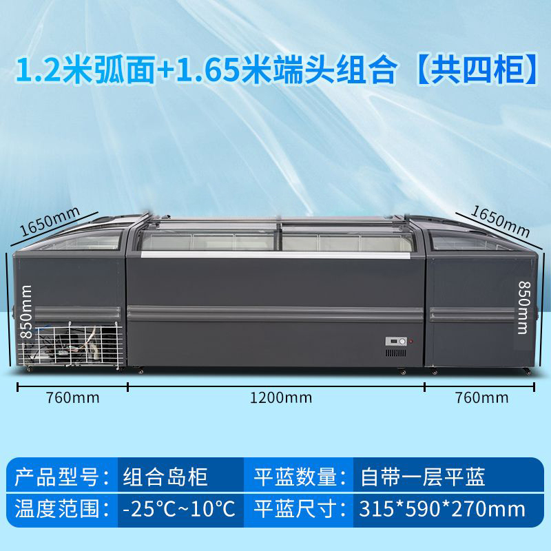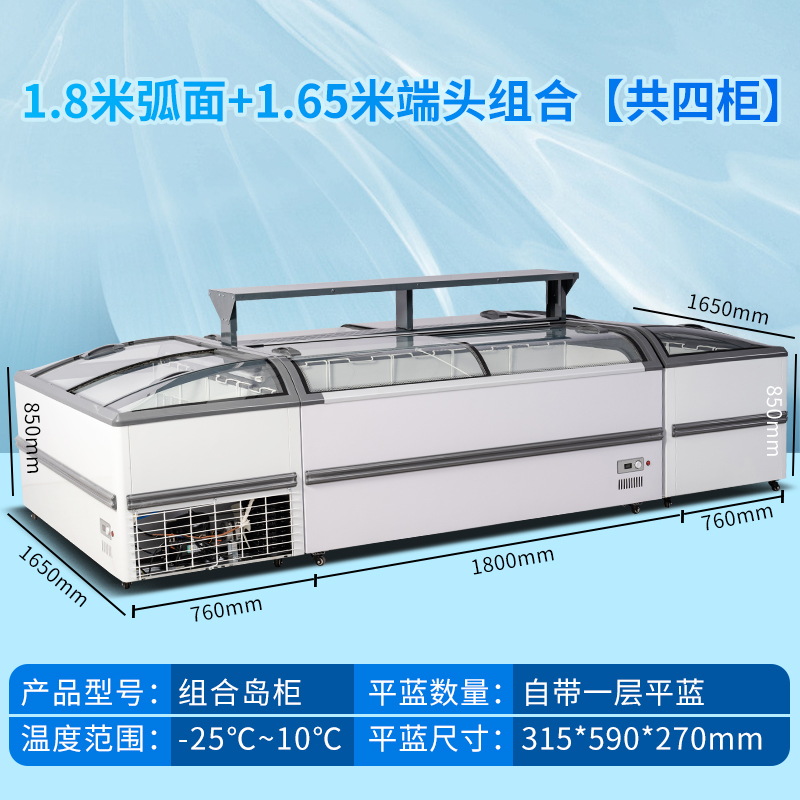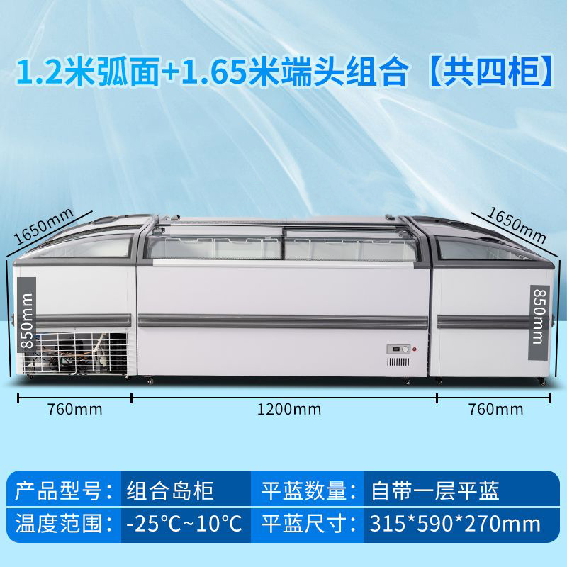 수평 냉장 상업용 대용량 아크 투명 유리 아이스크림 캐비닛 슈퍼마켓 조합 냉동 디스플레이 캐비닛 섬 캐비닛