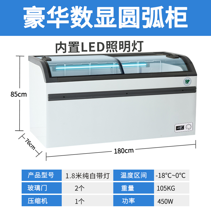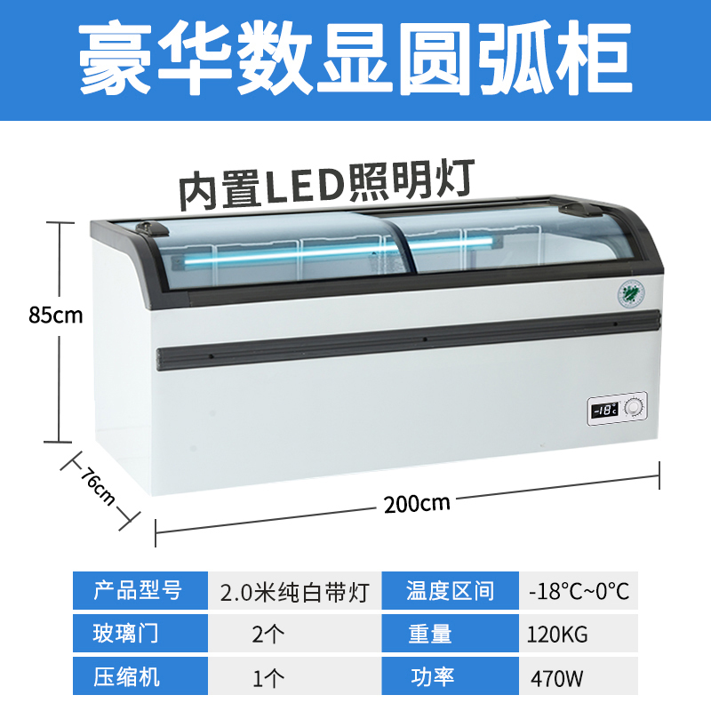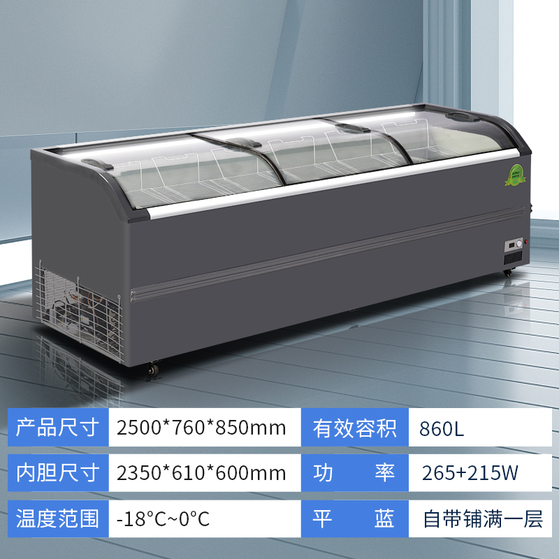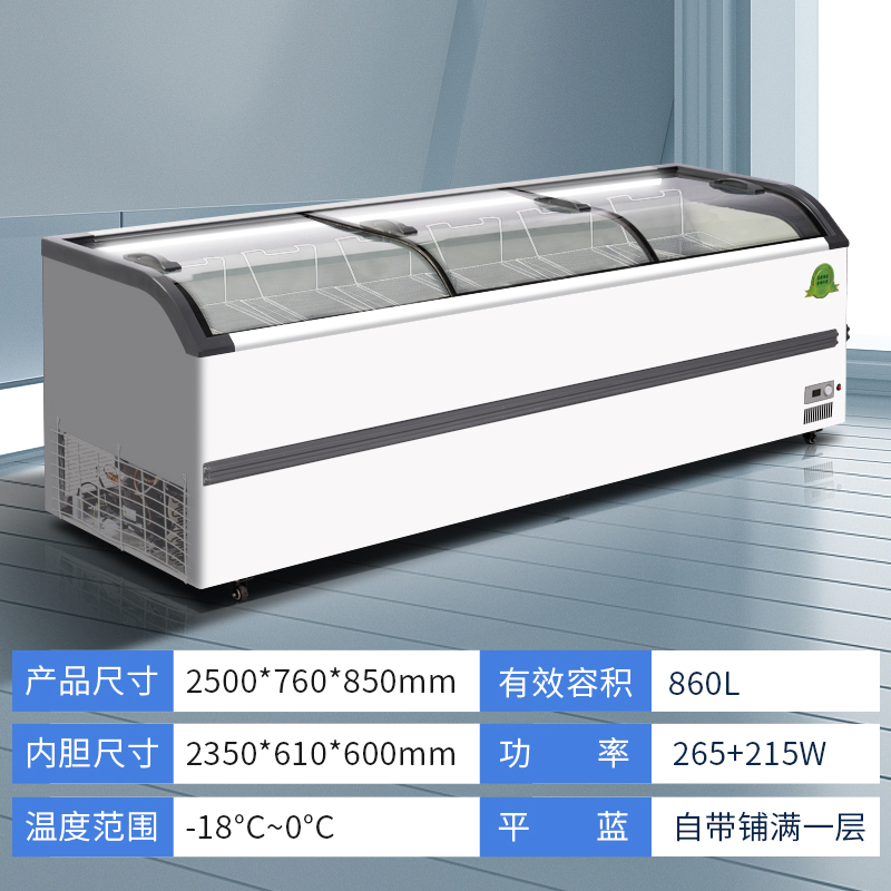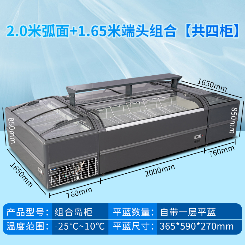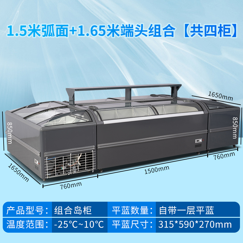 수평 냉장 상업용 대용량 아크 투명 유리 아이스크림 캐비닛 슈퍼마켓 조합 냉동 디스플레이 캐비닛 섬 캐비닛