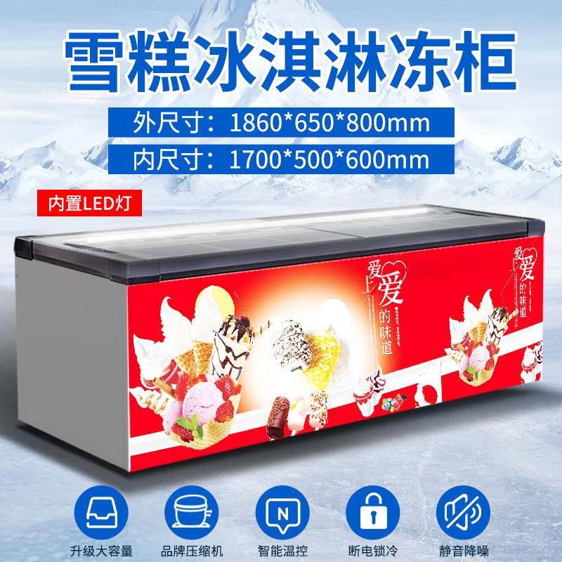 • 1.7m 조명이 달린 구리 튜브 아이스크림 캐비닛