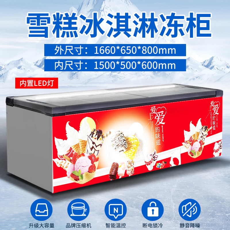 • 1.6m 조명이 달린 구리 튜브 아이스크림 캐비닛