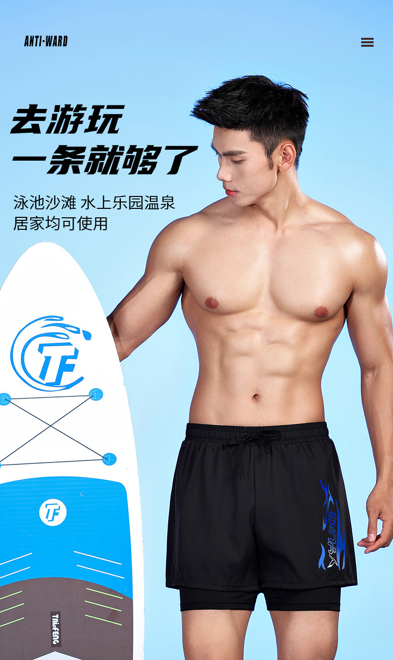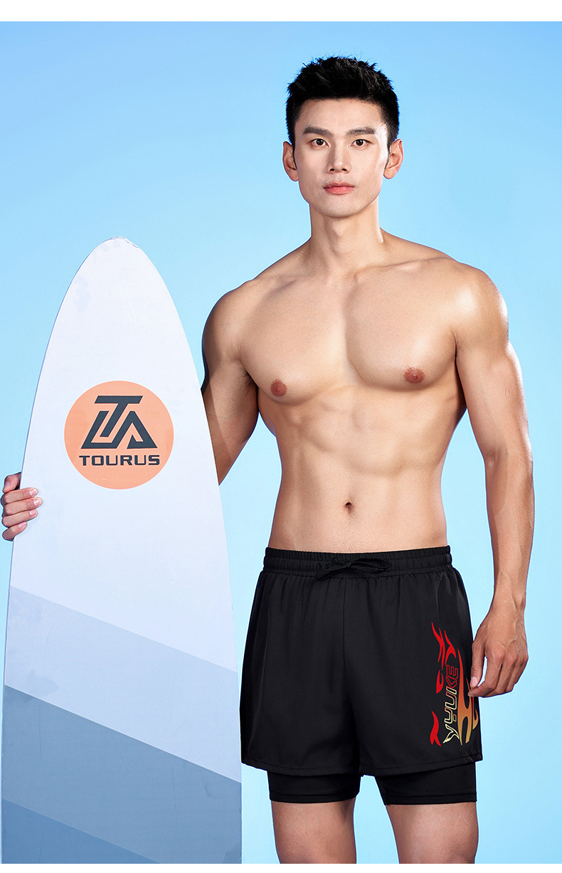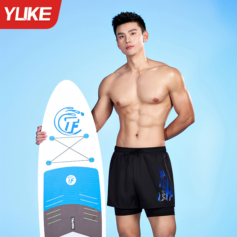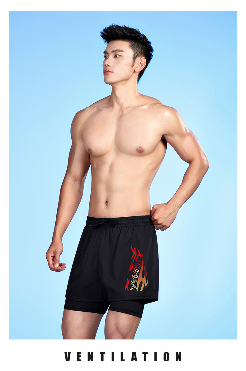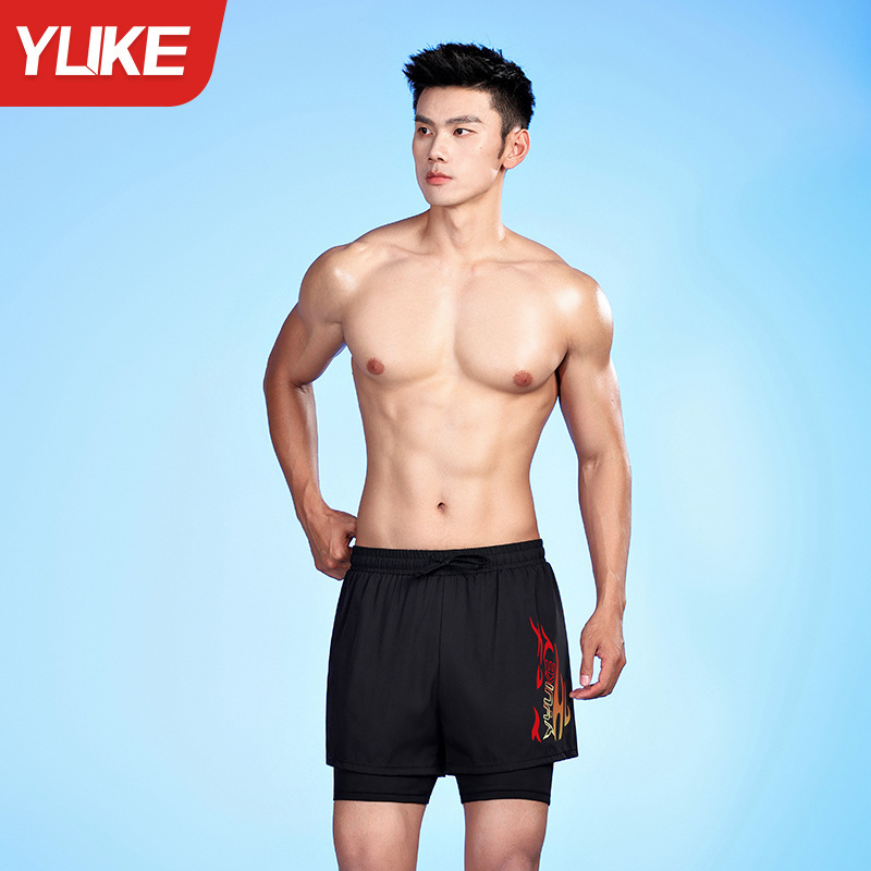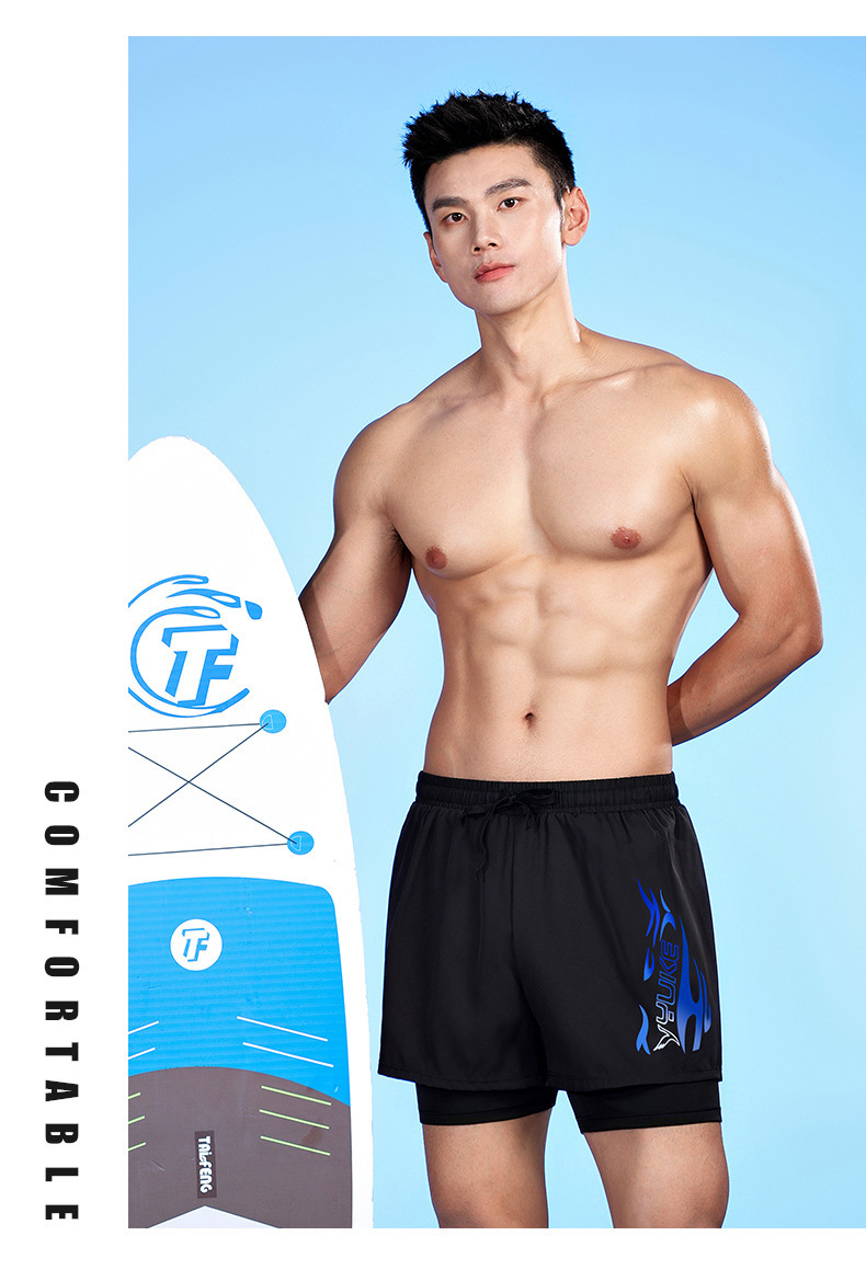 남성용 더블 레이어 수영 트렁크 여름 플랫 앵글 성인 빠른 건조 방황 수영 트렁크 비치 바지 온천 수영 장비 도매스토어 가기