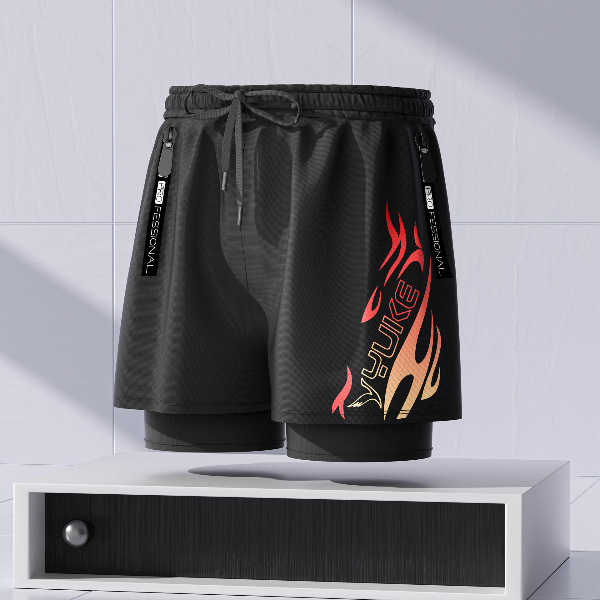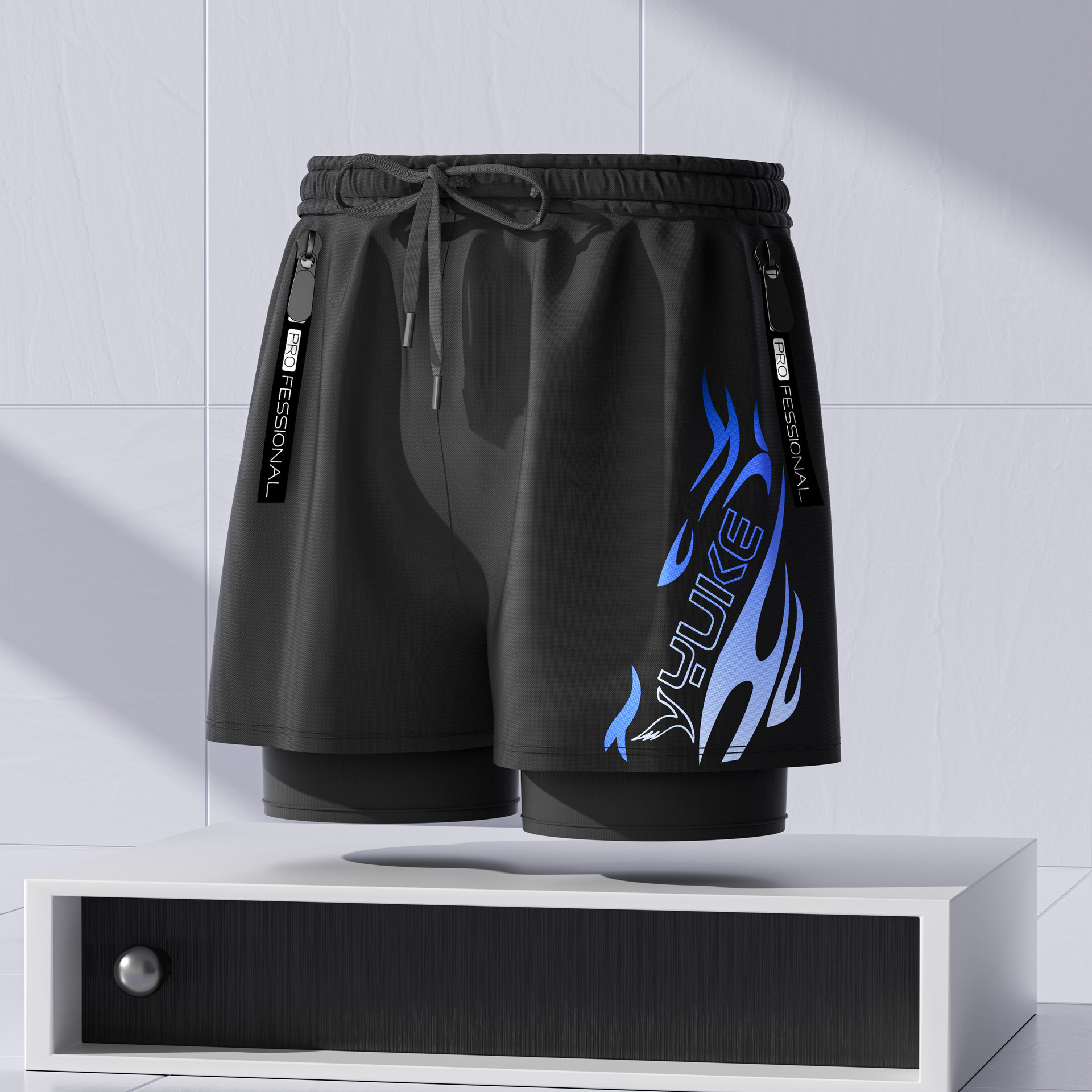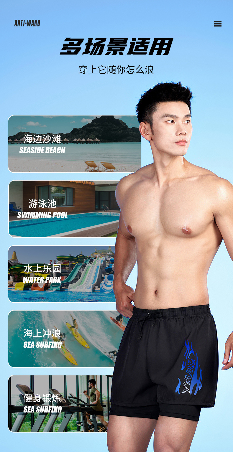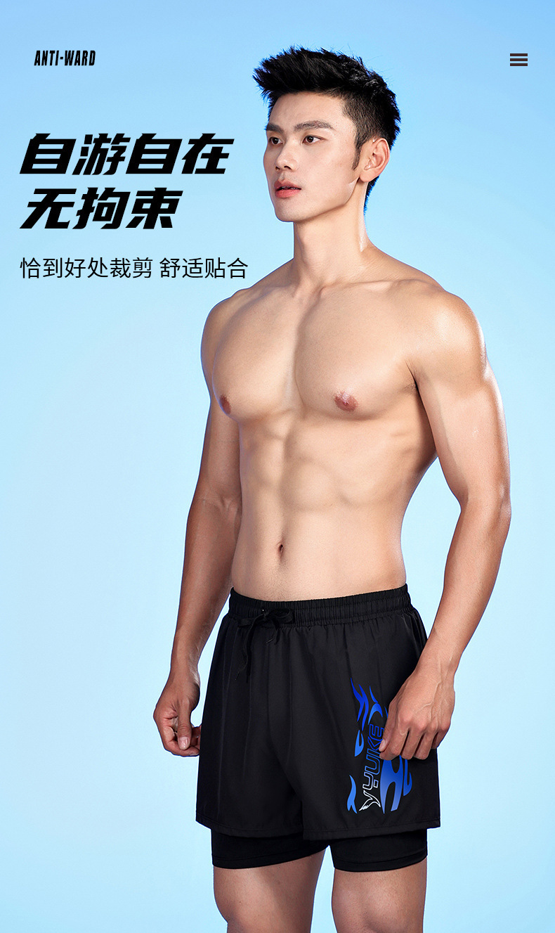 남성용 더블 레이어 수영 트렁크 여름 플랫 앵글 성인 빠른 건조 방황 수영 트렁크 비치 바지 온천 수영 장비 도매스토어 가기