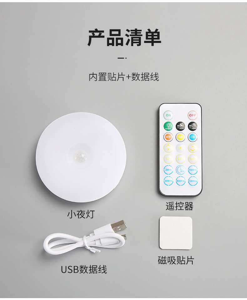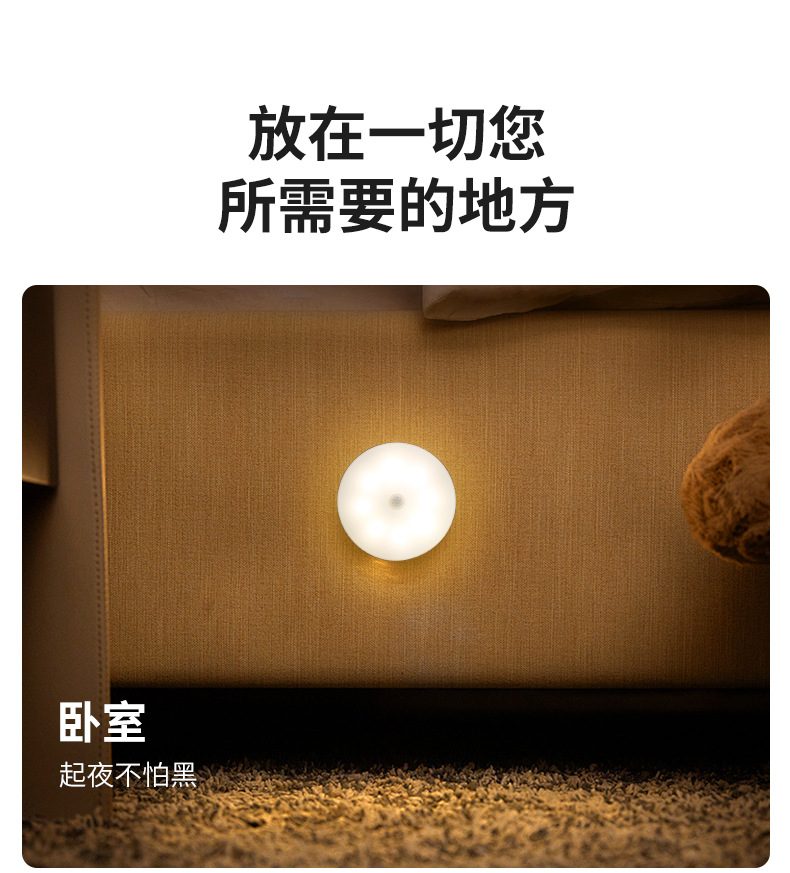 도매 LED 지능형 인체 유도 야간 조명 라운드 충전 원격 제어 자기 침실 의류 캐비닛 통로 조명