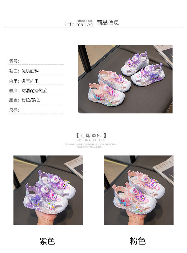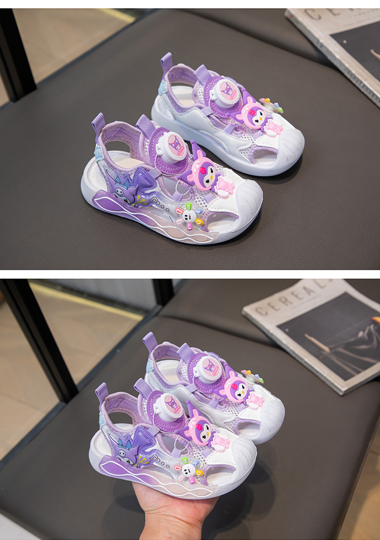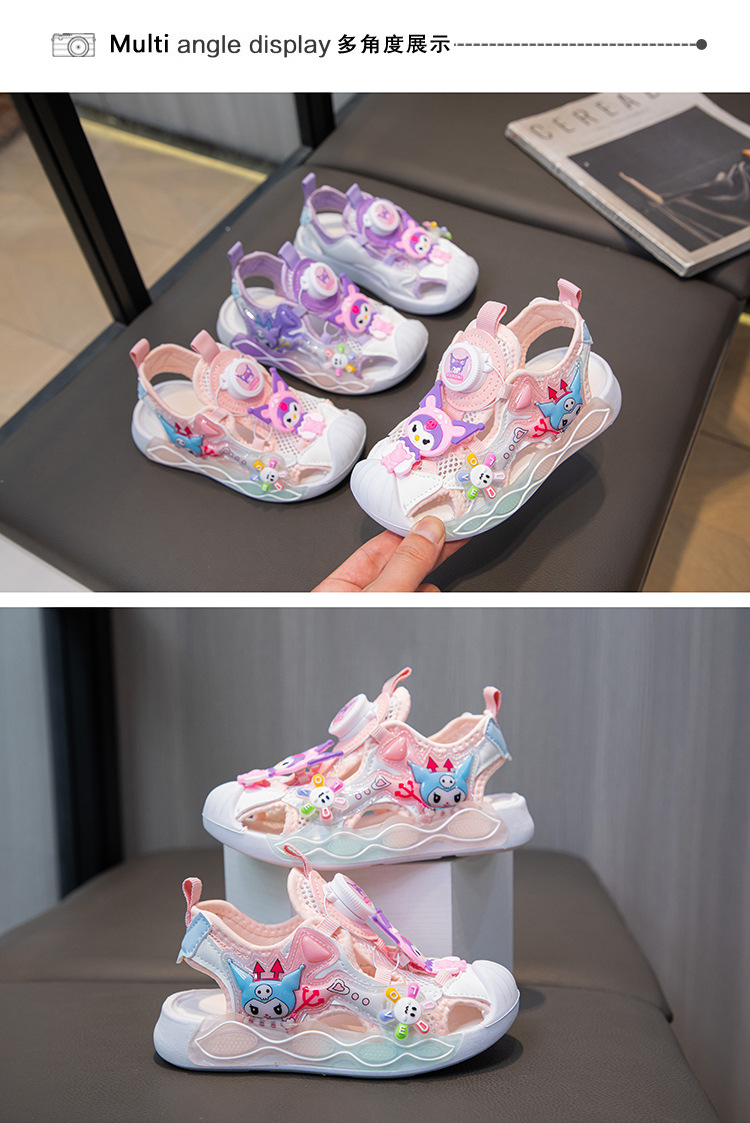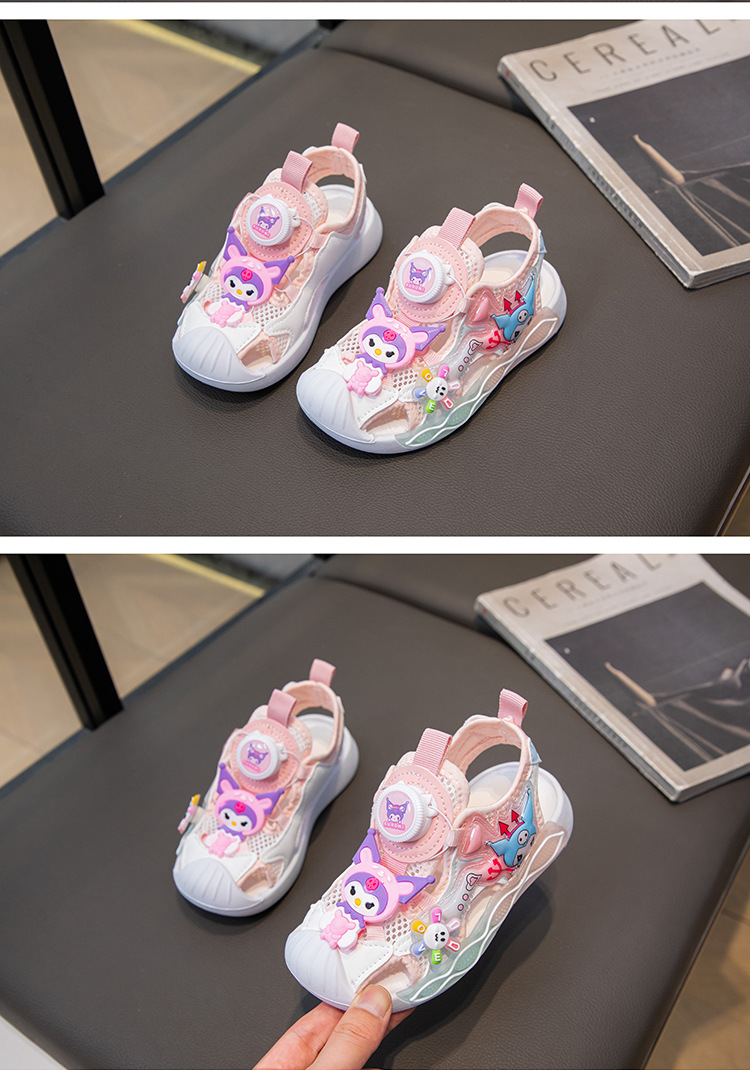 소녀 2024 여름 새로운 어린이 동굴 신발 메쉬 통기성 학교 공주 신발 회전 버튼 스포츠 샌들스토어 가기