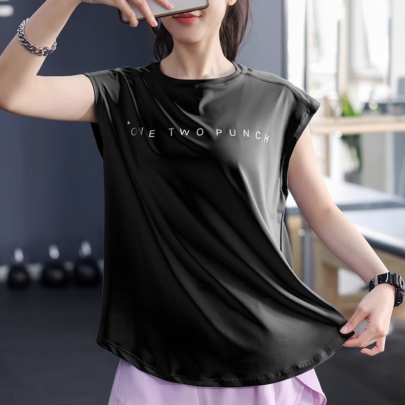 달리기 민소매 블라우스 여름 스포츠 조끼 외부 착용 느슨한 통기성 커버 팔 피트니스 빠른 건조 요가 탑 여름스토어 가기