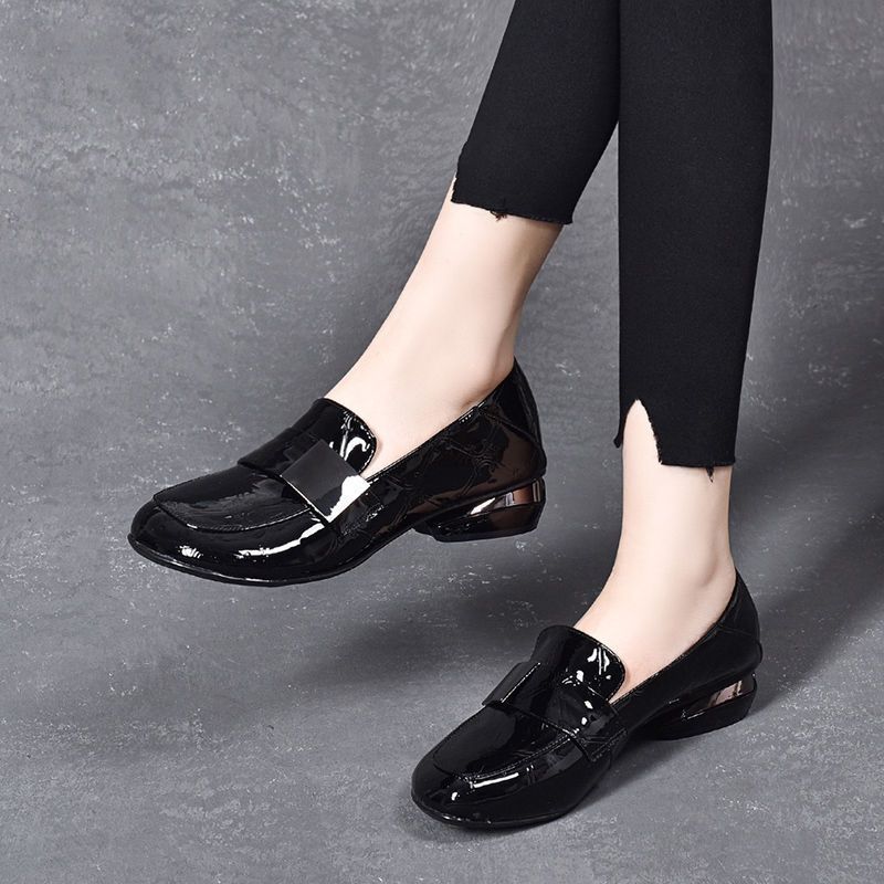 진짜 부드러운 가죽 싱글 레이어 신발 여성의 2024 봄과 가을 새로운 부드러운 바닥 플랫 신발 여성 특허 가죽 로퍼 낮은 발 뒤꿈치 작은 가죽 신발스토어 가기