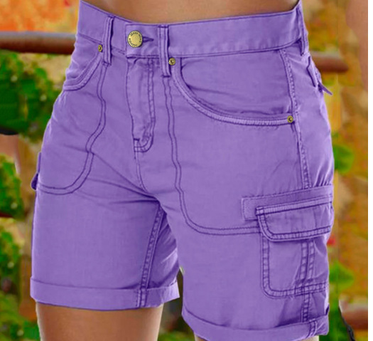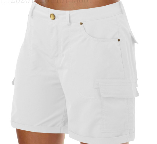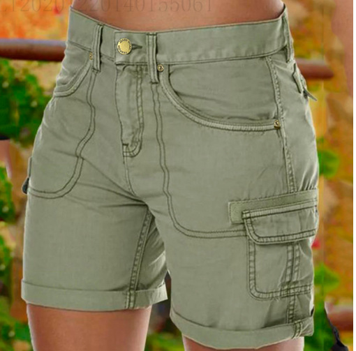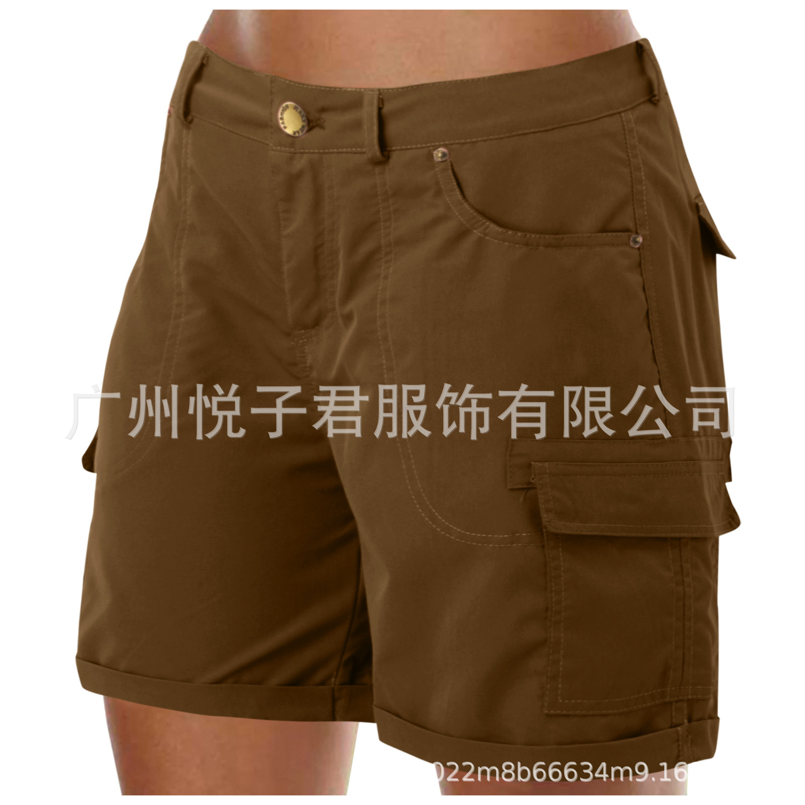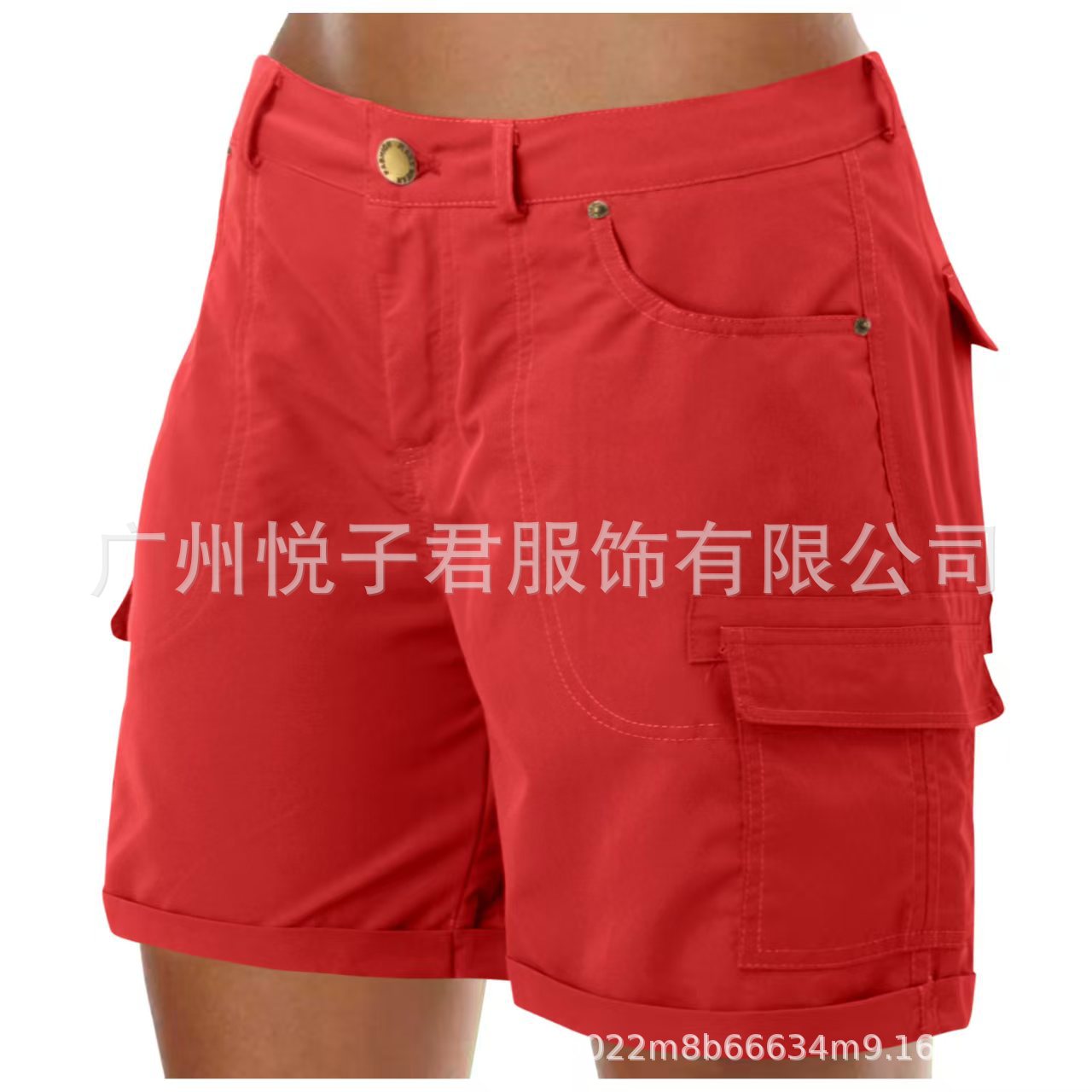 11 색상 7 사이즈 여성용 카고 바지 캐주얼 바지 하이 웨이스트 얇은 멀티 포켓 루즈 와이드 레그 반바지