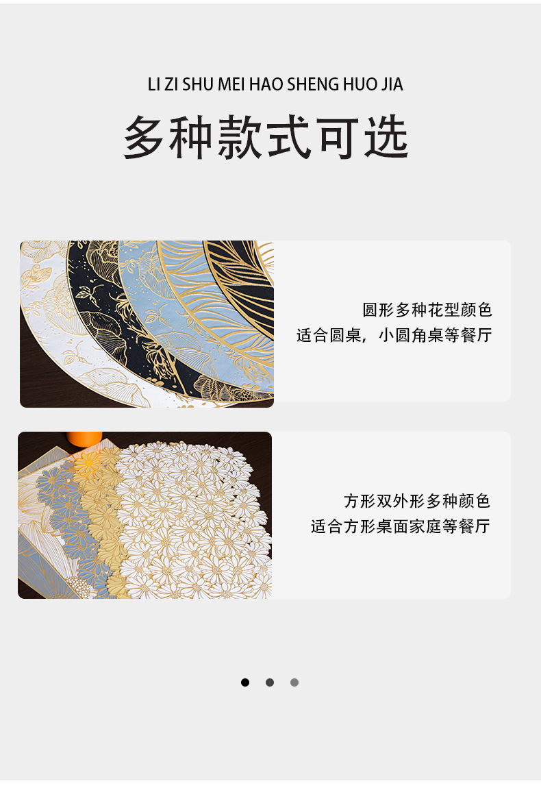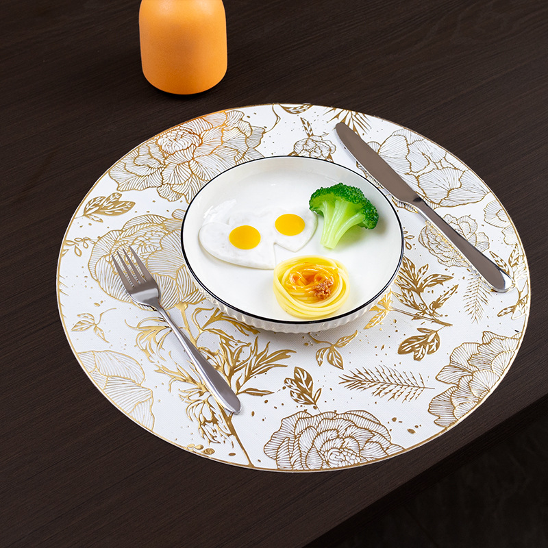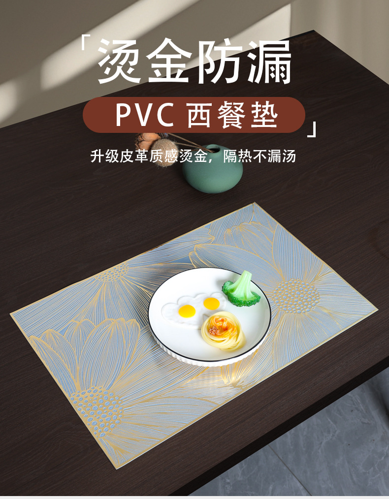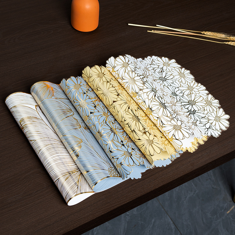 새로운 패턴 PVC 서양식 테이블 매트 노르딕 스타일 단열 매트 라이트 럭셔리 브론징 방수 미끄럼 방지 테이블 매트 제조 업체 도매스토어 가기