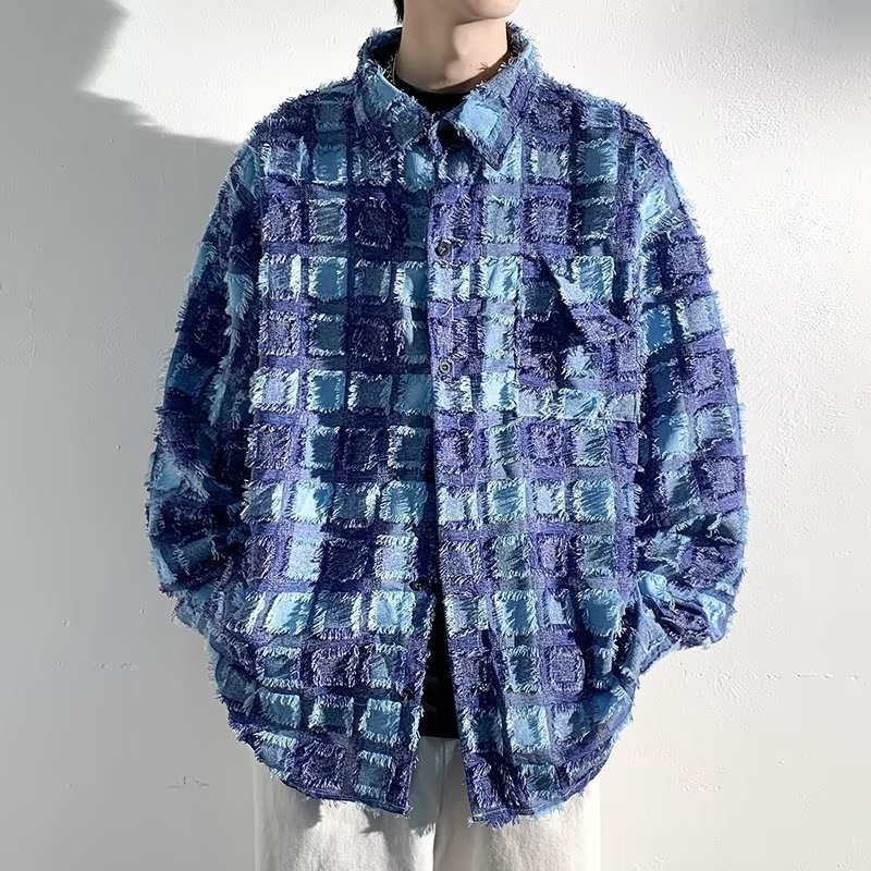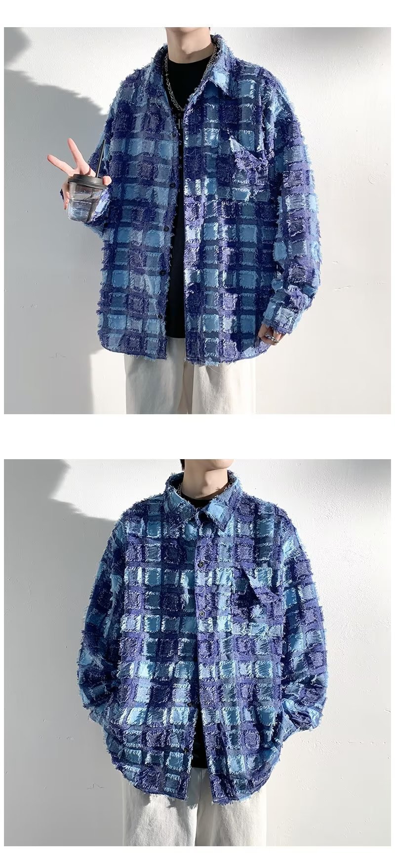 고급 디자인 센스 셔츠 남자의 긴팔 2024 가을 새로운 유행 유행 유행 잘 생긴 최고 남자의 격자 무늬 헝겊 셔츠