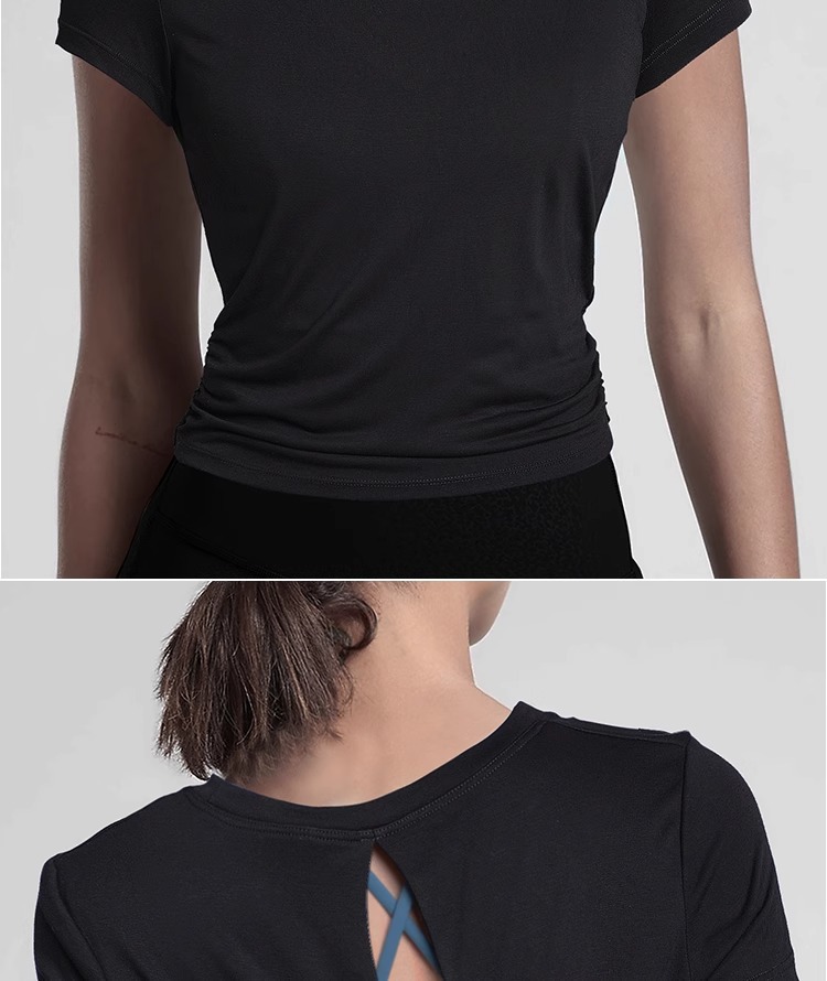 요가 탑 틈새 달리기 피트니스 옷 블라우스 빠른 건조 통기성 반팔 슬림 핏 슬리밍 스포츠 티셔츠 여성용 여름스토어 가기