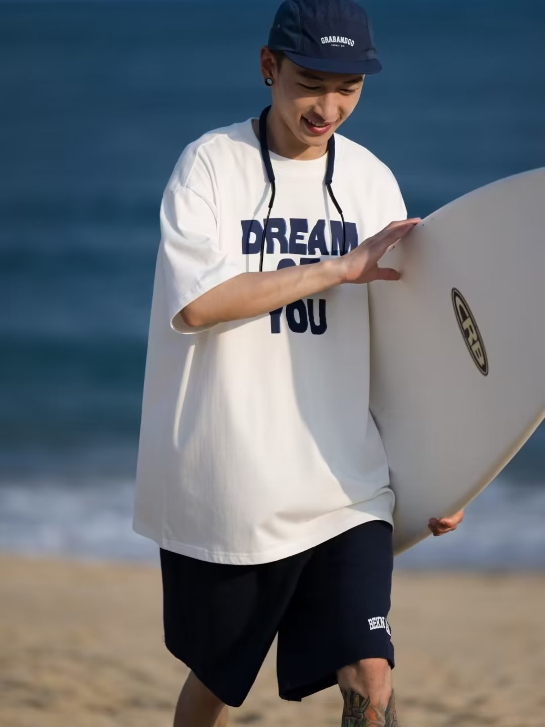 여름 편지 남자 매일 둥근 목 텍스트 패션 브랜드 5-소매 표준 Ins 디지털 청소년 패션 티셔츠스토어 가기