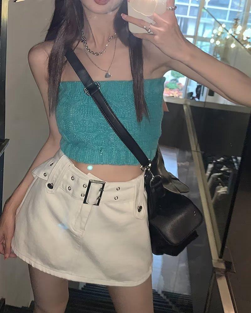 핑크 스커트 여자 2024 년 여름 새로운 슈퍼 스파이스 소녀 높은 허리 슬리밍 라이닝 데님 A 라인 힙합 스커트스토어 가기