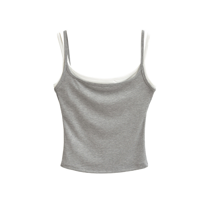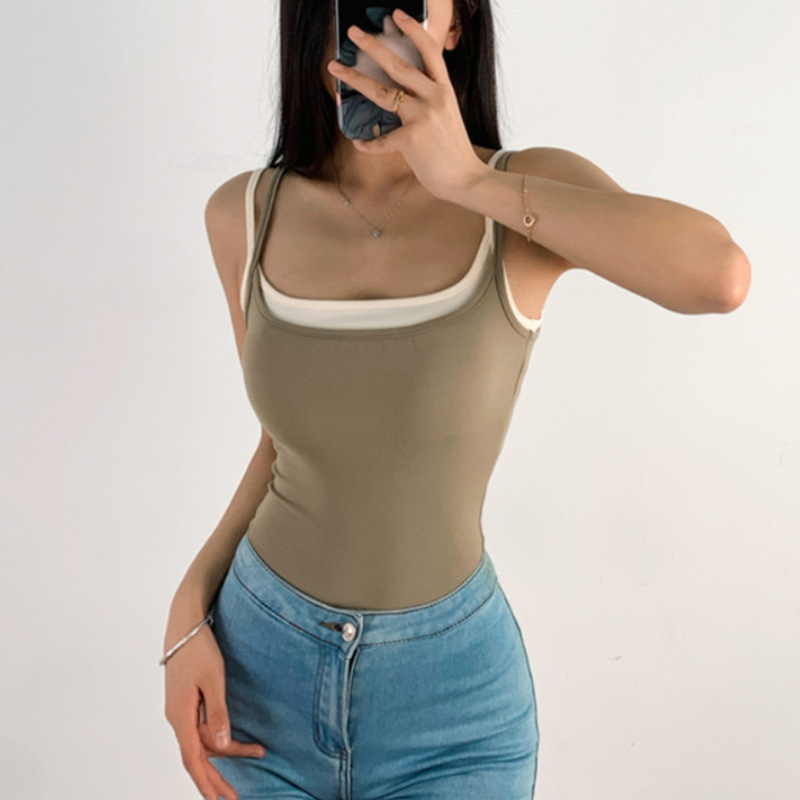 순수한 욕망 스타일 색상 매칭 가짜 투피스 카미솔 여름 새로운 스타일 웨스턴 스타일 슬림 핏 짧은 캐주얼 아우터 내복