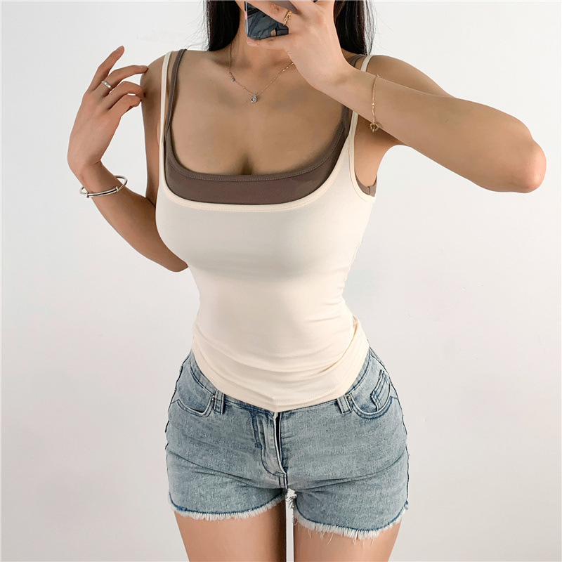 순수한 욕망 스타일 색상 매칭 가짜 투피스 카미솔 여름 새로운 스타일 웨스턴 스타일 슬림 핏 짧은 캐주얼 아우터 내복스토어 가기