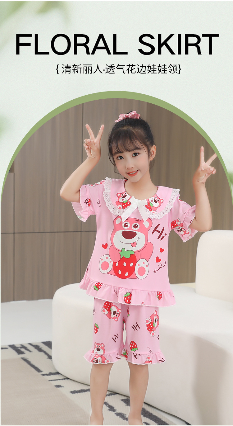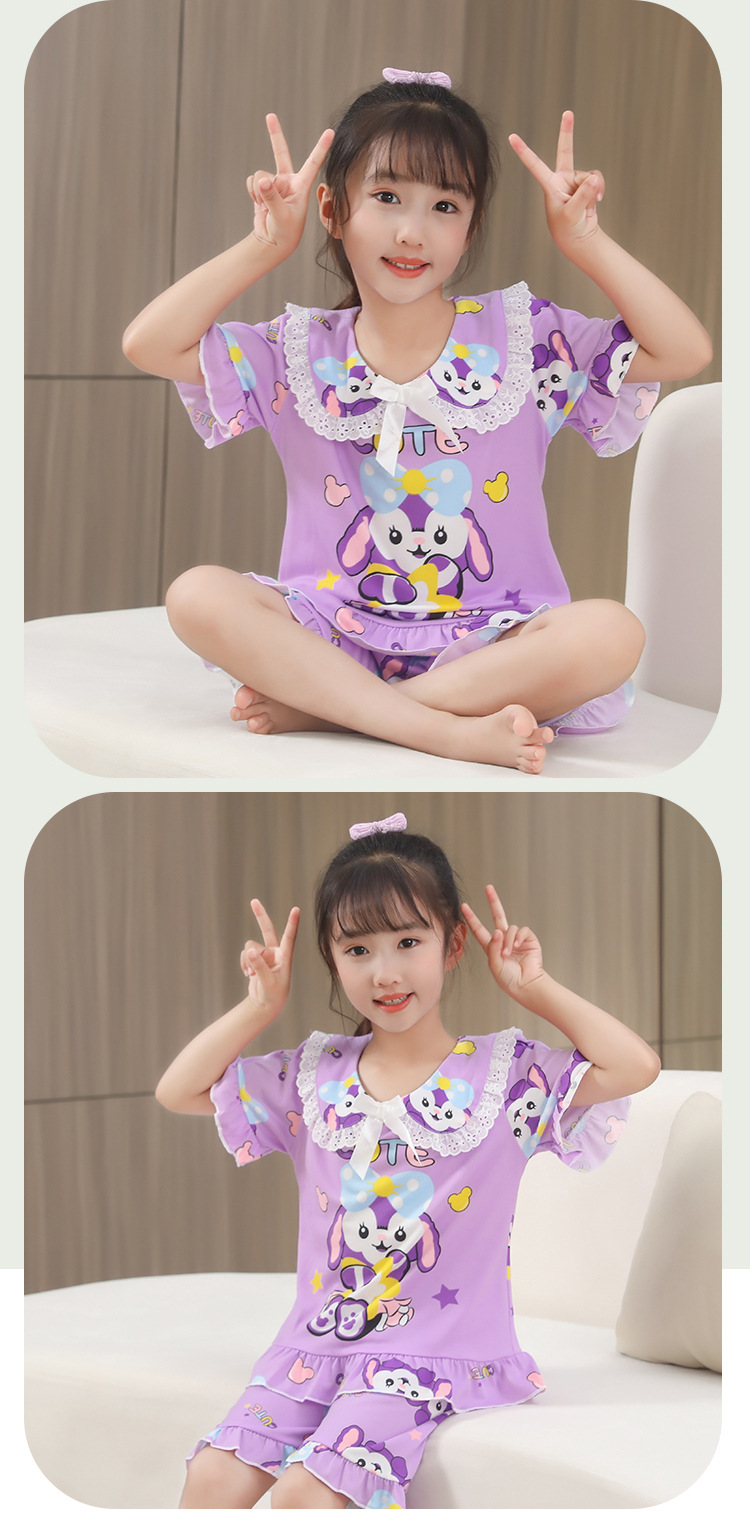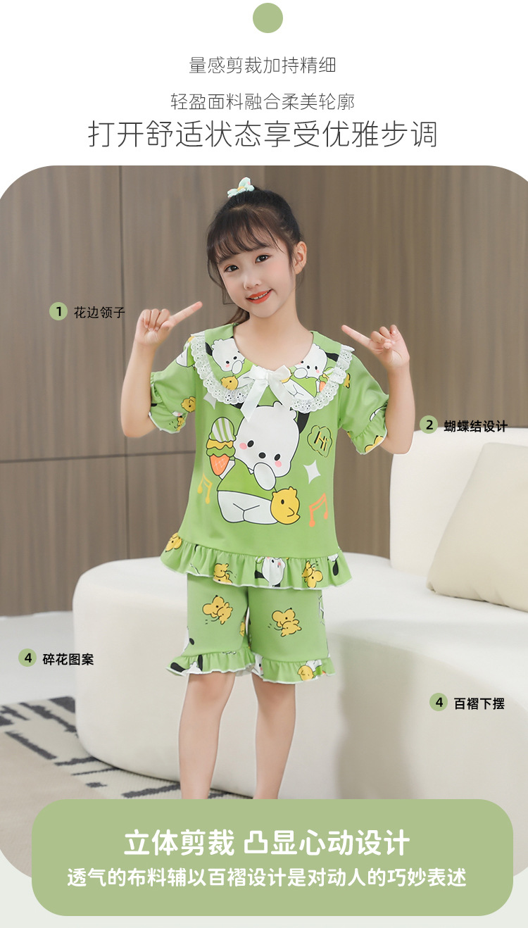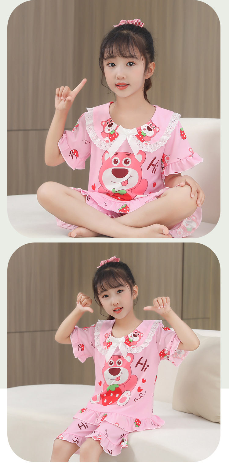 어린이 잠옷 소녀 여름 귀여운 반팔 얇은 만화 큰 아이 작은 소녀 공주 스타일 홈 의류 세트스토어 가기