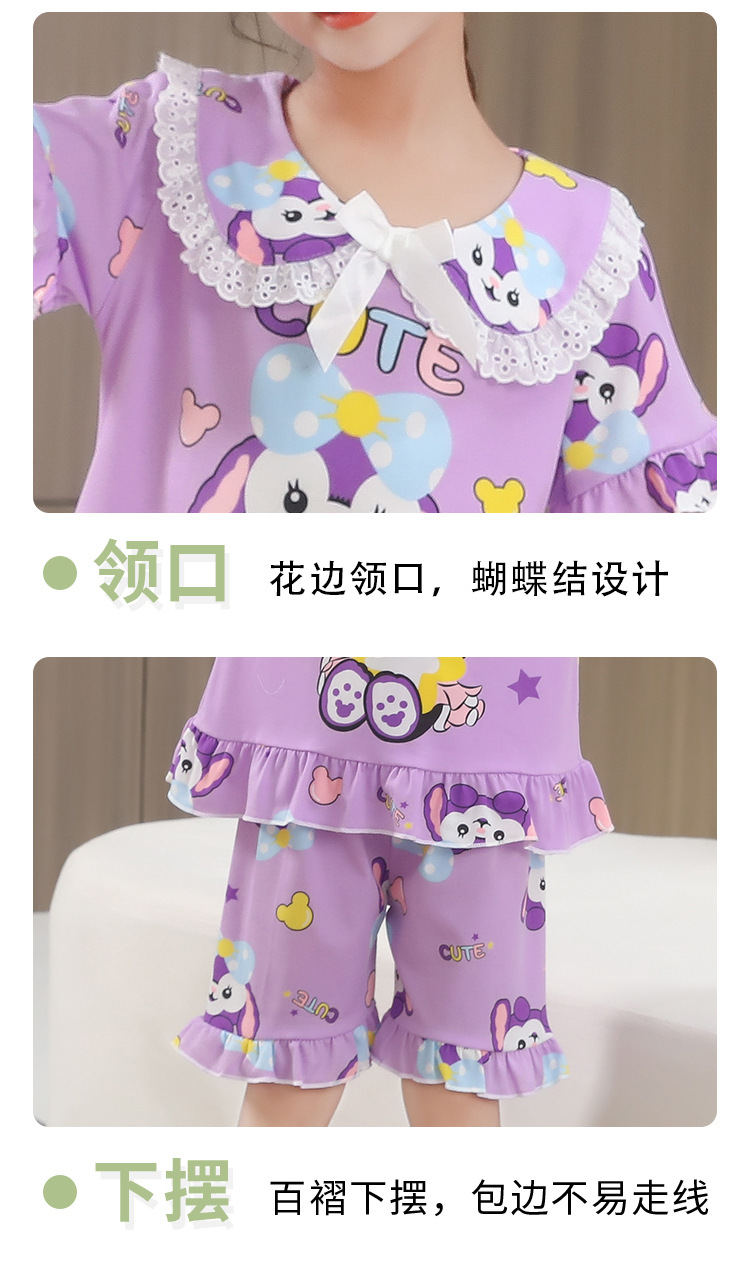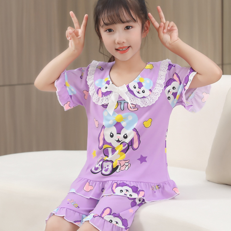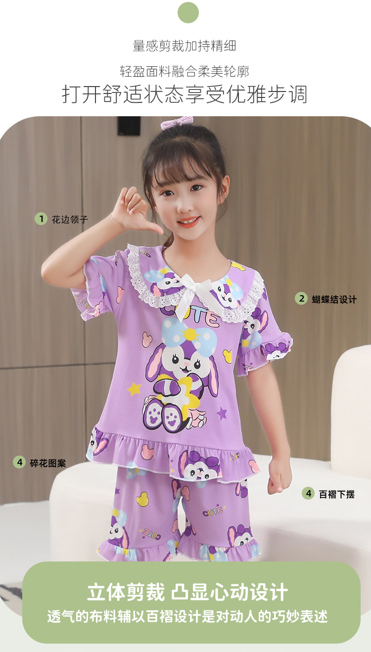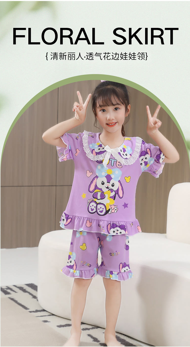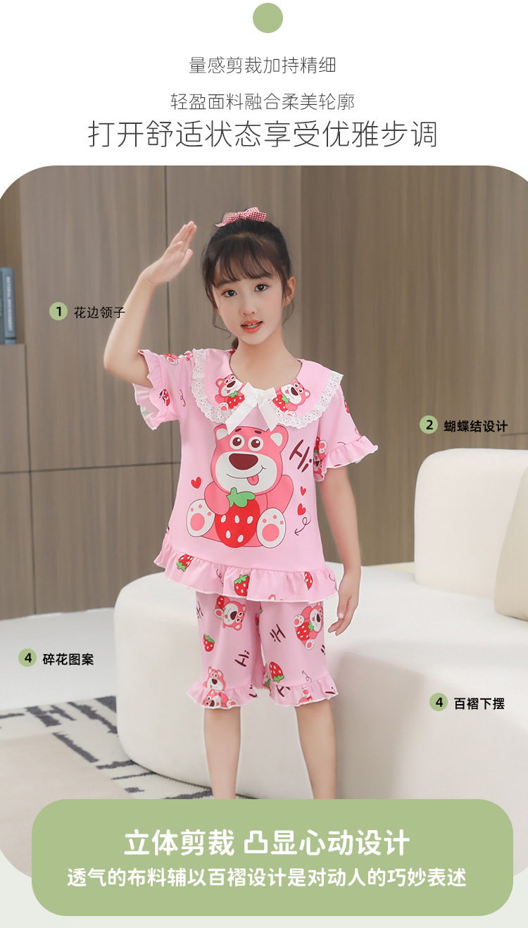어린이 잠옷 소녀 여름 귀여운 반팔 얇은 만화 큰 아이 작은 소녀 공주 스타일 홈 의류 세트스토어 가기