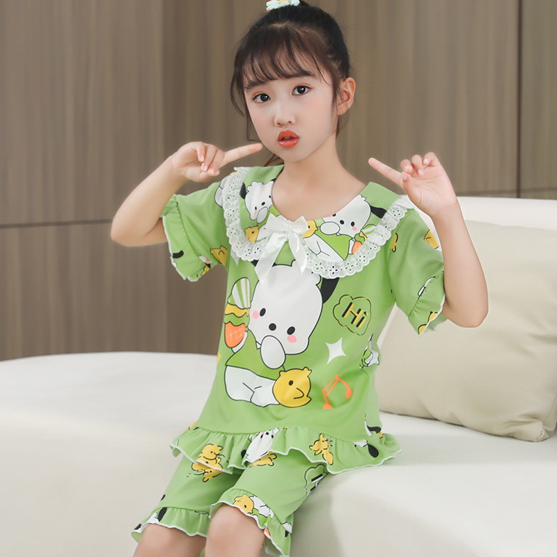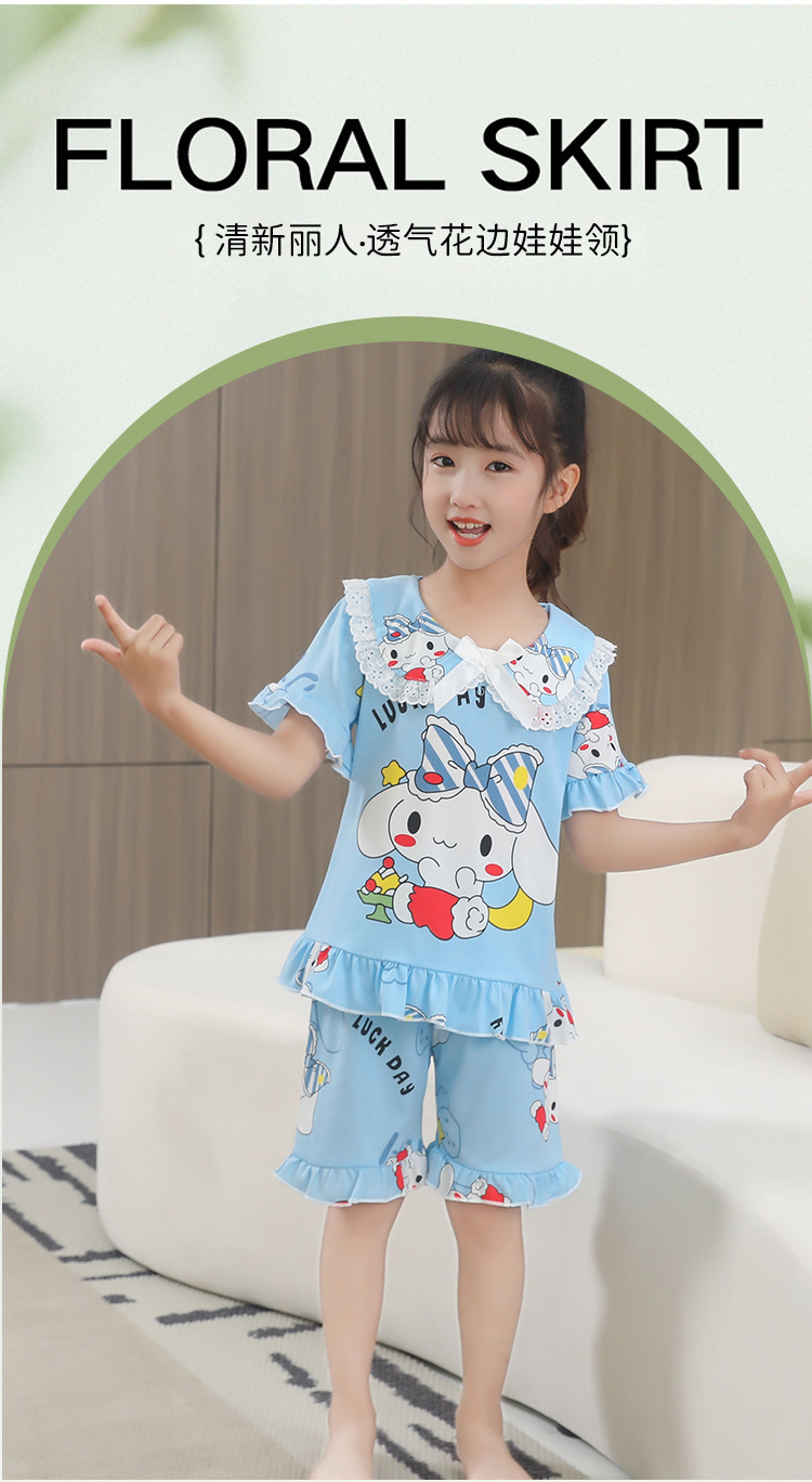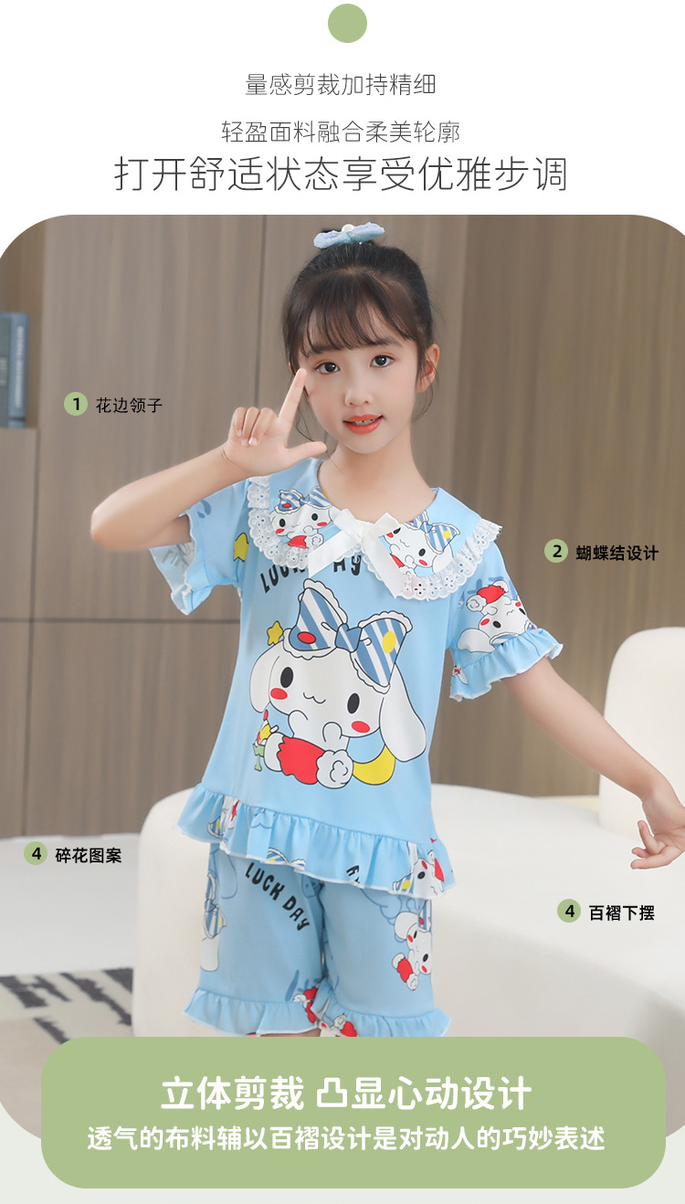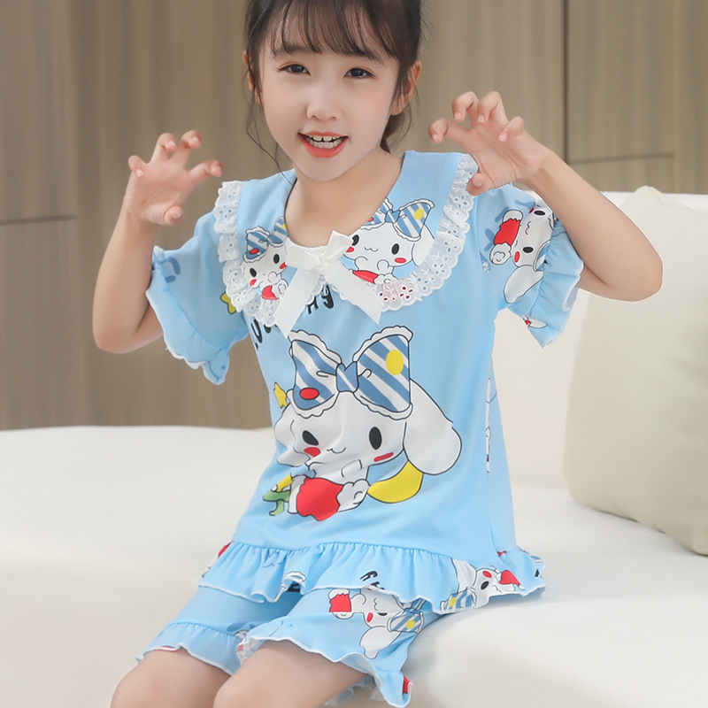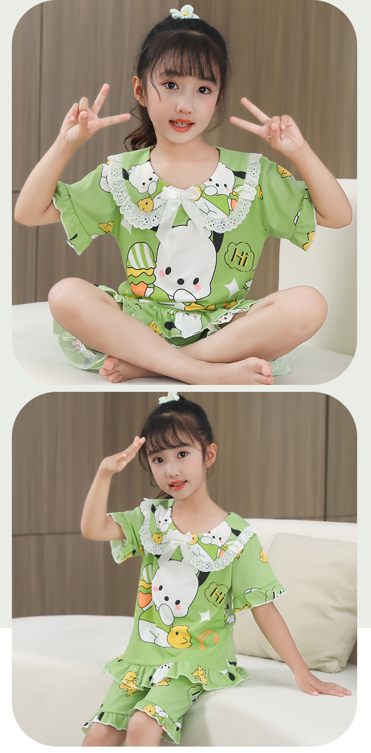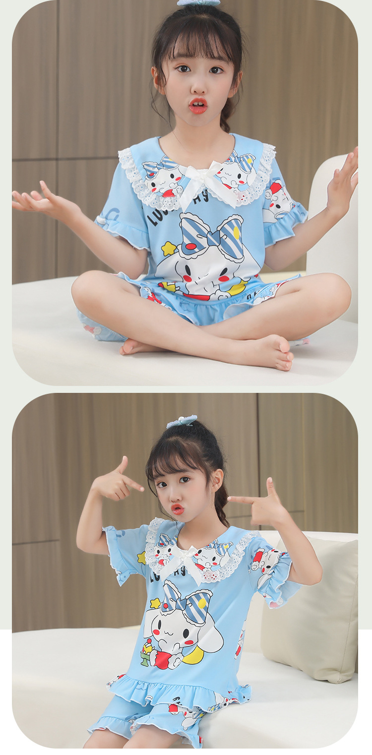 어린이 잠옷 소녀 여름 귀여운 반팔 얇은 만화 큰 아이 작은 소녀 공주 스타일 홈 의류 세트