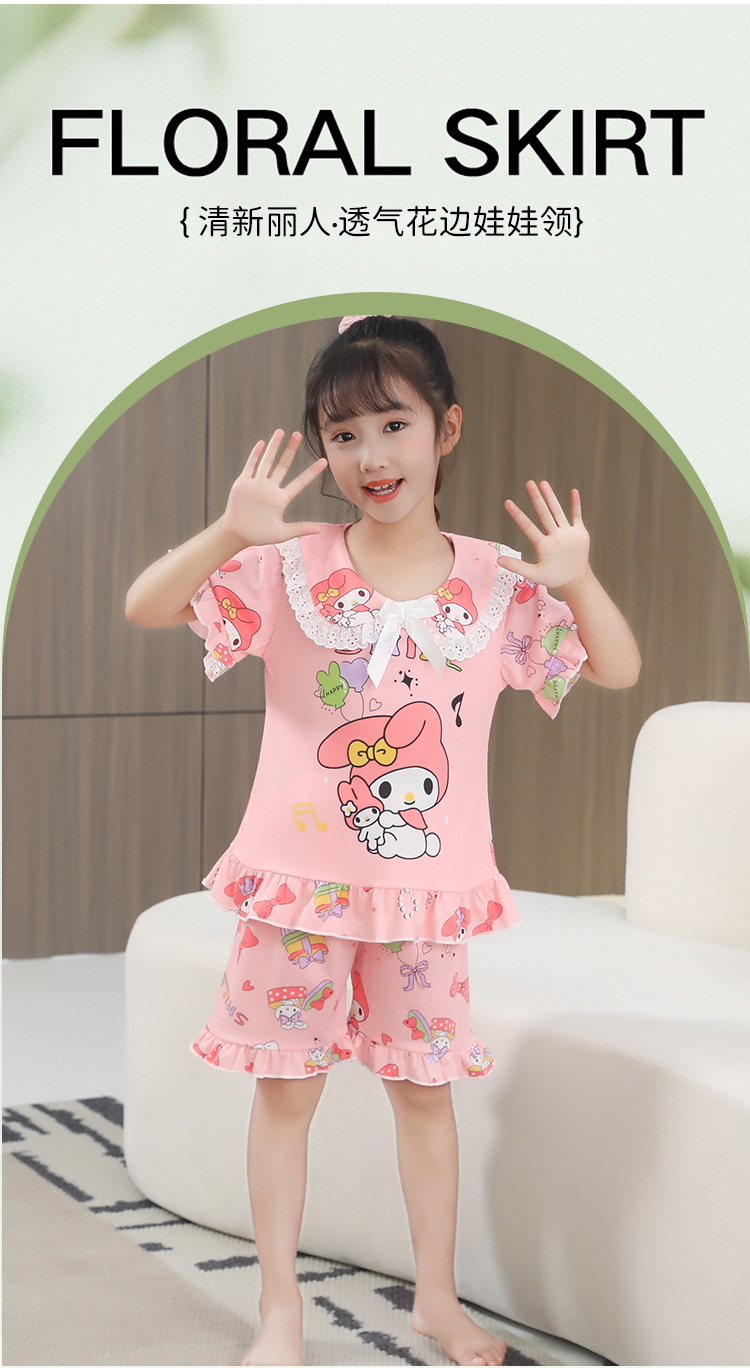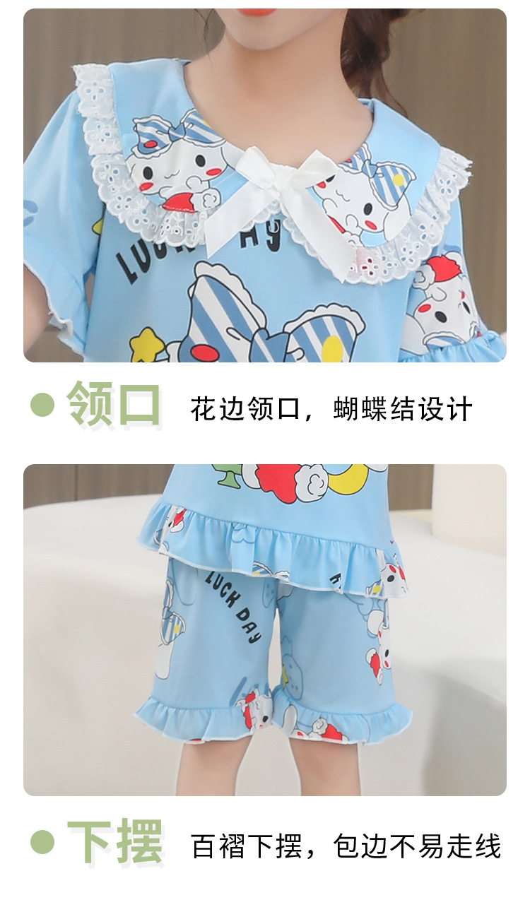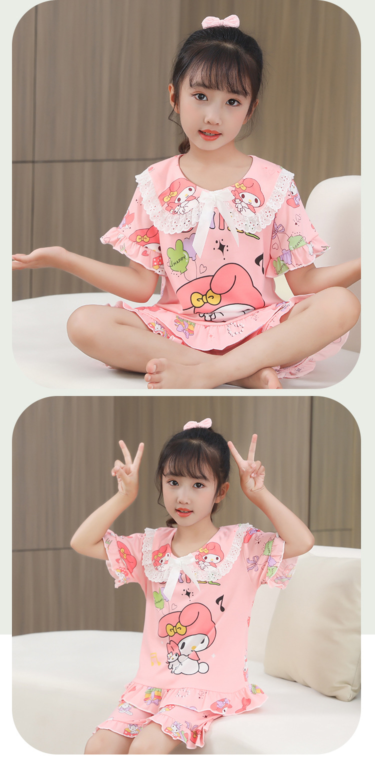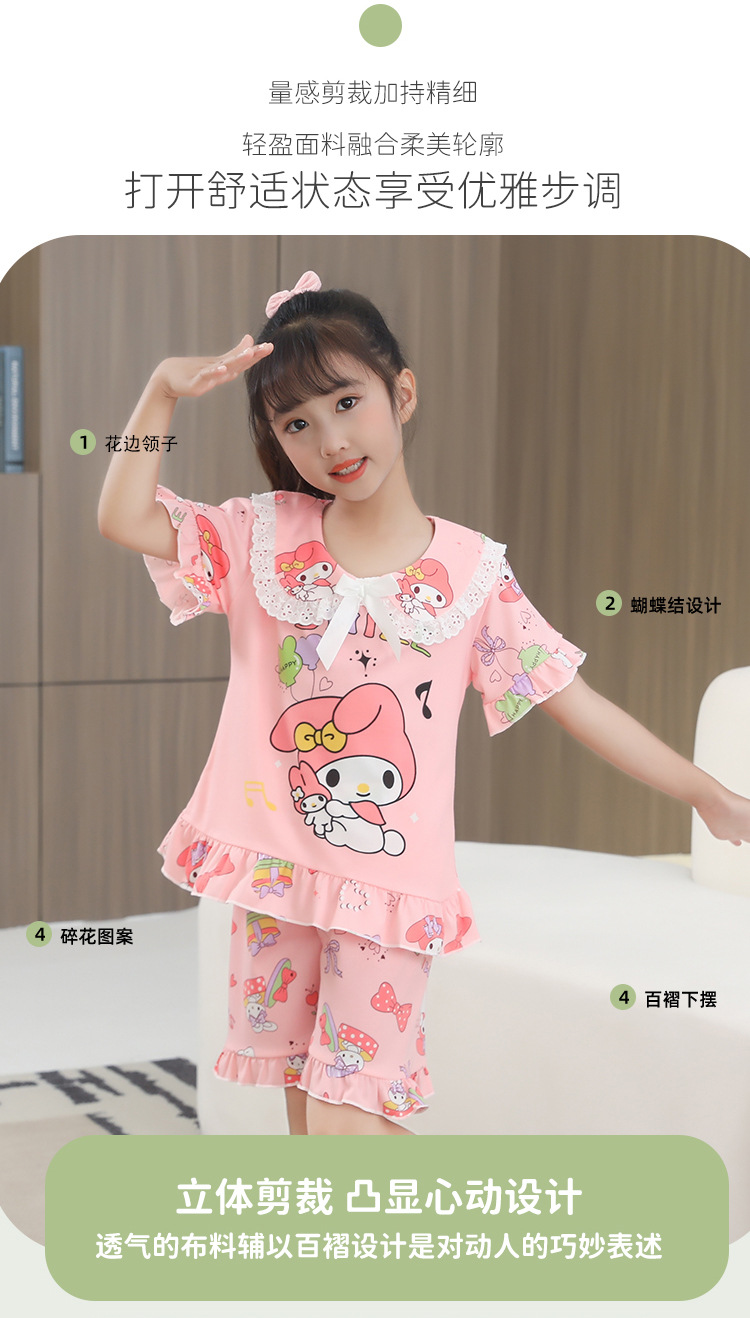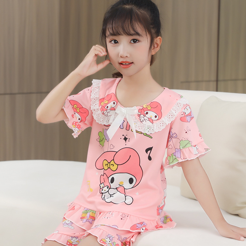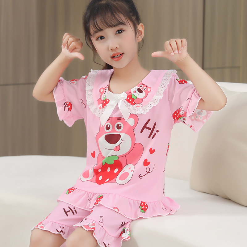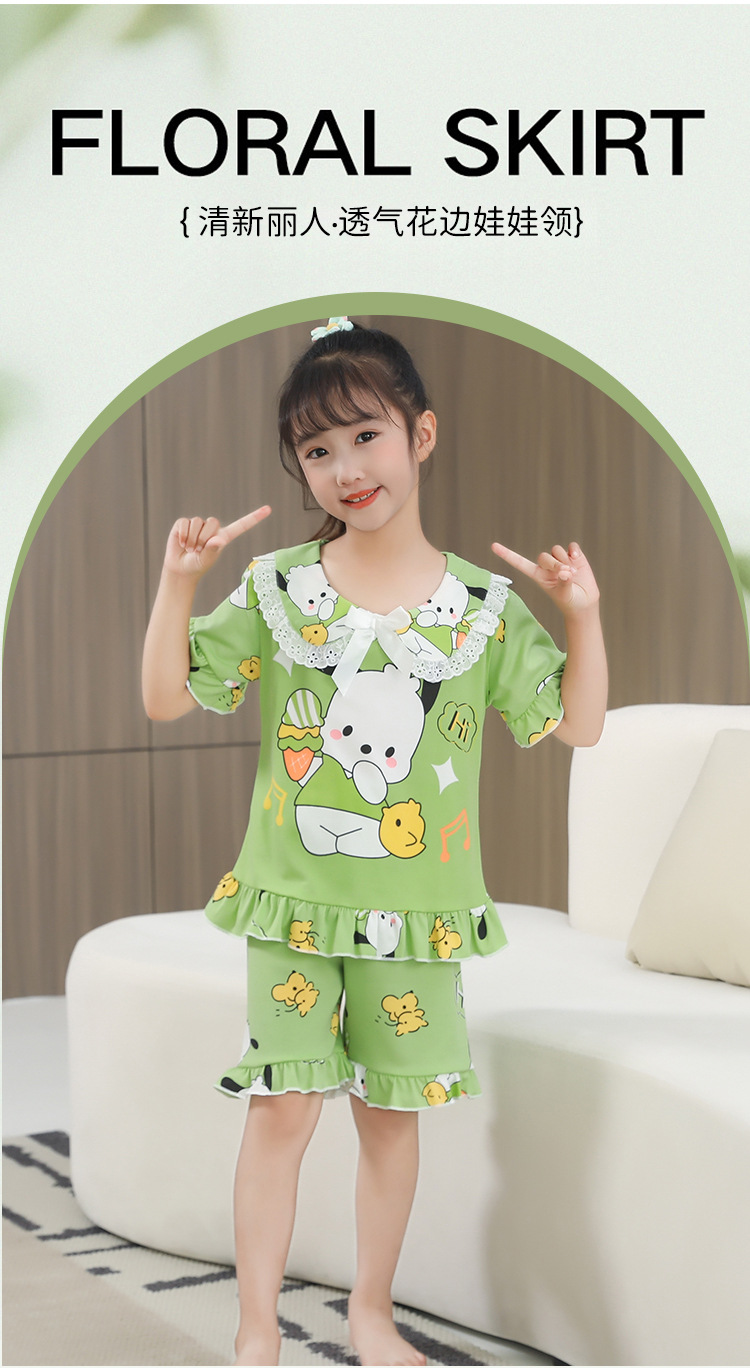 어린이 잠옷 소녀 여름 귀여운 반팔 얇은 만화 큰 아이 작은 소녀 공주 스타일 홈 의류 세트
