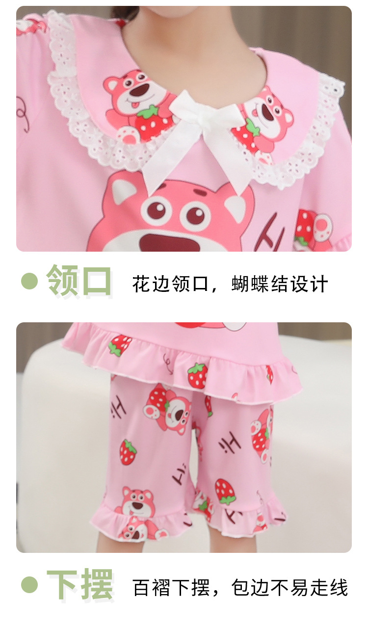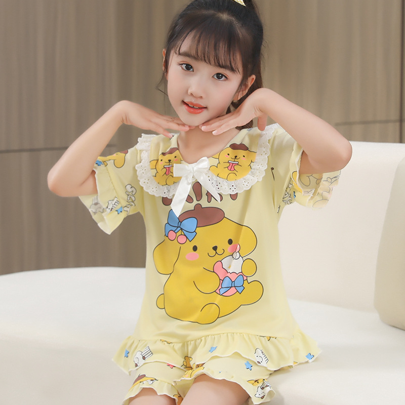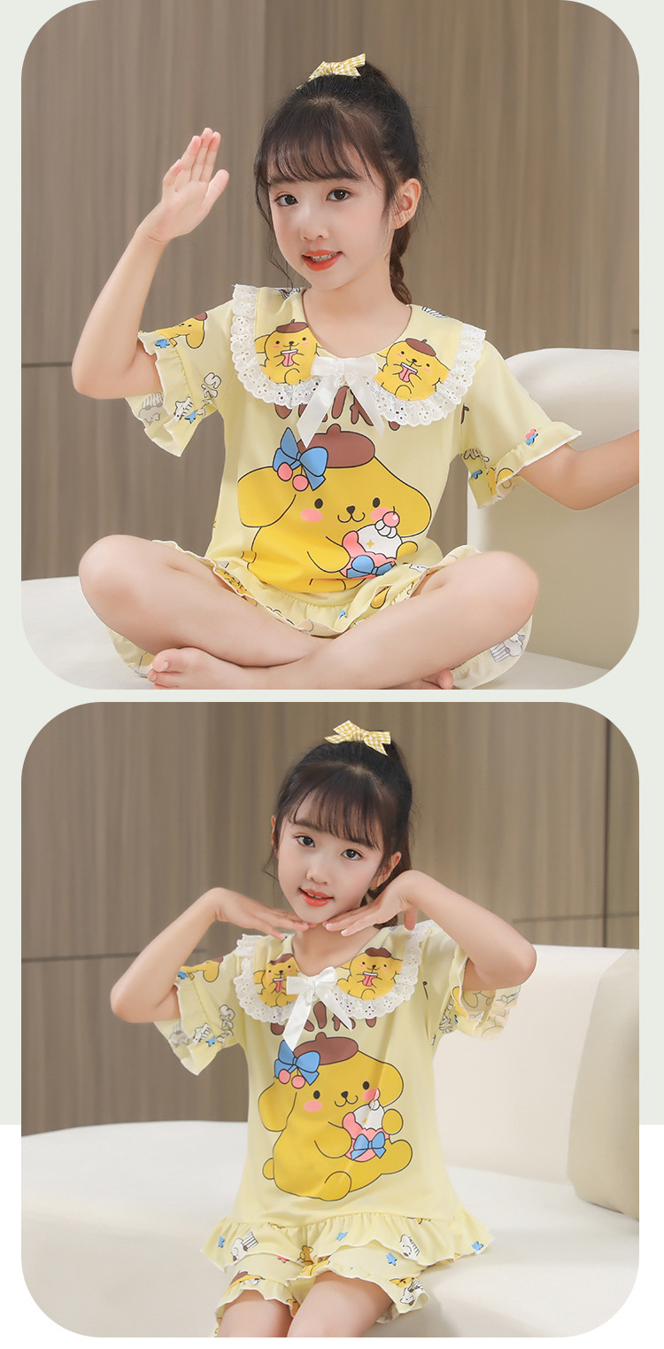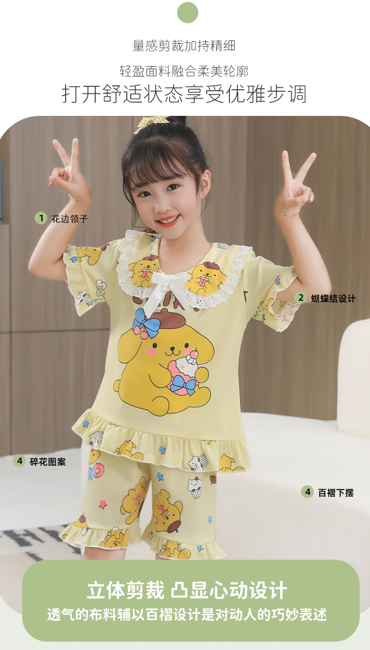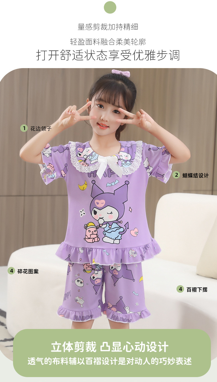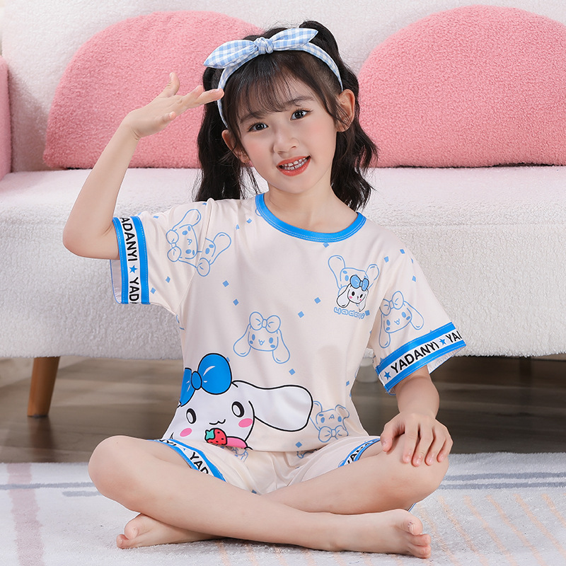 어린이 잠옷 소녀 여름 귀여운 반팔 얇은 만화 큰 아이 작은 소녀 공주 스타일 홈 의류 세트