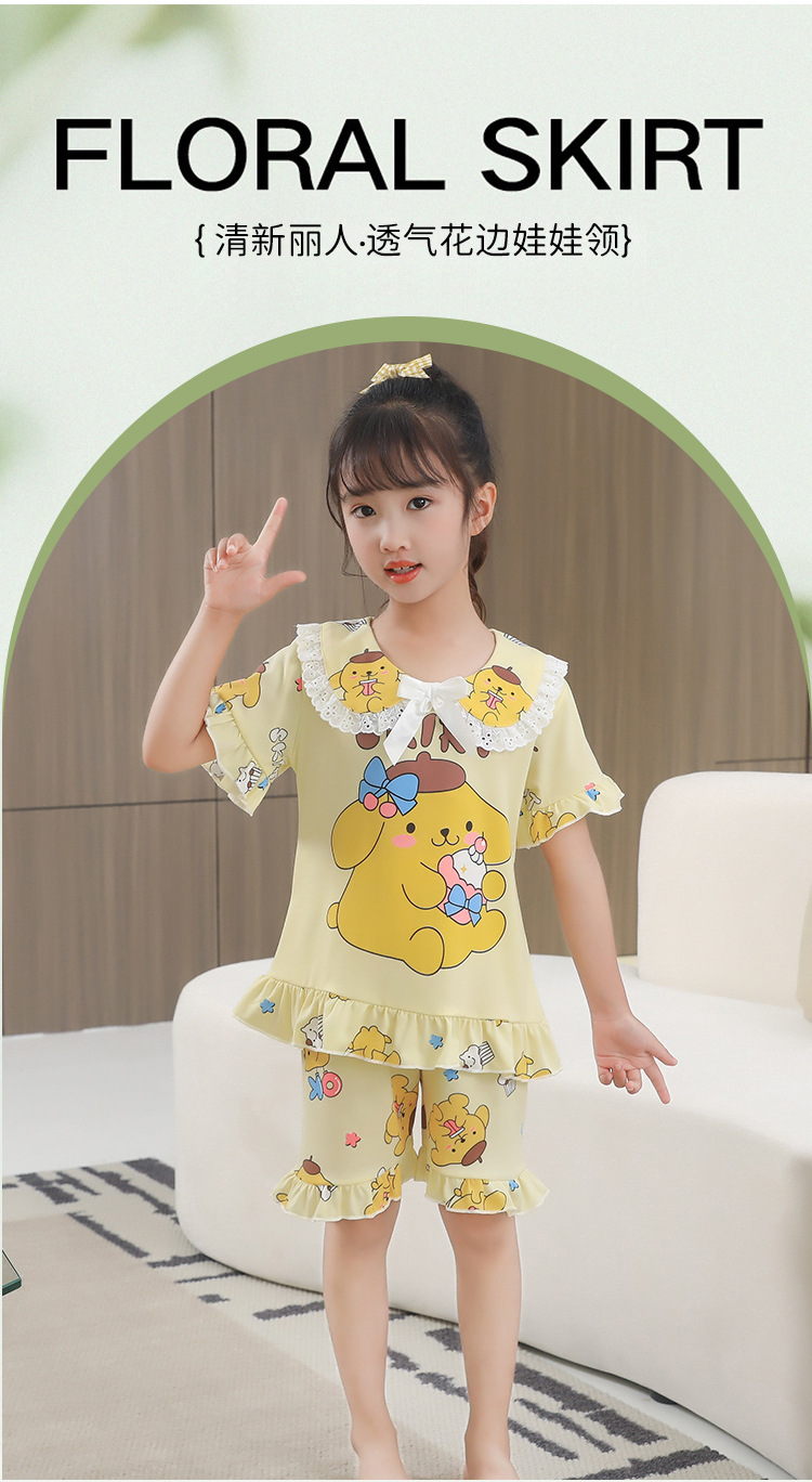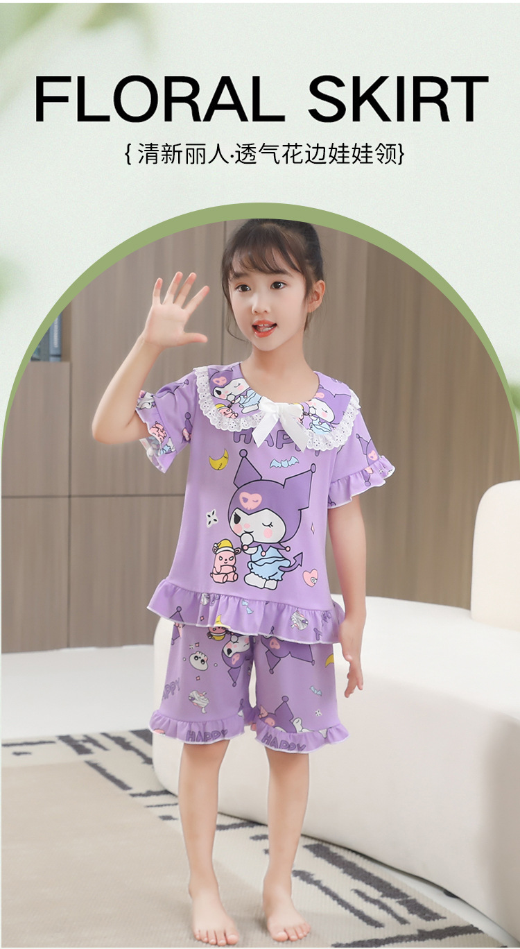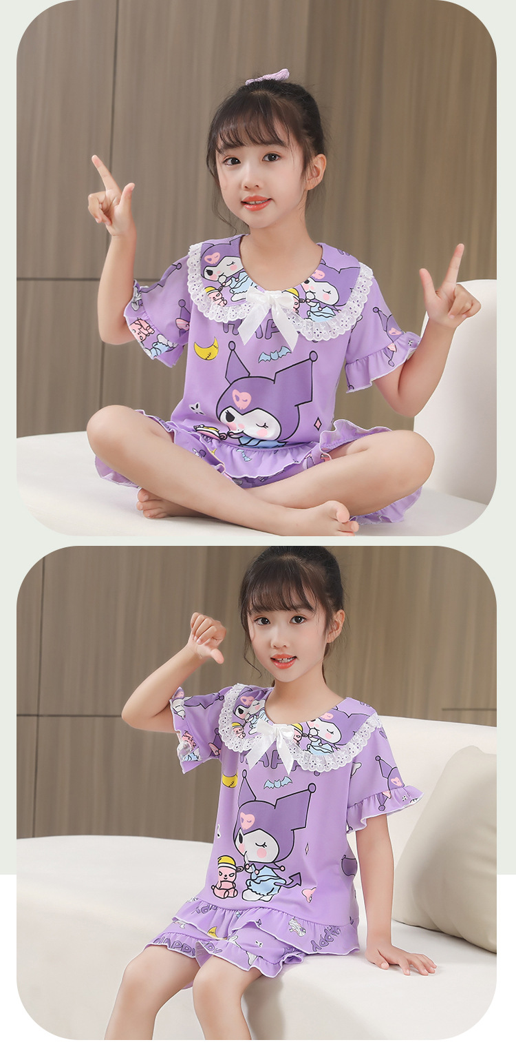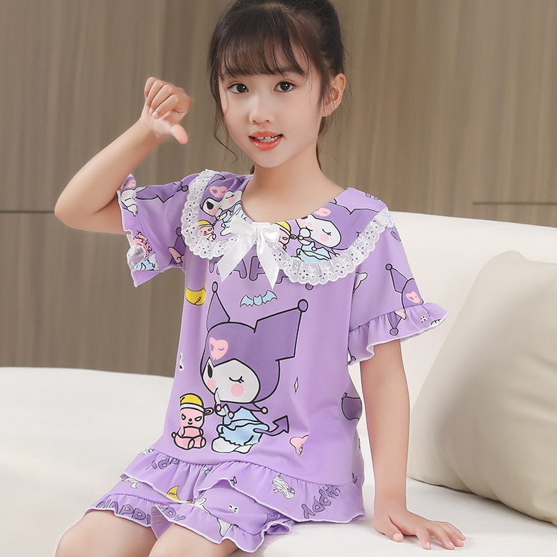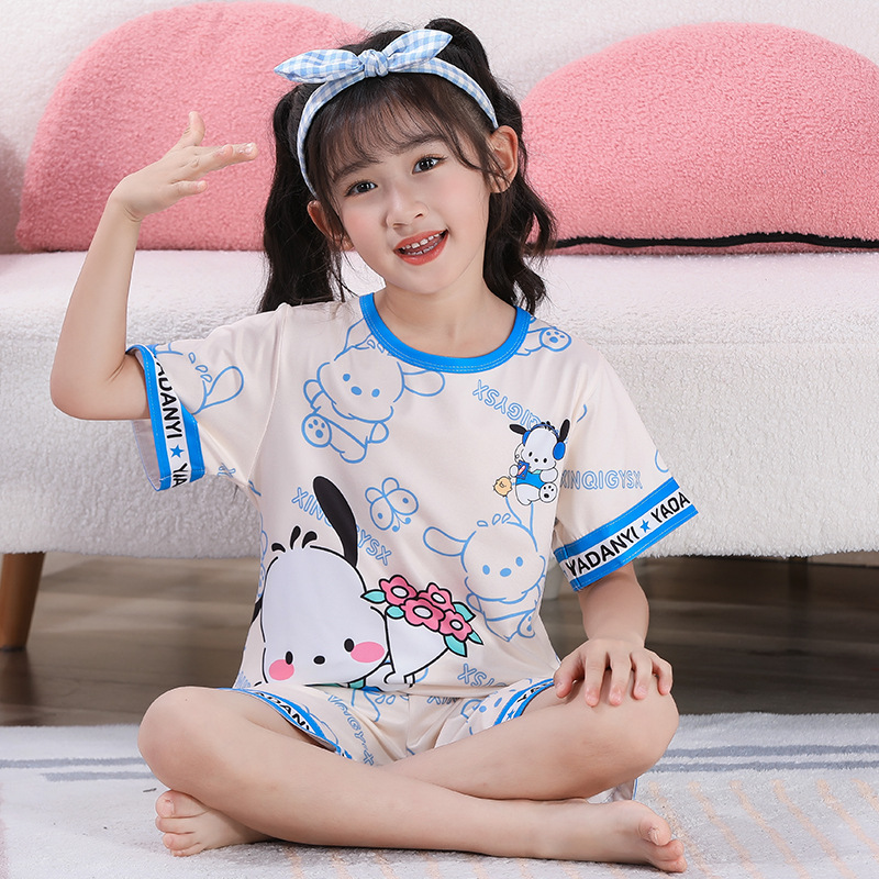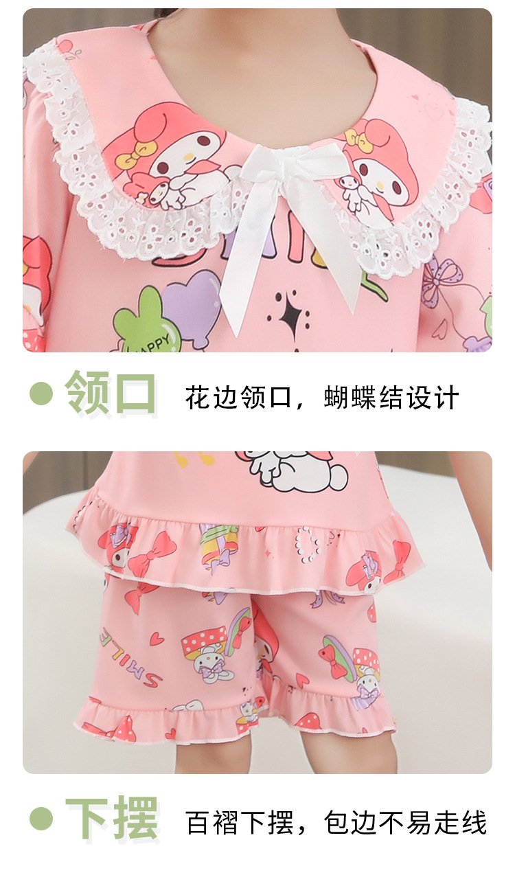 어린이 잠옷 소녀 여름 귀여운 반팔 얇은 만화 큰 아이 작은 소녀 공주 스타일 홈 의류 세트