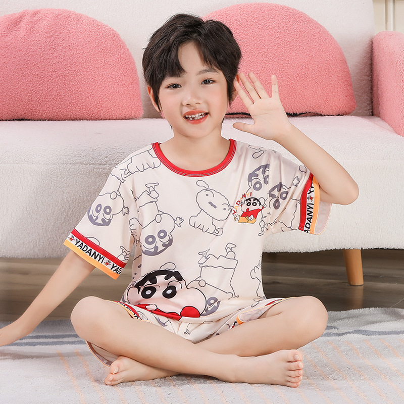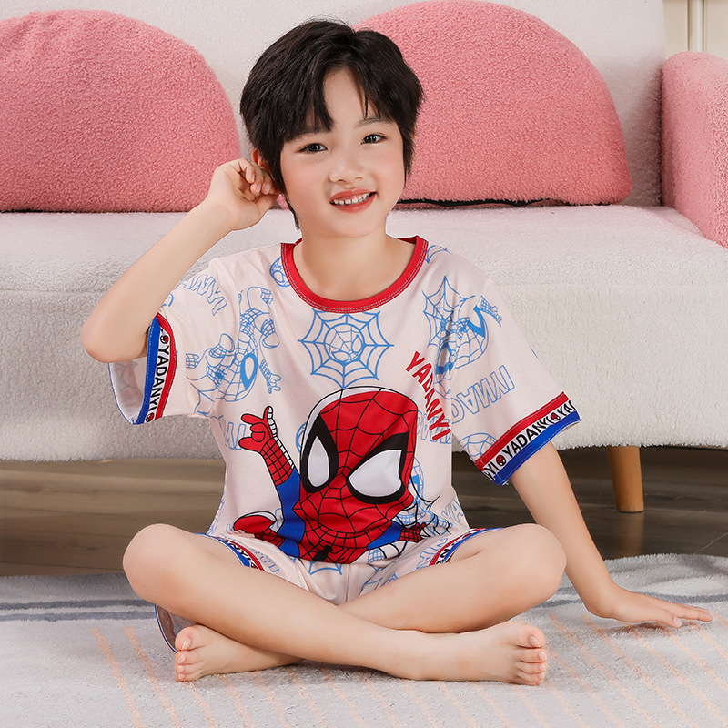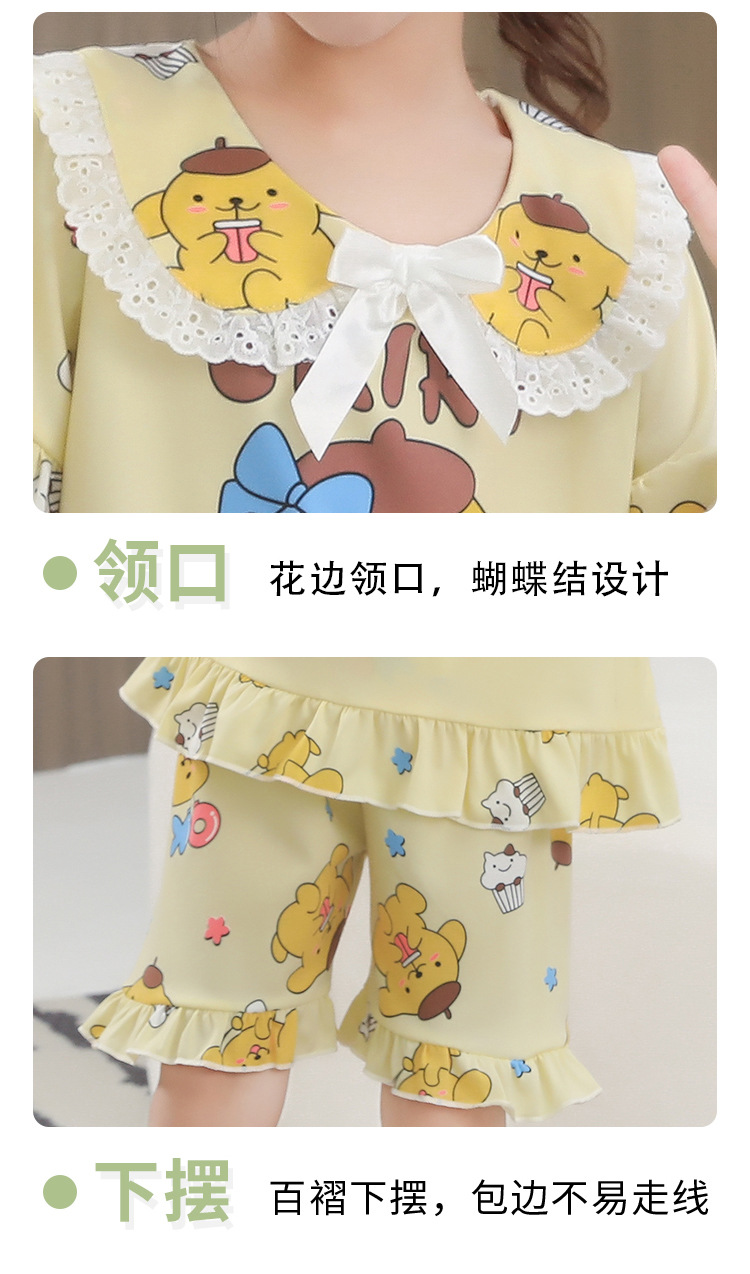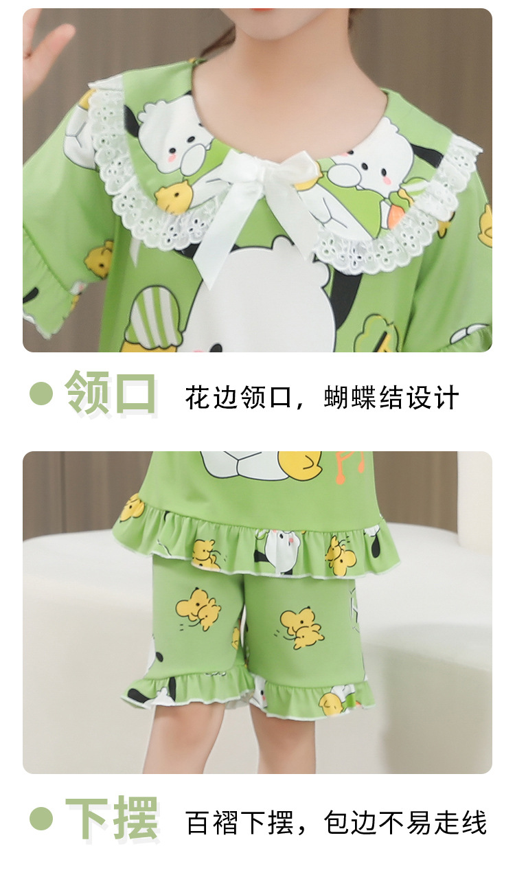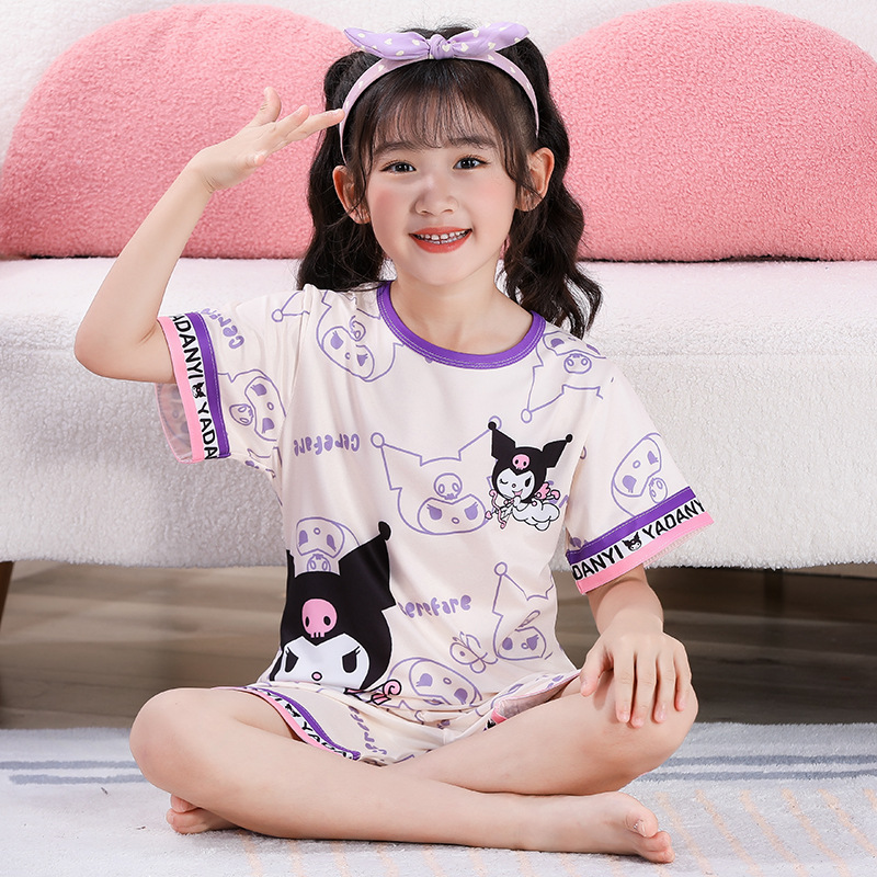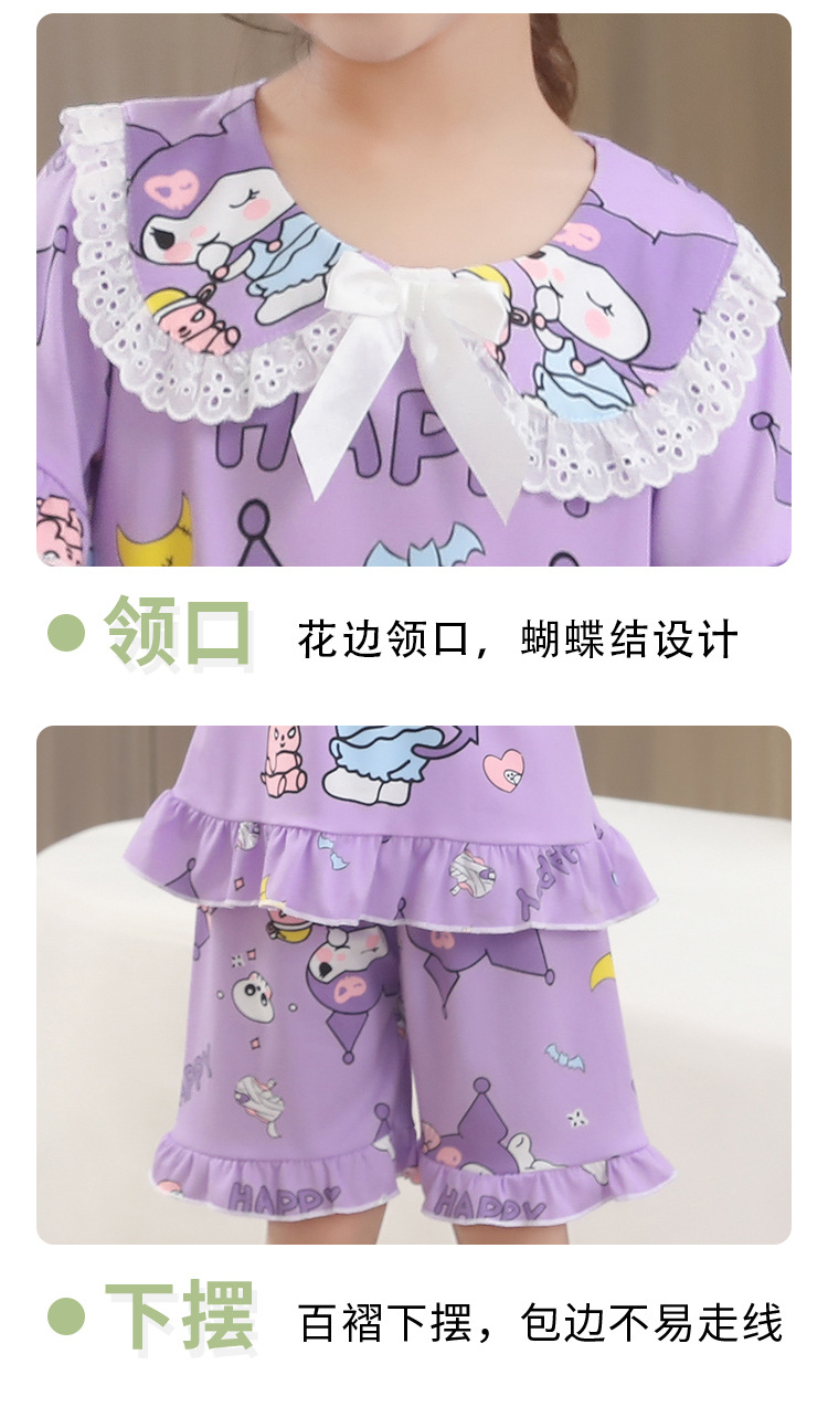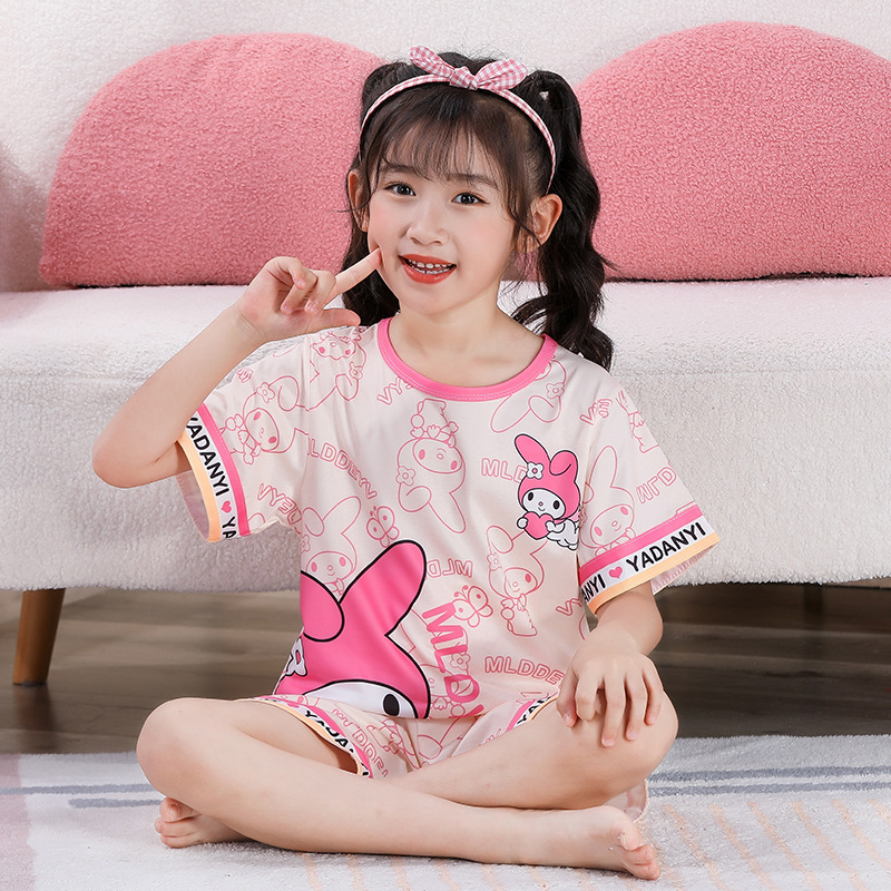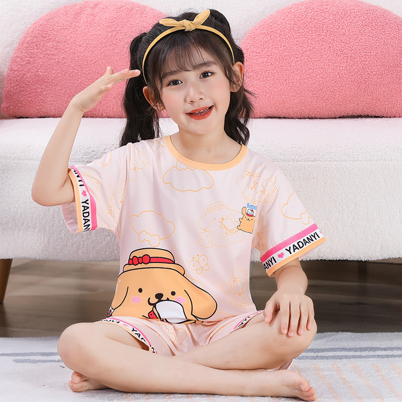 어린이 잠옷 소녀 여름 귀여운 반팔 얇은 만화 큰 아이 작은 소녀 공주 스타일 홈 의류 세트