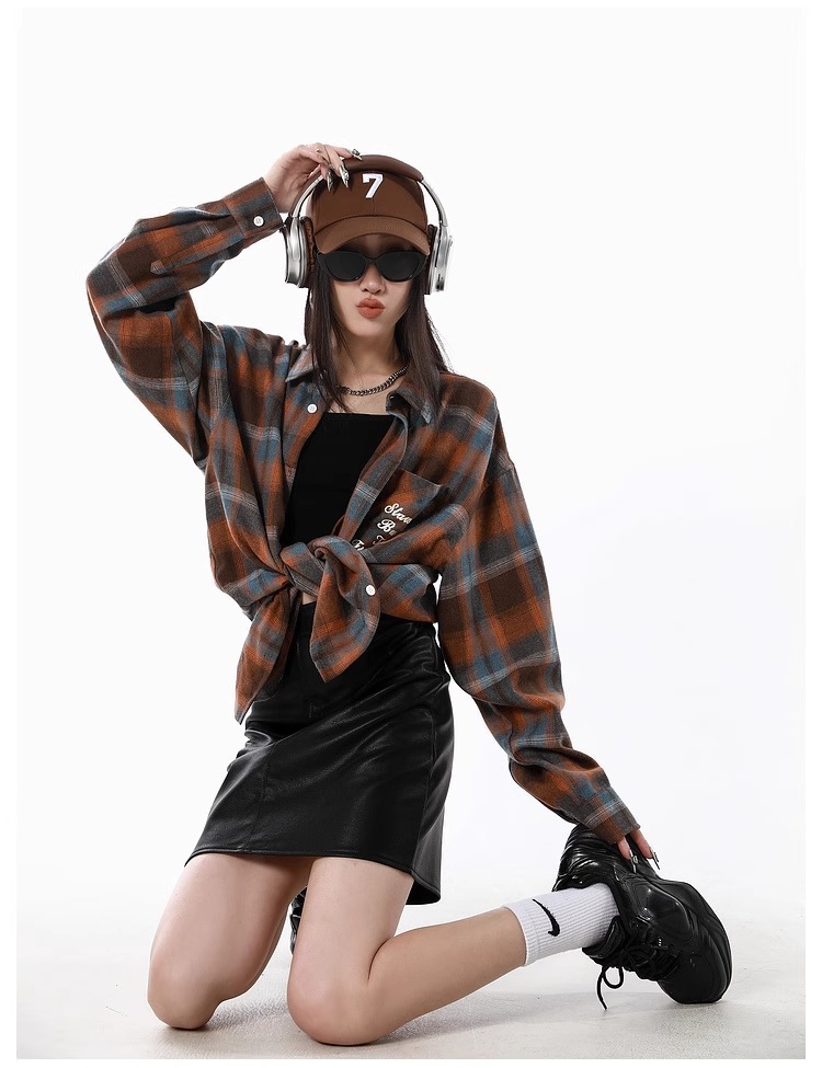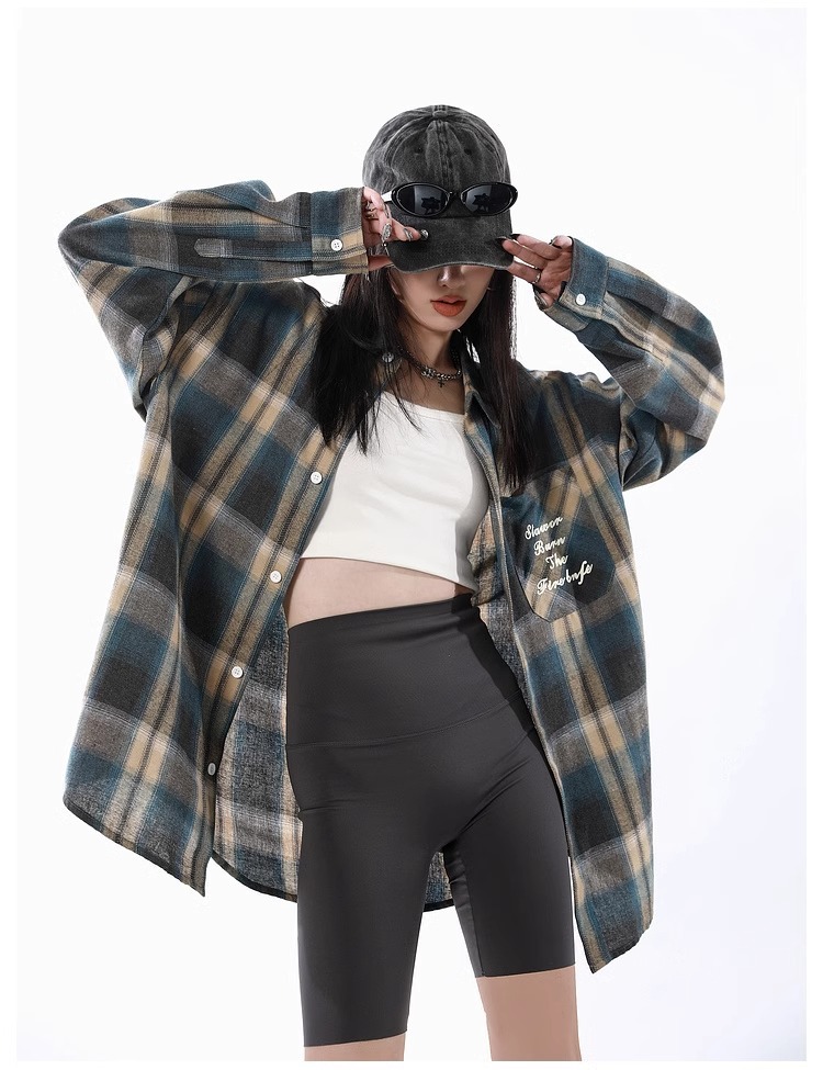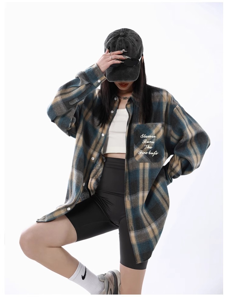 아메리칸 스타일 봄과 가을 빈티지 홍콩 스타일 긴팔 카디건 청소년 느슨한 올 매치 대비 얇은 셔츠 남녀 올매치스토어 가기
