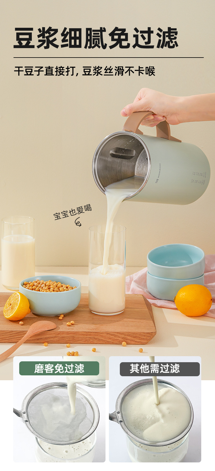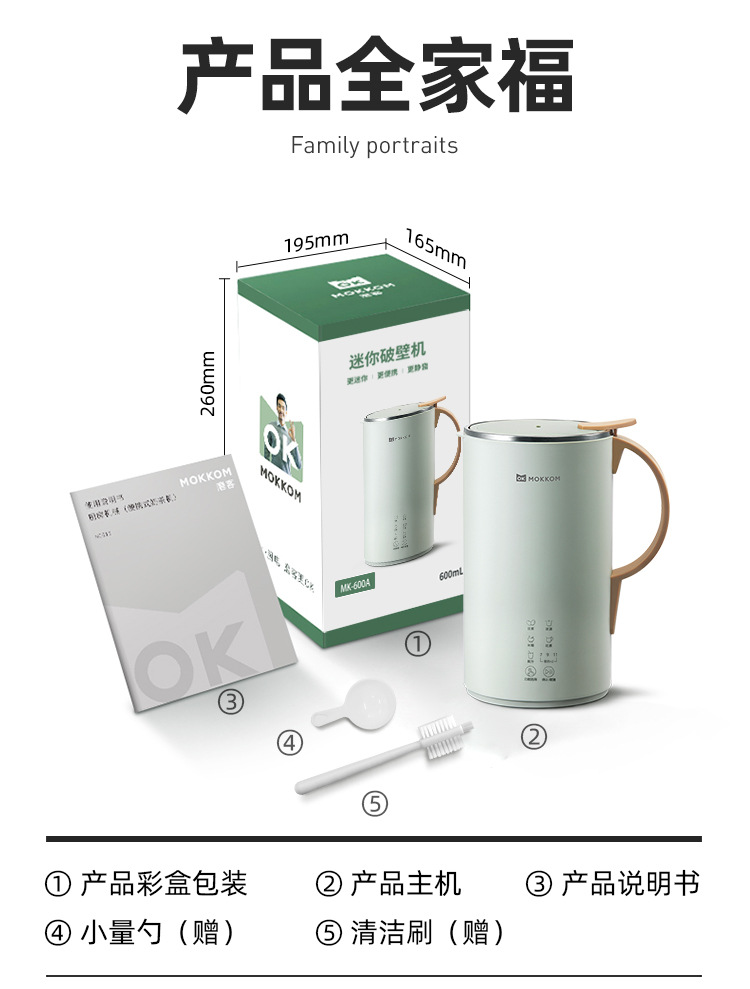 MOKKOM 밀러 벽 깨는 기계 가정용 소형 다기능 완전 자동 곡물 가열 필터가없는 두유 기계