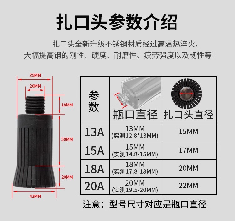 • 13Φ 구경 향수병 잠금 기계 + 타이 헤드 + 중간 세트