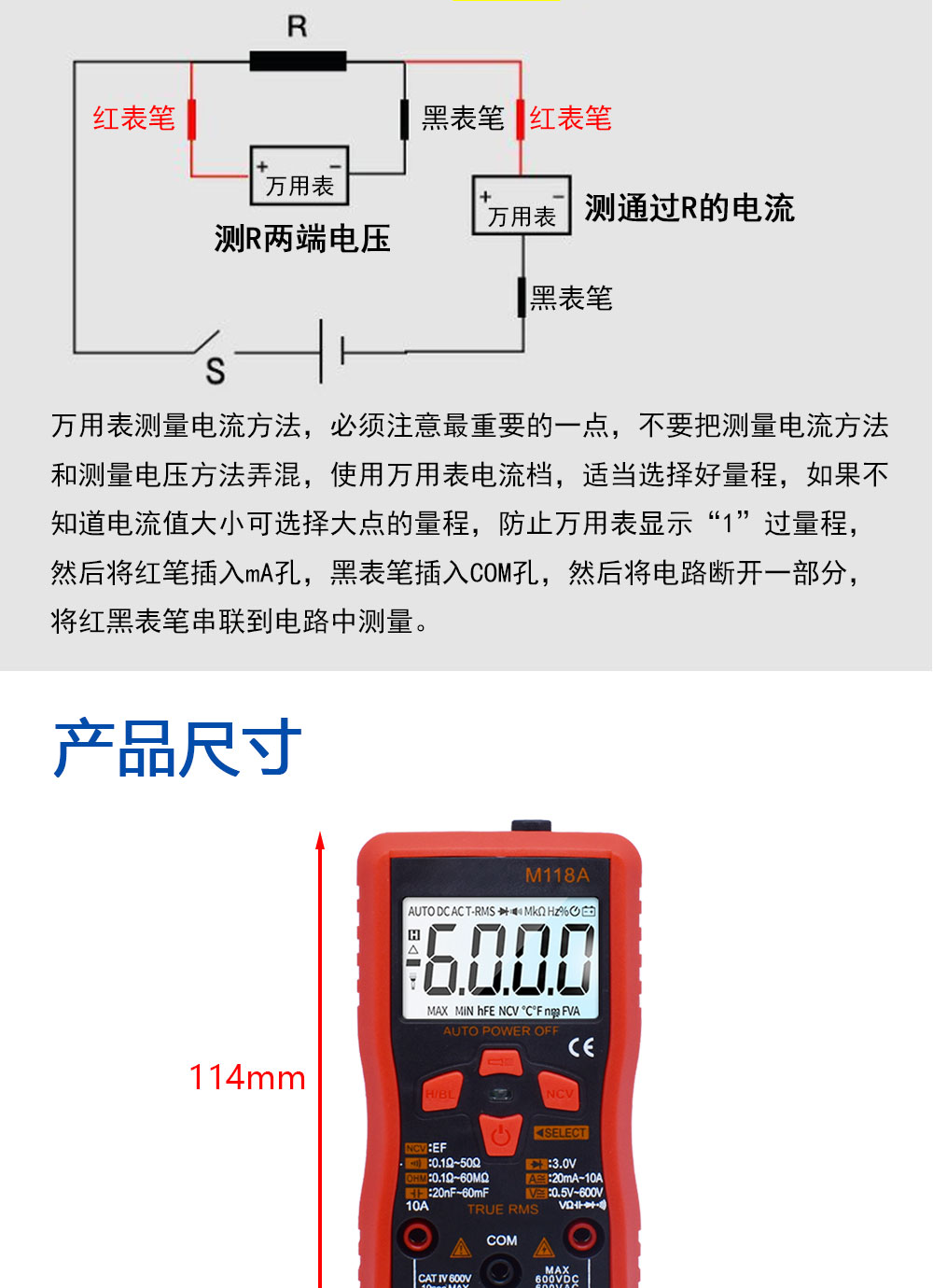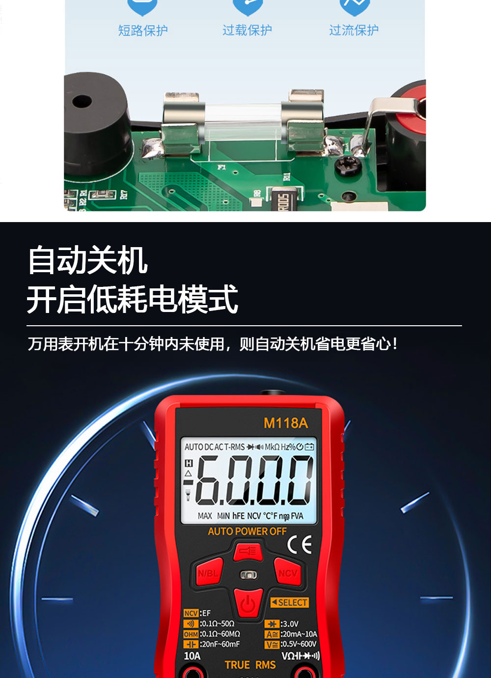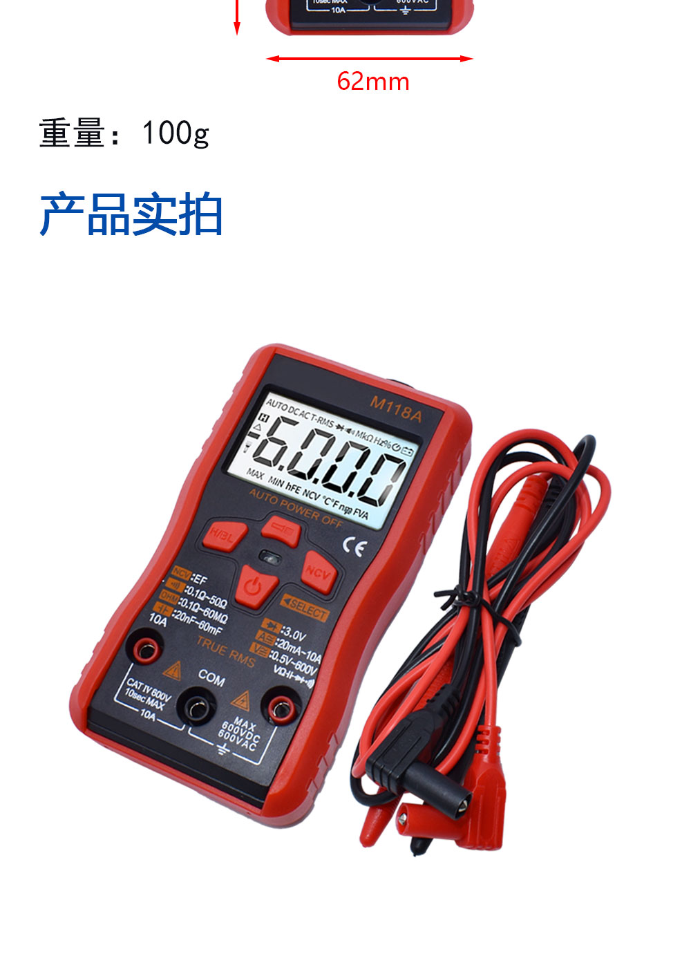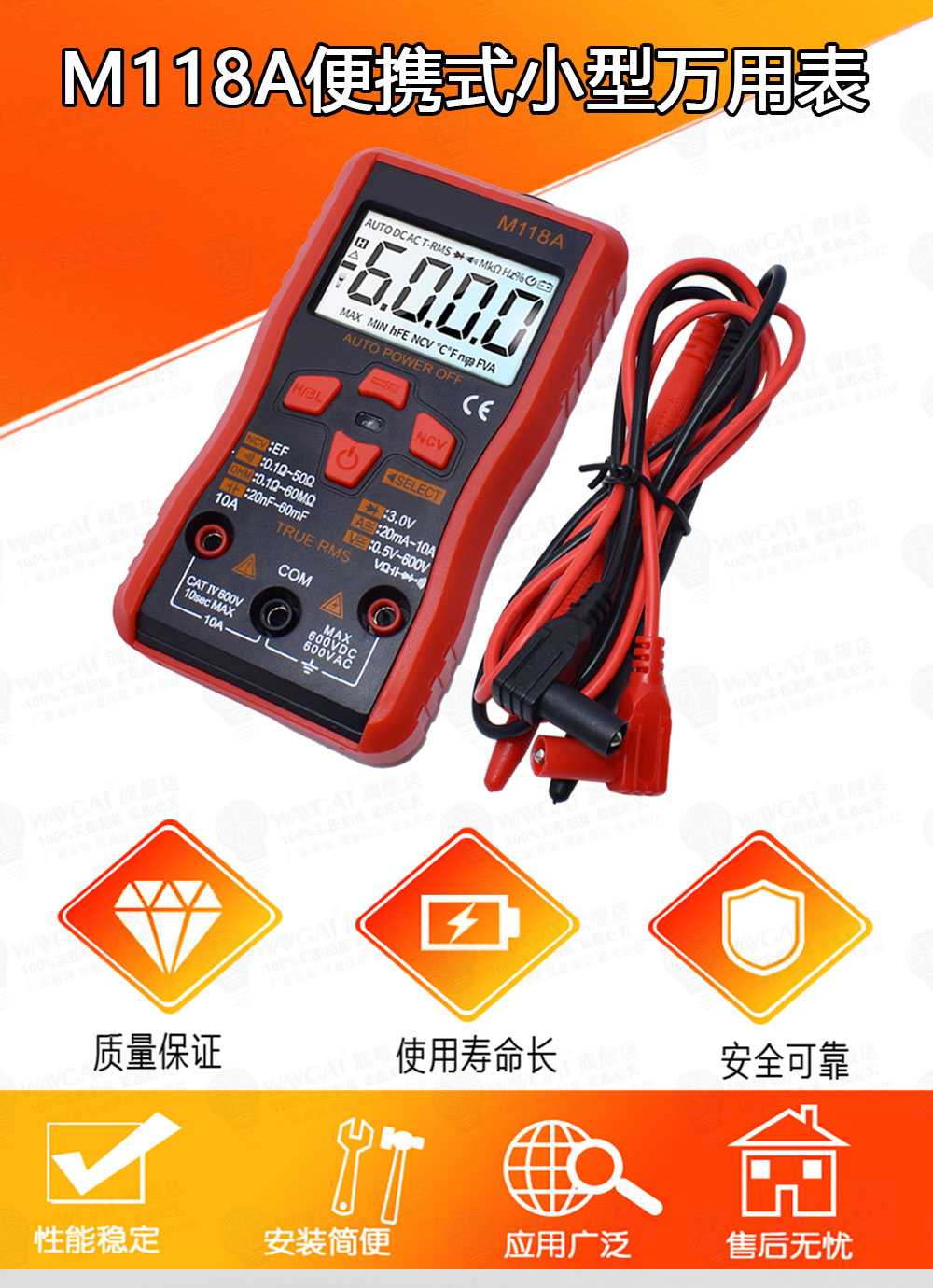 휴대용 작은 멀티 미터 디지털 고정밀 자동 시프트 프리 전기 지능형 안티 번 미터 118A