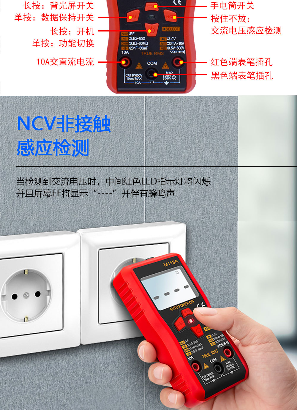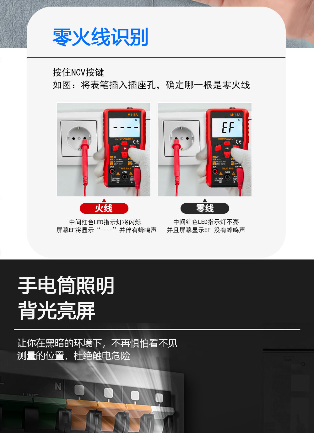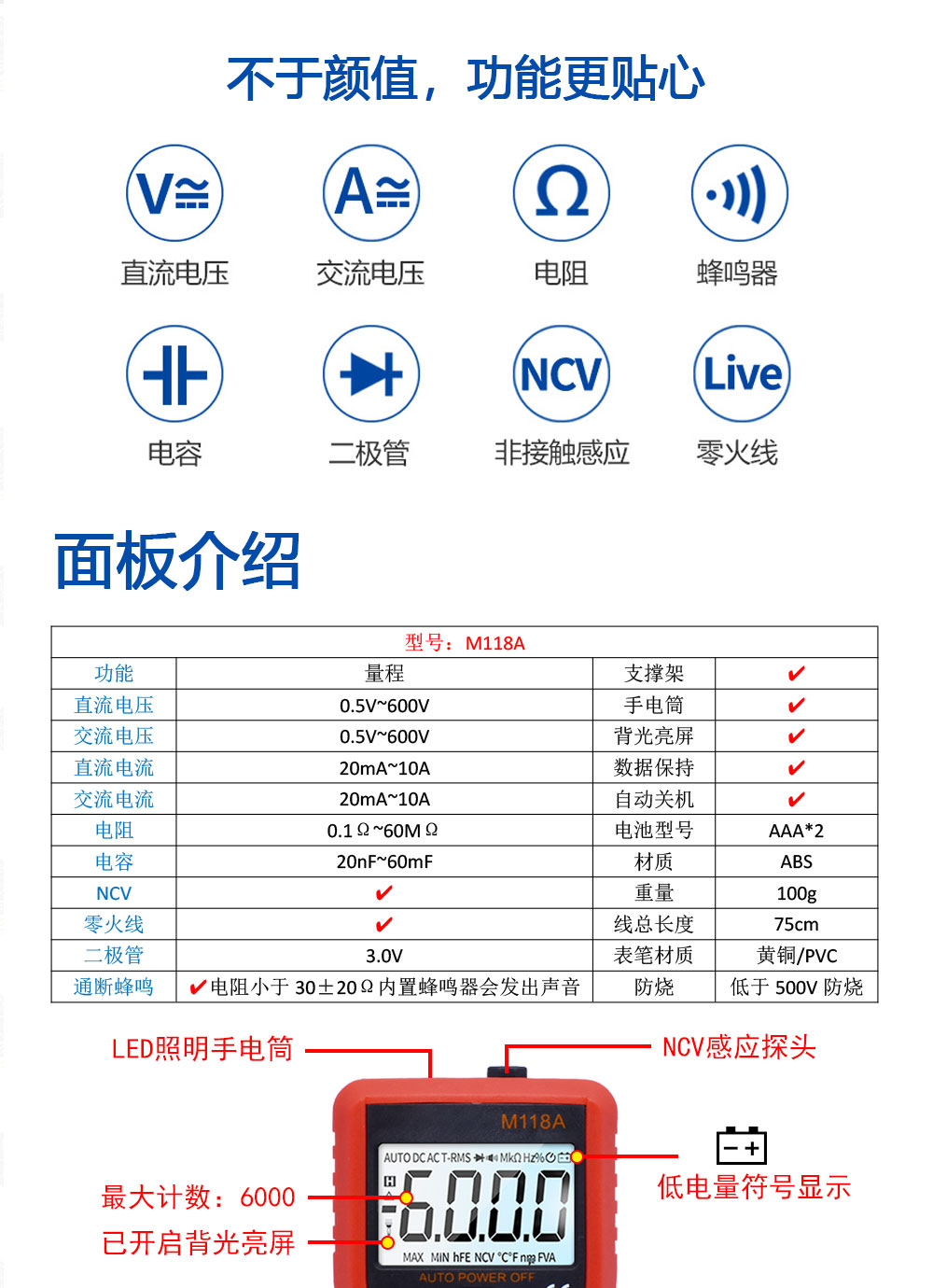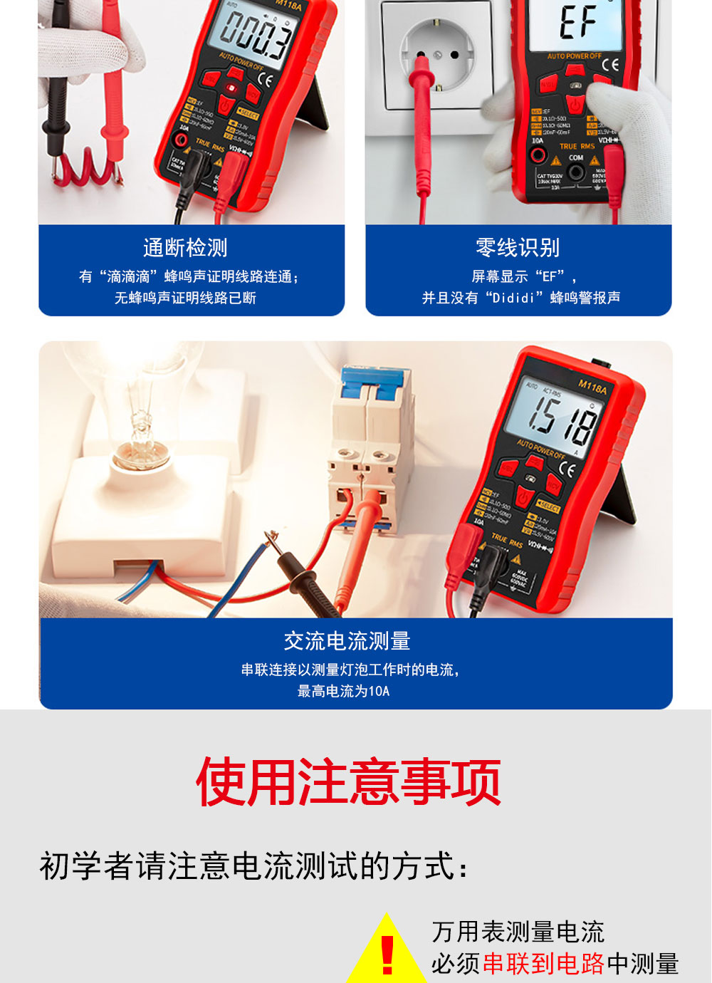 휴대용 작은 멀티 미터 디지털 고정밀 자동 시프트 프리 전기 지능형 안티 번 미터 118A