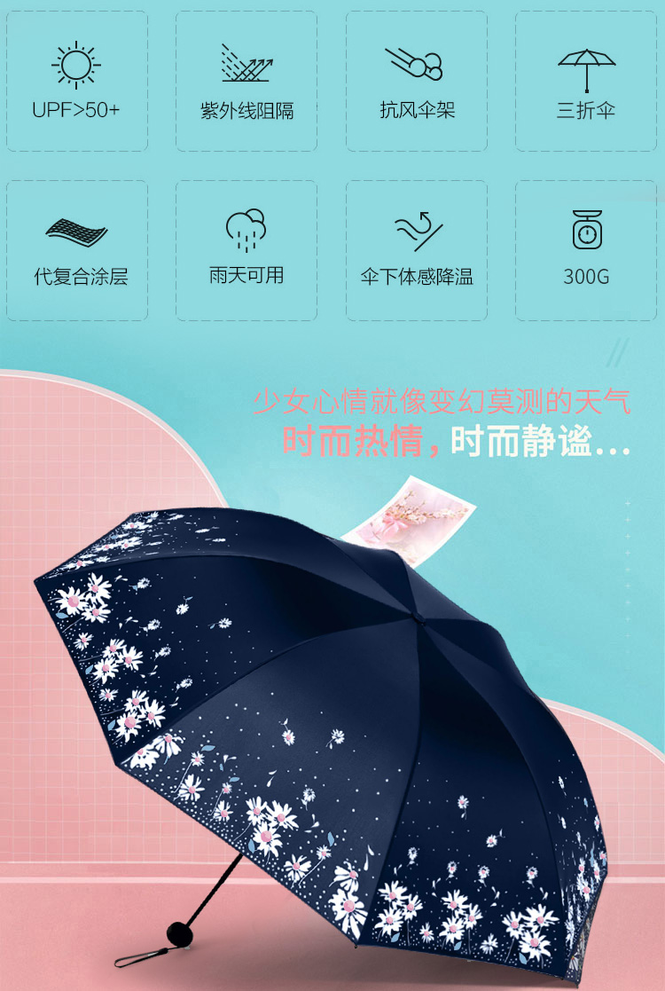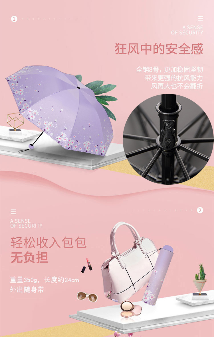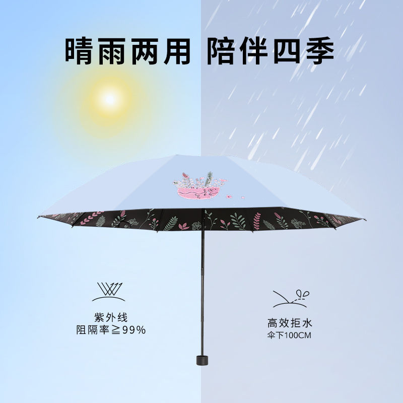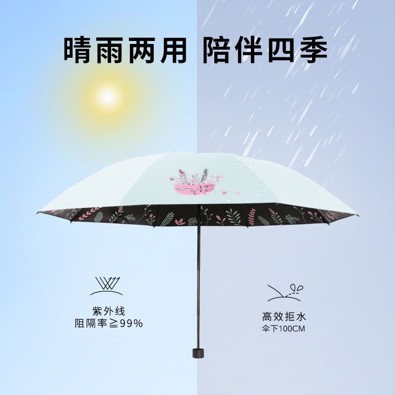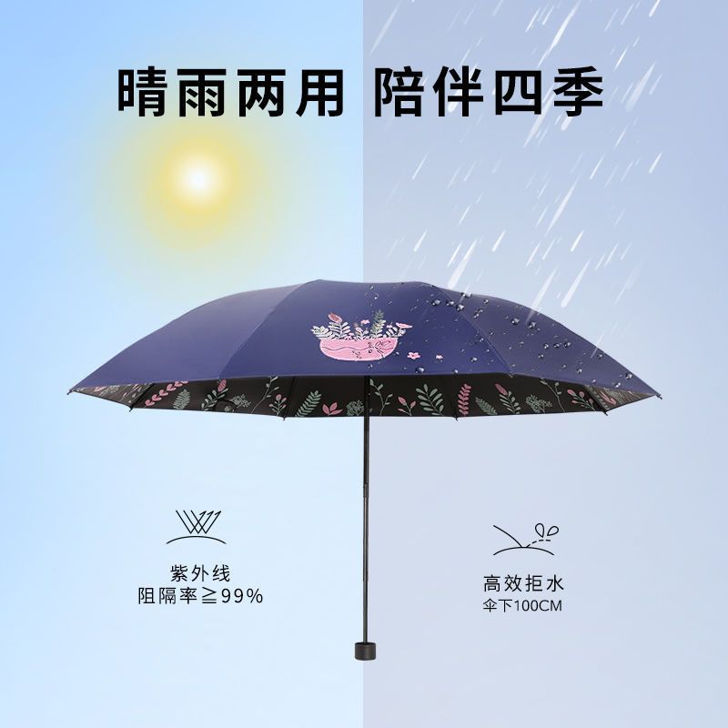 우산 맑고 비오는 이중 목적 검은 고무 우산 선 스크린 UV 보호 양산 접이식 경량 휴대용 우산 여성용스토어 가기