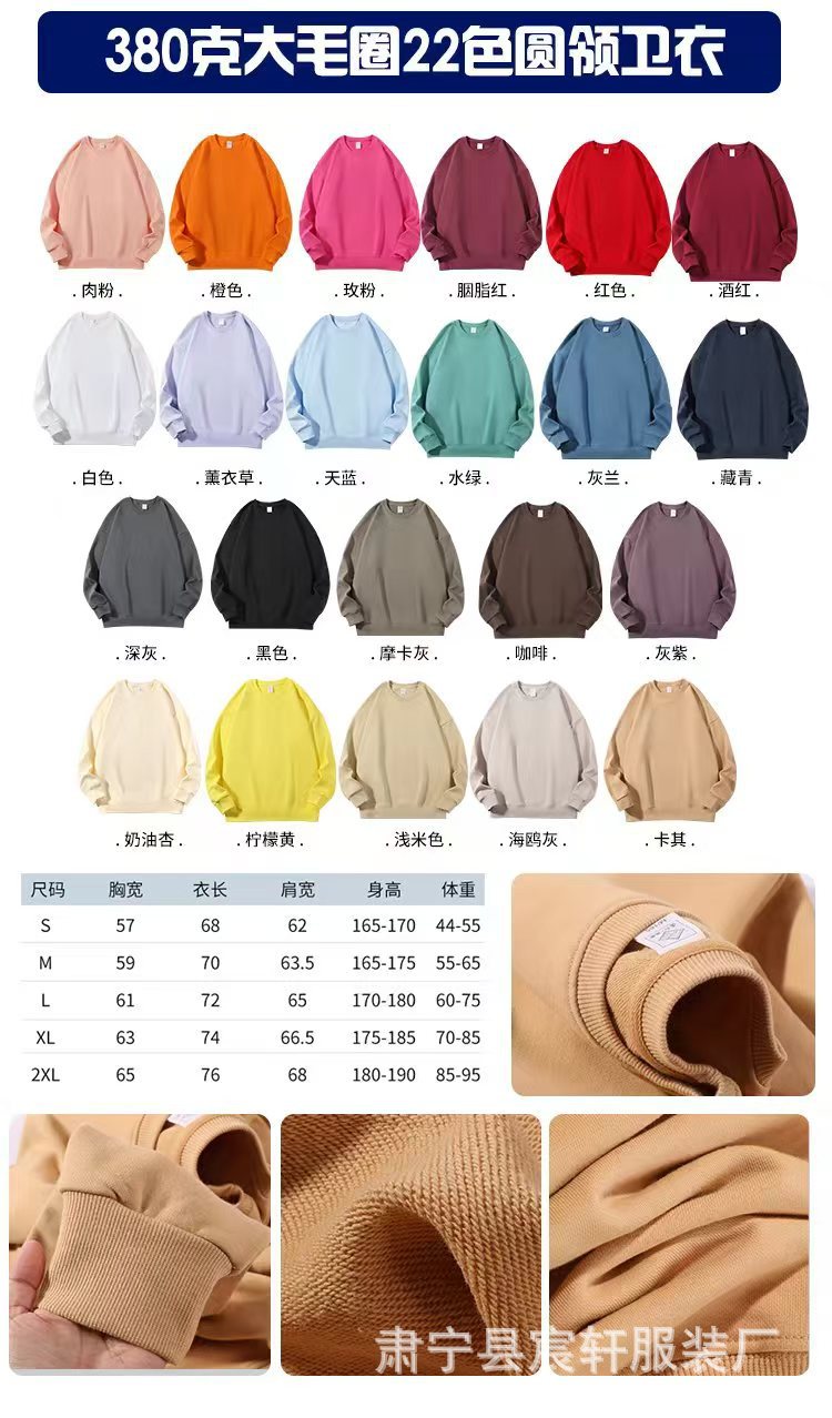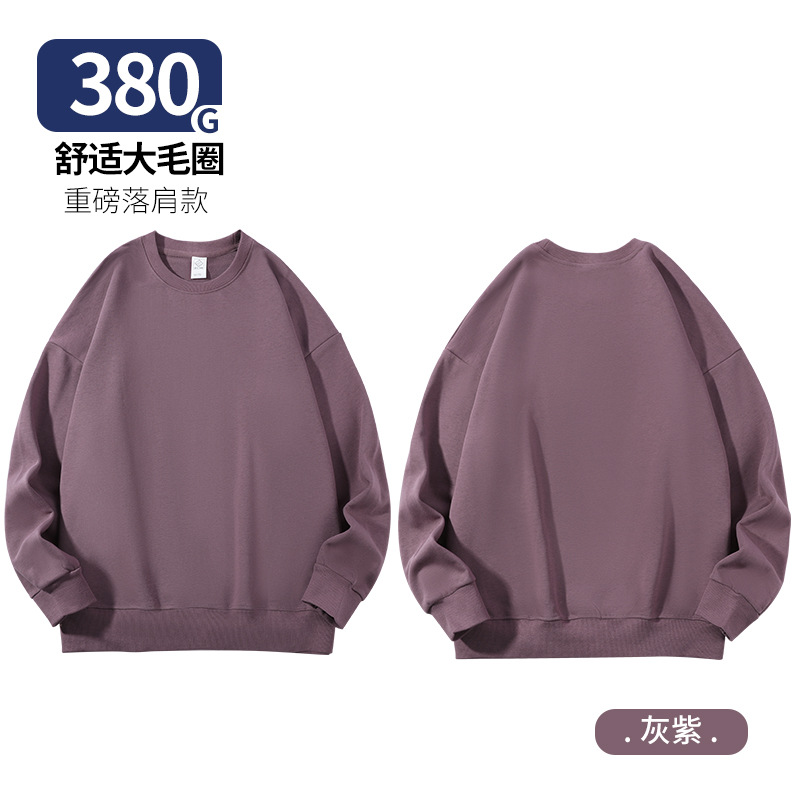 380g 크루 넥 헤비 빅 테리 숄더 드롭 스웨트 셔츠 남성과 여성의 솔리드 컬러 숄더 드롭 긴 소매 느슨한 스포츠 재킷