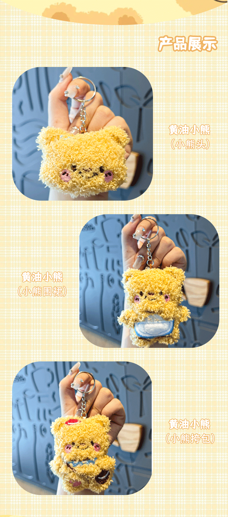 창의적이고 귀여운 곱슬곰 인형 플러시 키링 여성용 정교한 학생 가방 장식 곰 플러시 키체인