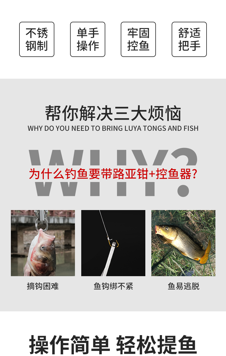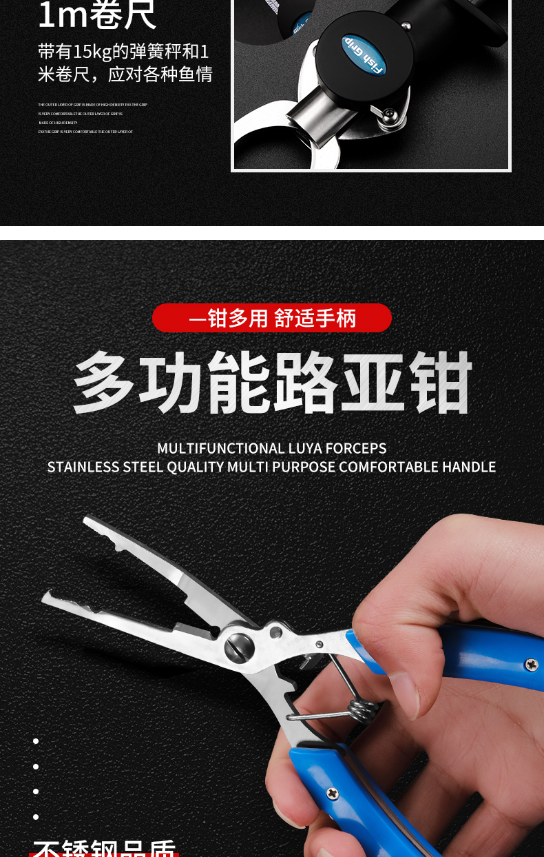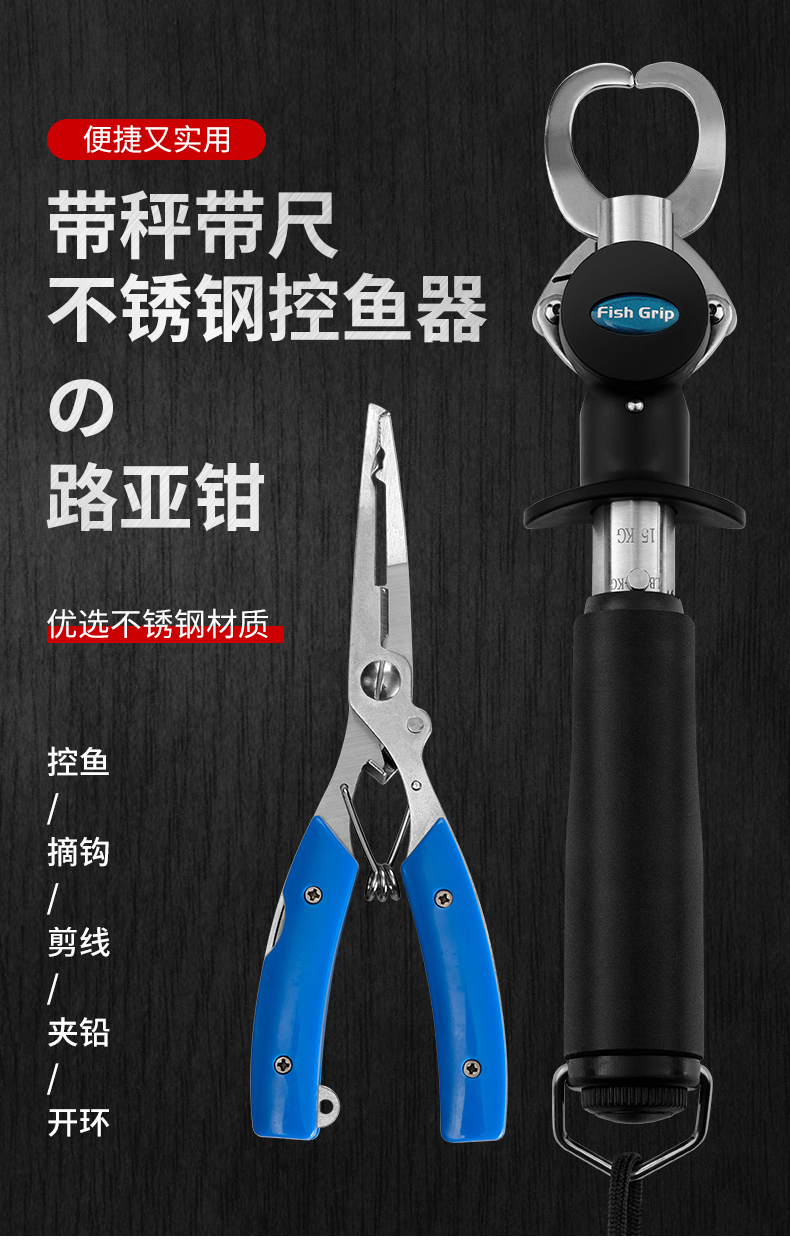 루야 통 물고기 컨트롤러 세트 벨트 스케일 제어 대형 물체 다기능 스테인레스 스틸 생선 클립 생선 펜치 바인딩 후크스토어 가기