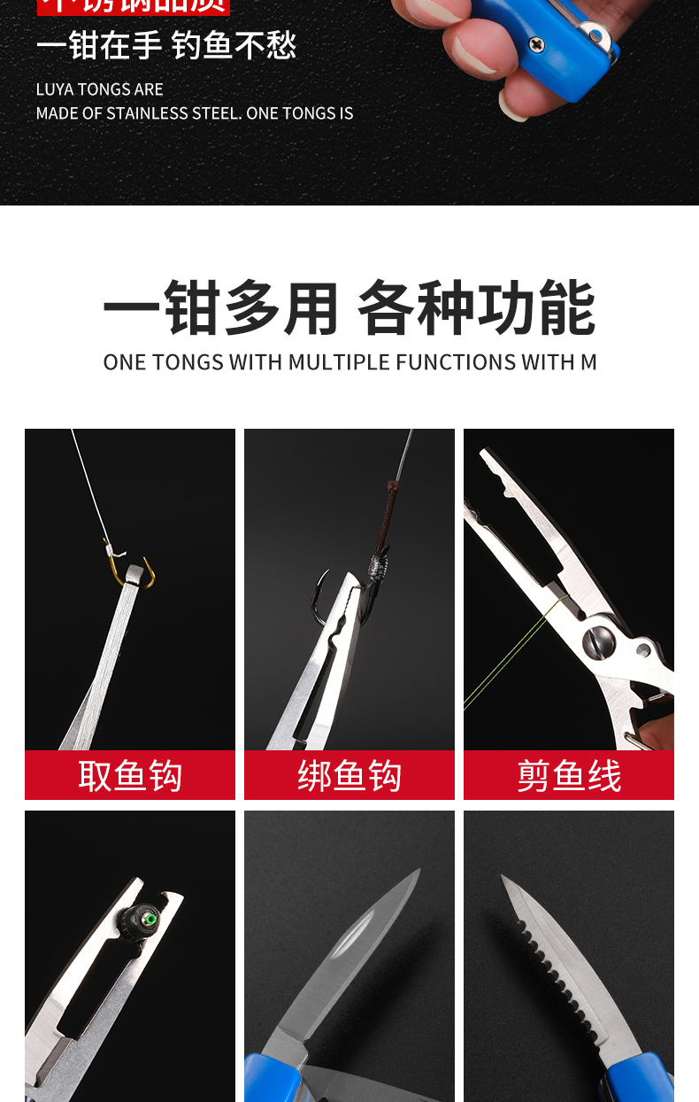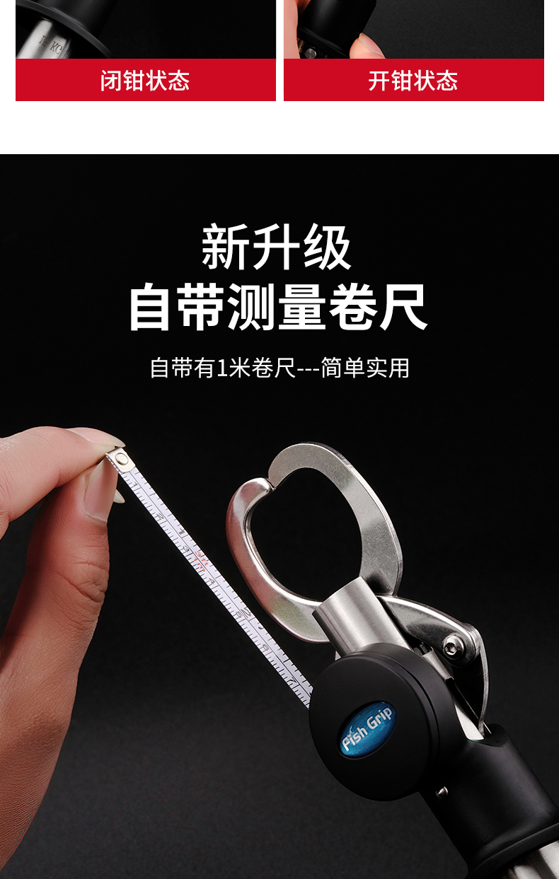 루야 통 물고기 컨트롤러 세트 벨트 스케일 제어 대형 물체 다기능 스테인레스 스틸 생선 클립 생선 펜치 바인딩 후크