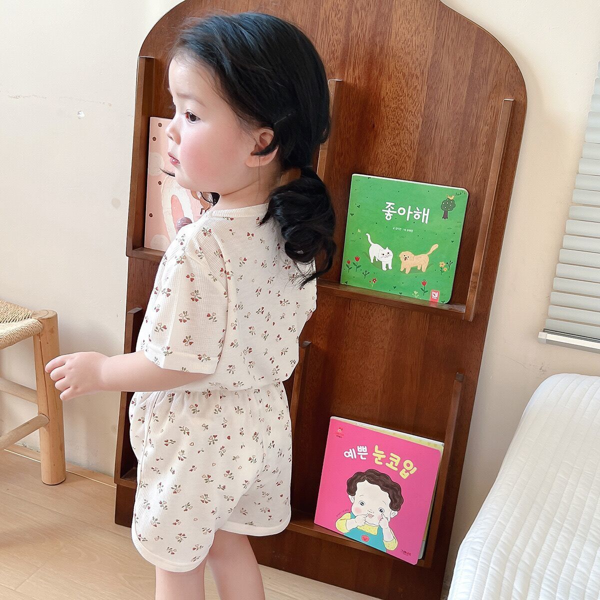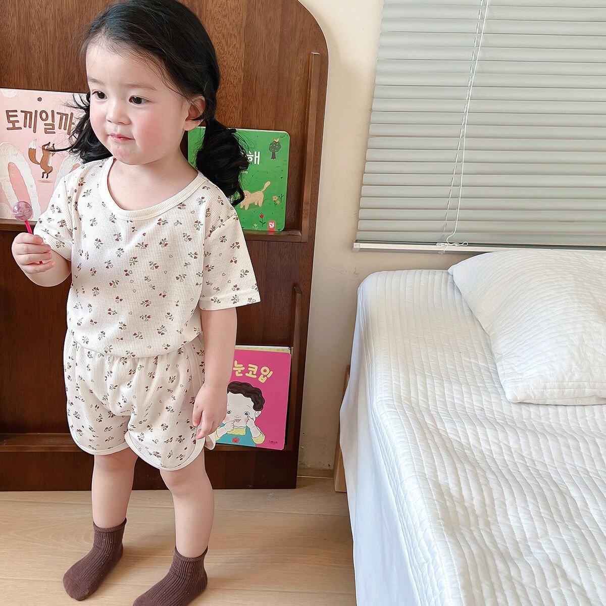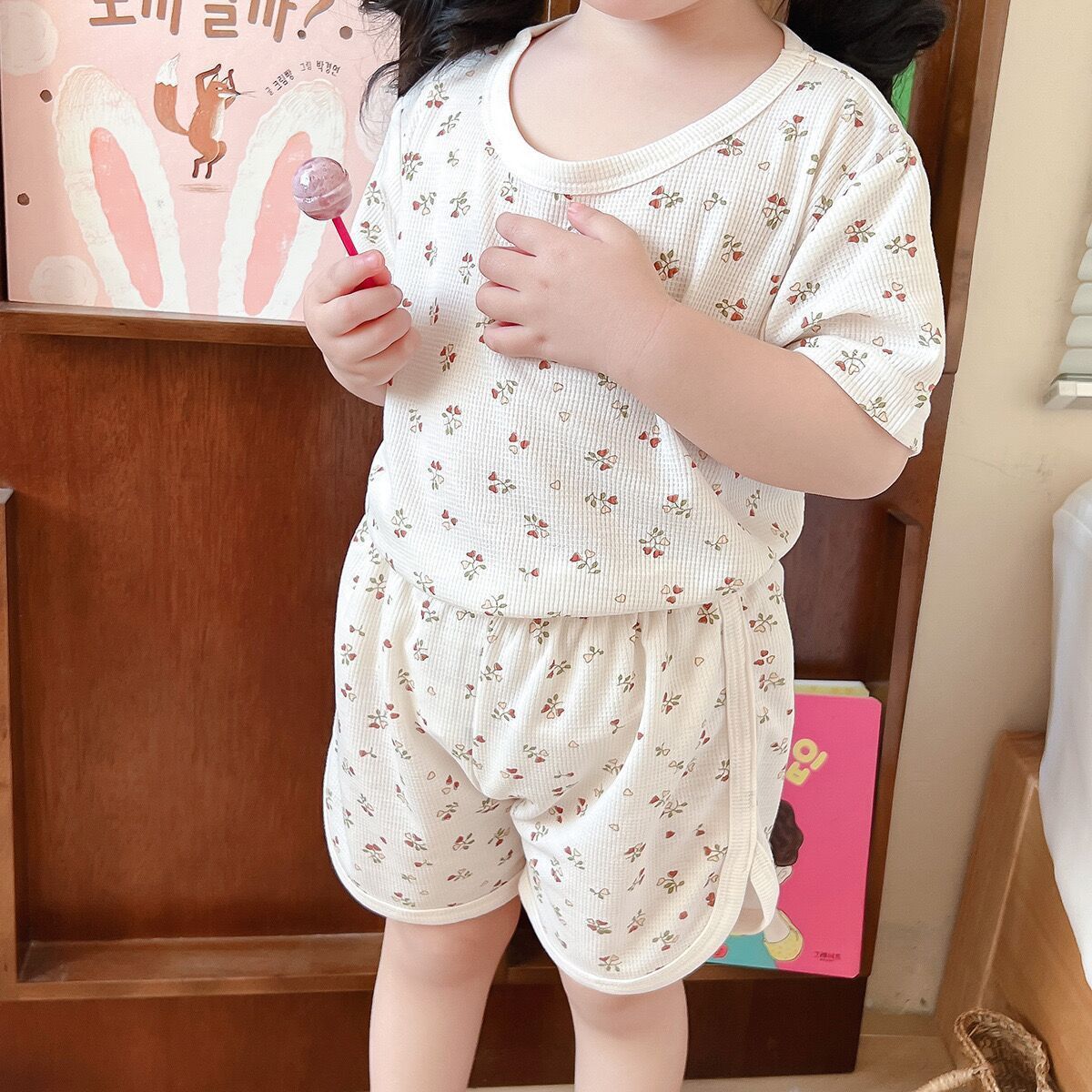 소년 소녀 잠옷 여름 새로운 아이스 실크 얇은 인쇄 홈 옷 아기 분할 짧은 소매 바지 에어컨 의류 세트스토어 가기