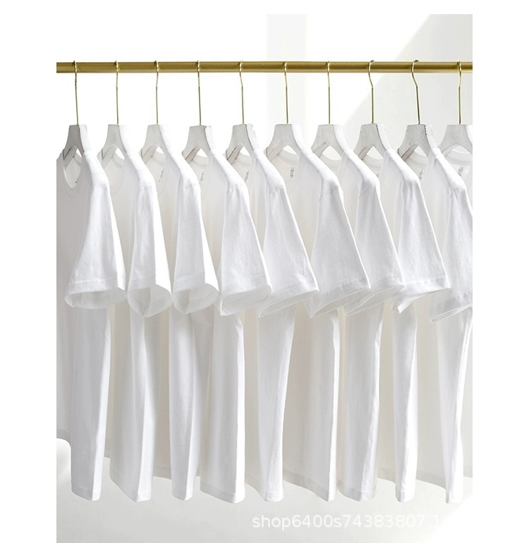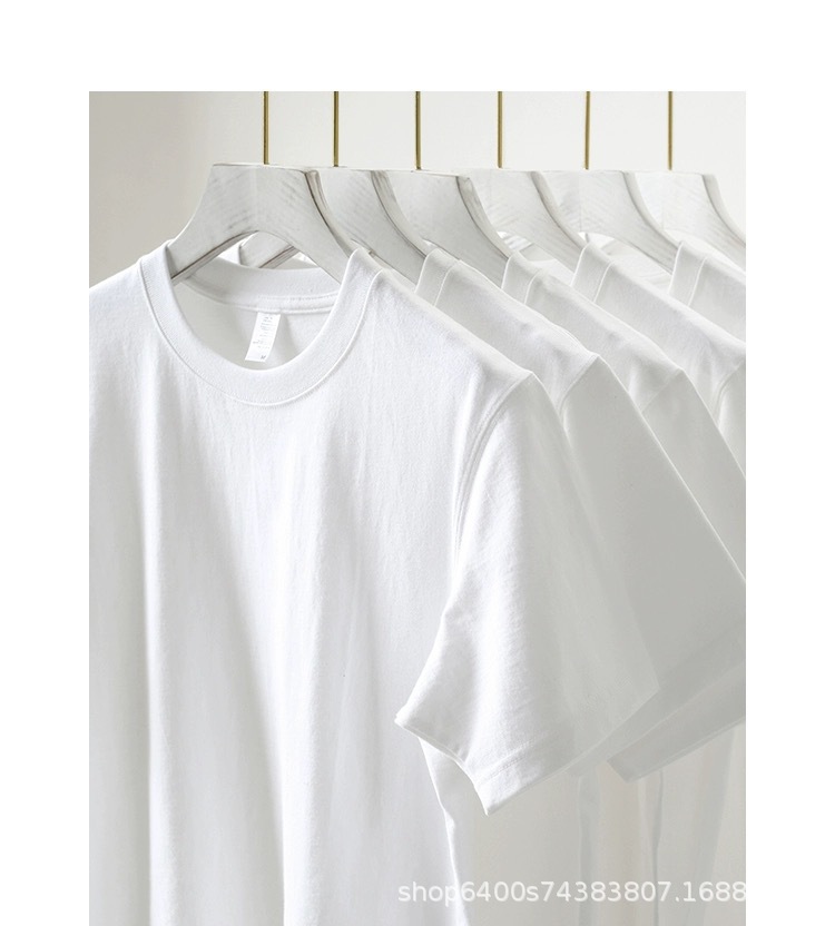 헤비 티셔츠 미국 퓨어 코튼 퓨어 화이트 반팔 티셔츠 남성용 솔리드 컬러 기본 티 루즈 캐주얼 여름 착용스토어 가기
