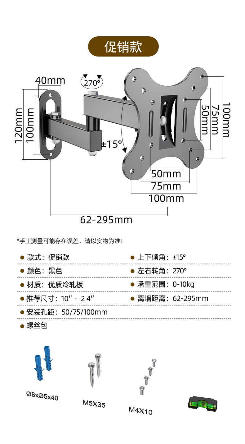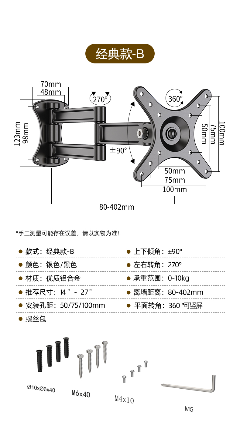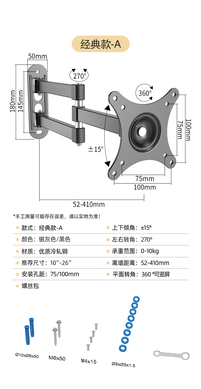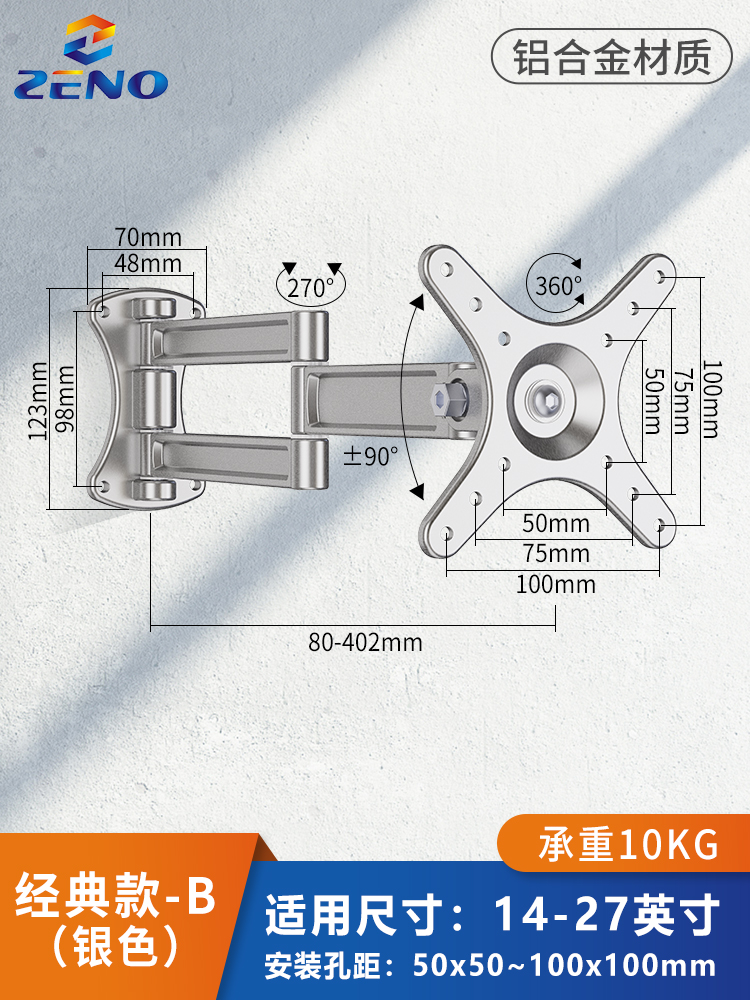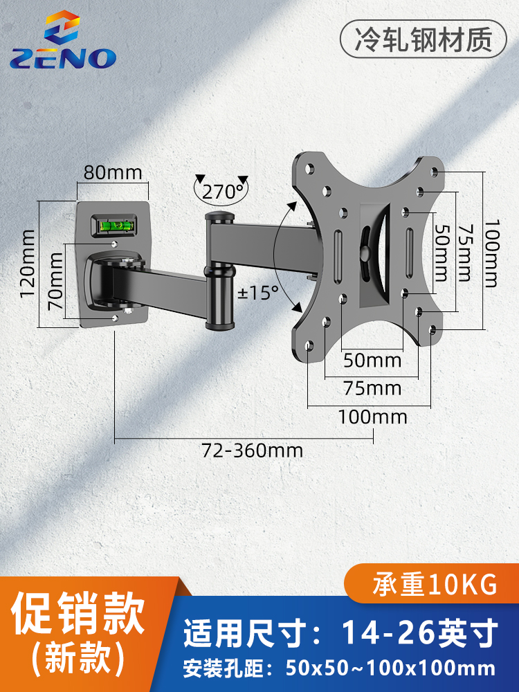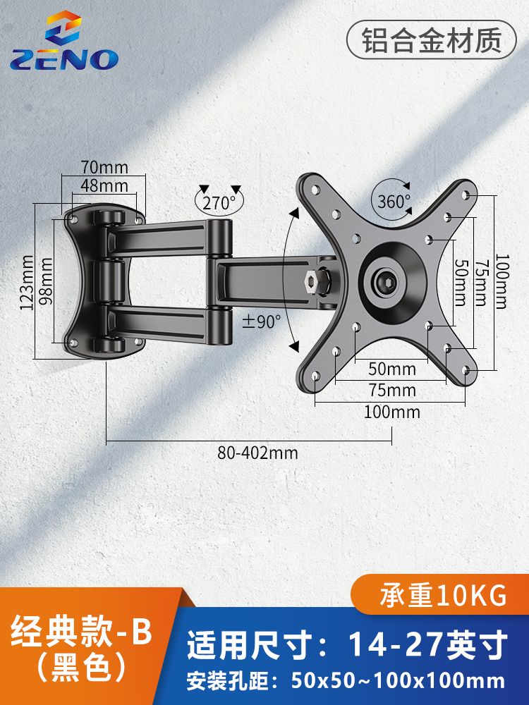 모니터 브래킷 벽걸이 형 TV 걸이 형 랙 벽걸이 형 랙 컴퓨터 화면 수직 스크린 회전 텔레스코픽 유니버설스토어 가기