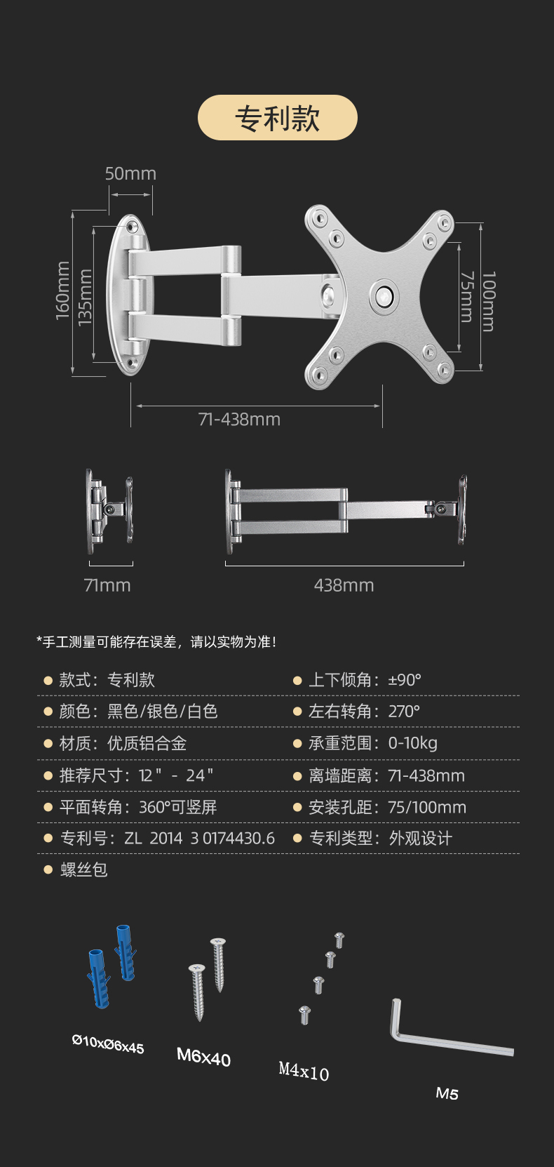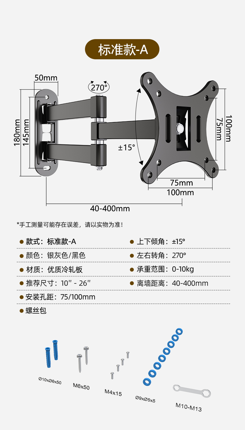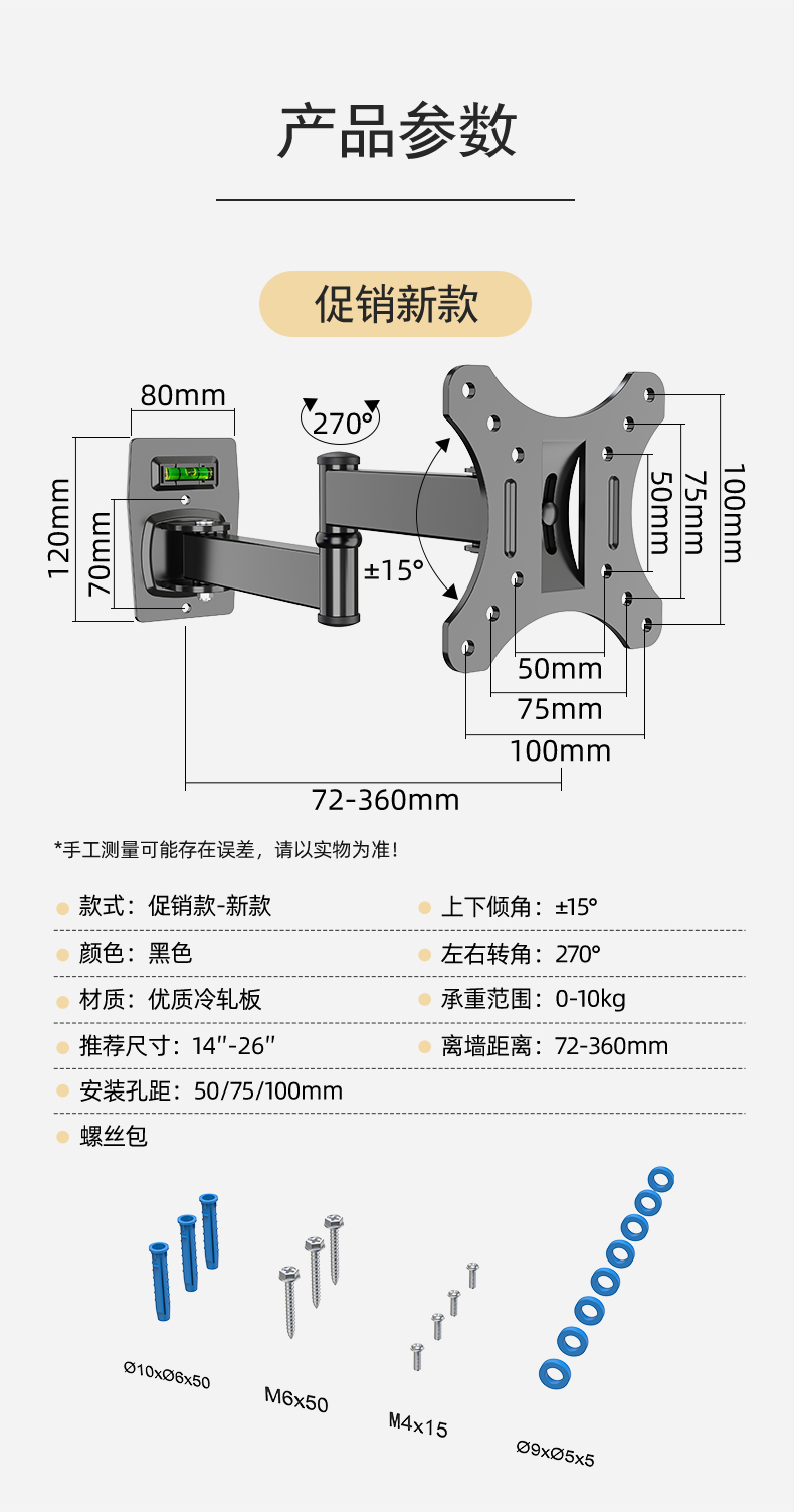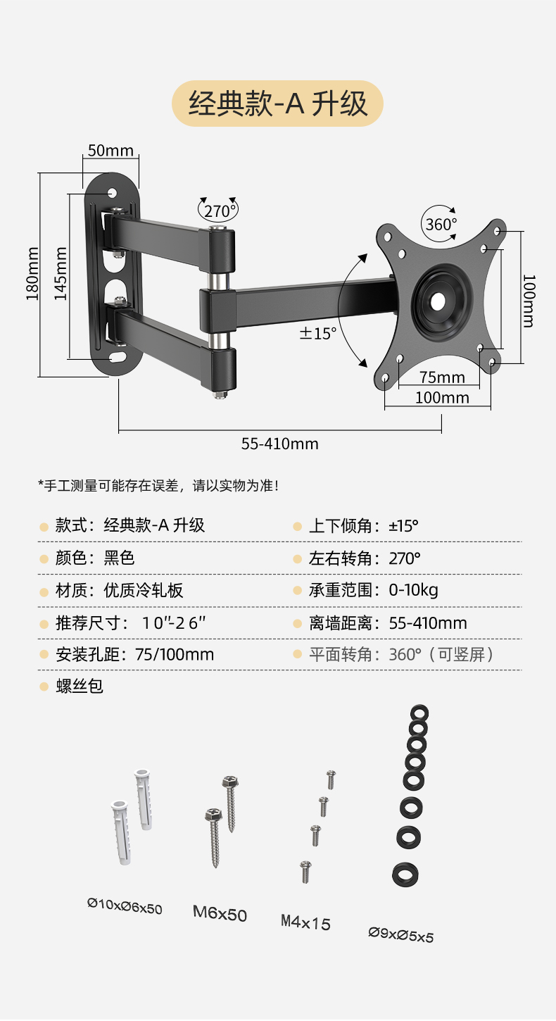 모니터 브래킷 벽걸이 형 TV 걸이 형 랙 벽걸이 형 랙 컴퓨터 화면 수직 스크린 회전 텔레스코픽 유니버설스토어 가기