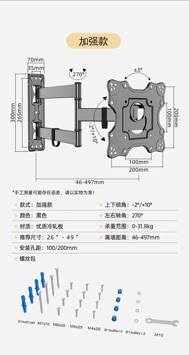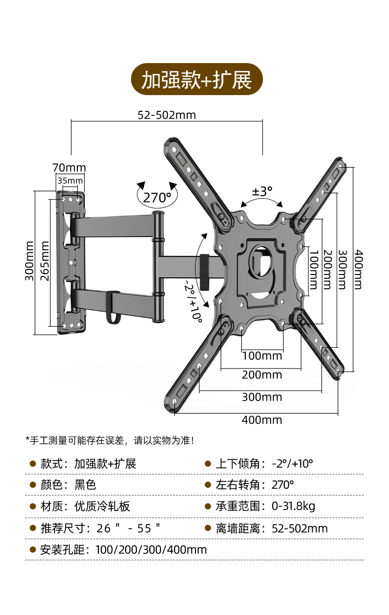 • 강화 버전-B(냉간 압연 판) 26"-55" 검정색