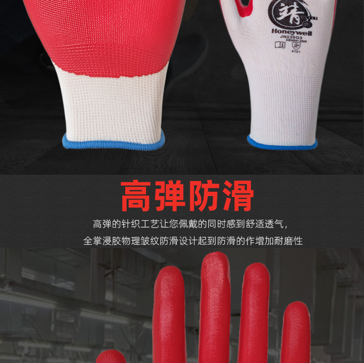 허니웰 JN230G3 니트릴 코팅 작업 나일론 니트 팜 딥 고무 내마모성 노동 보호 장갑스토어 가기