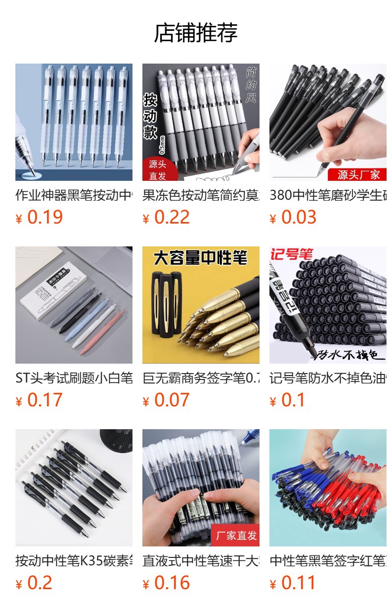此链接均为1支笔的价格,黑红蓝盒装为12支/盒(满12支发1盒,不足12支的统一发散装);白盒为10支/盒,不足10支发散装,白盒默认发黑色(订单无备注颜色统一发黑色),笔芯订单无备注统一默认发黑色。