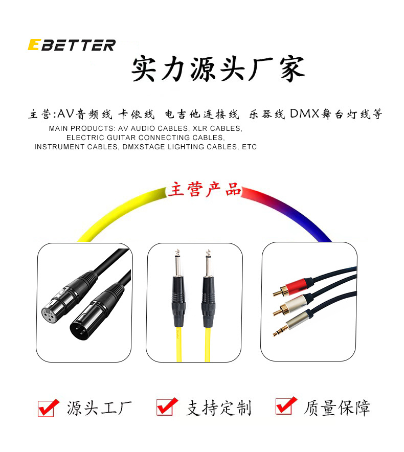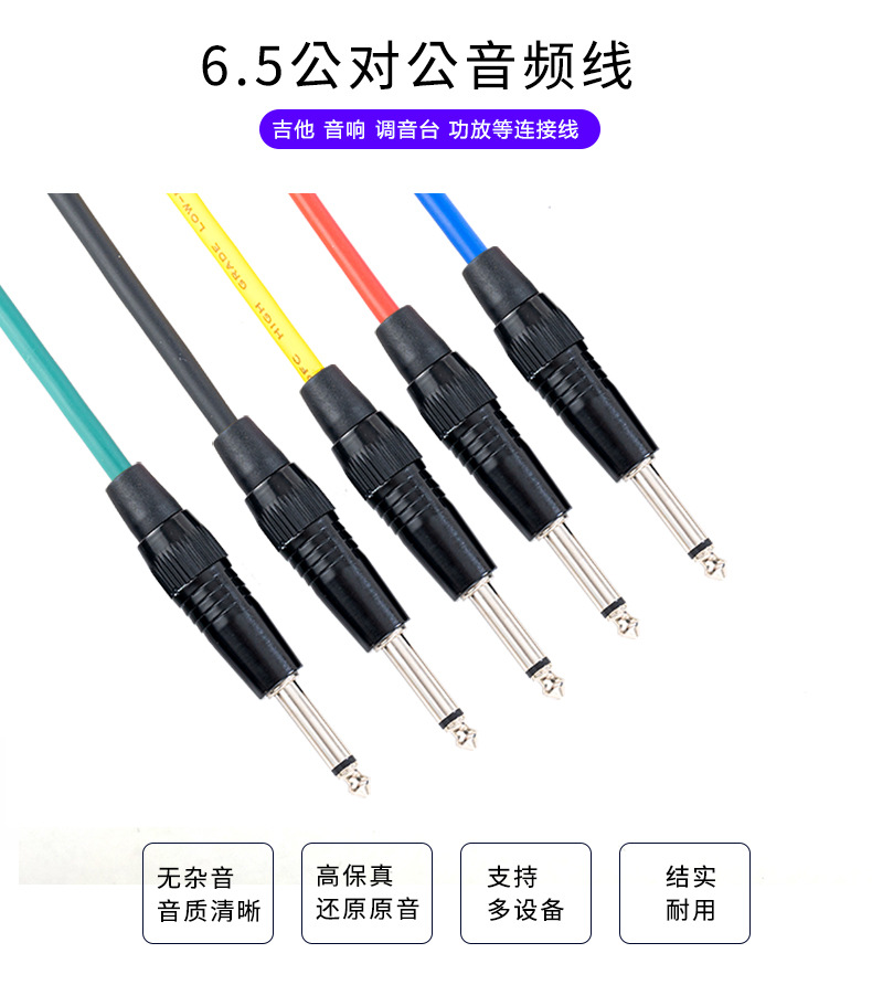 멀티 장치 산소없는 구리 기타 케이블 전기 6.5mm 인터페이스 남성-남성 오디오 케이블
