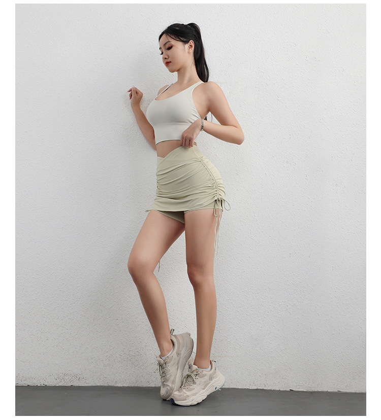 뜨거운 소녀 스커트 여성의 여름 새로운 디자인 센스 높은 허리 타이트 드로우 스트랩 주름 가방 엉덩이 빠른 건조 통기성 스커트스토어 가기