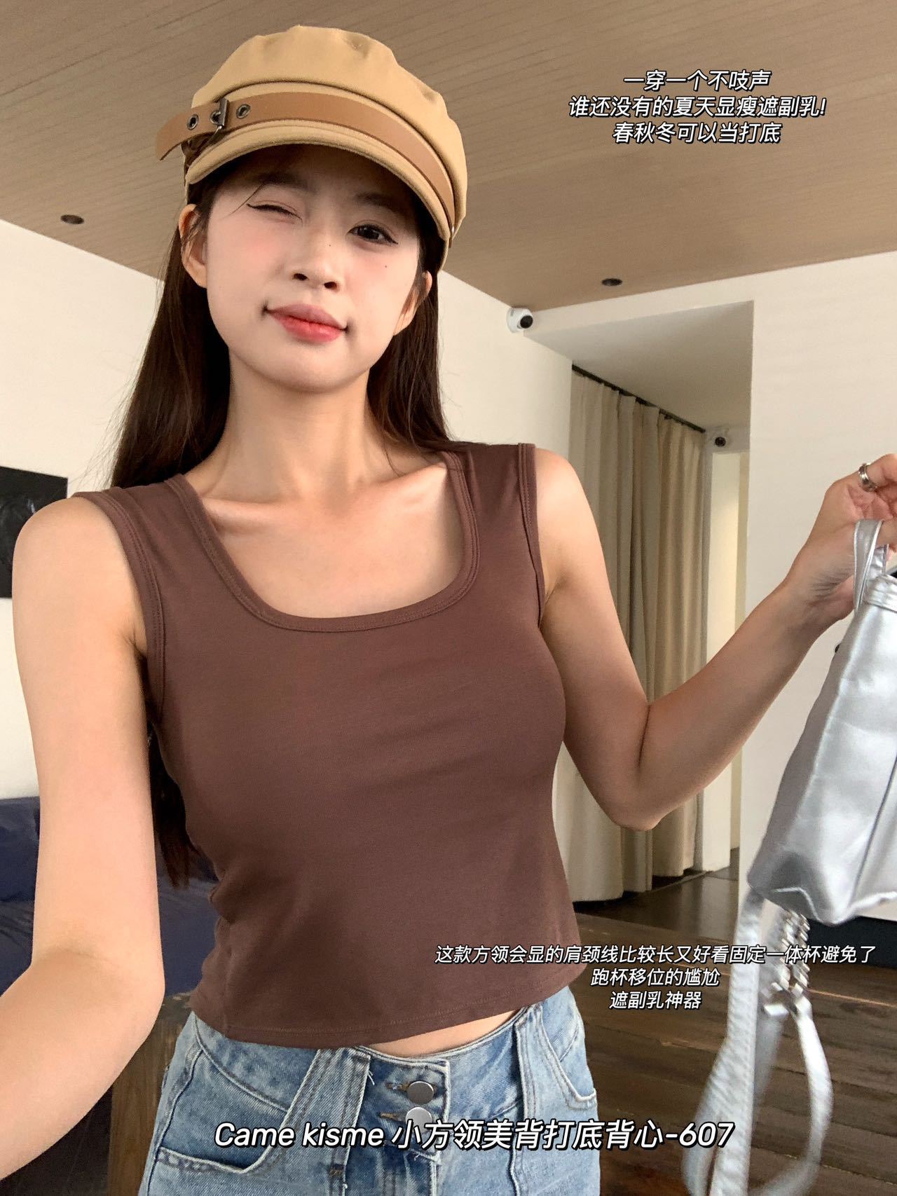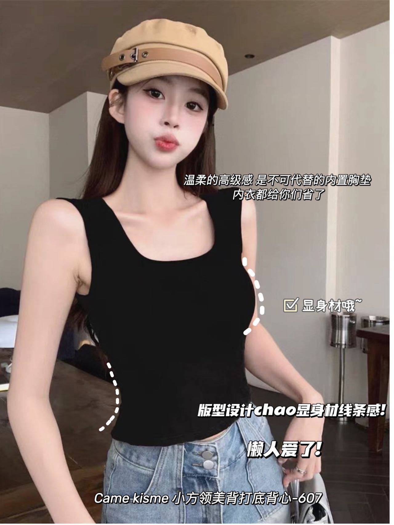 작은 광장 칼라 아름다운 백베이스 조끼 607 높은 탄성 편안한 통기성 피부 친화적 인 슬리밍 한국식 여성 조끼스토어 가기