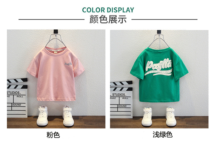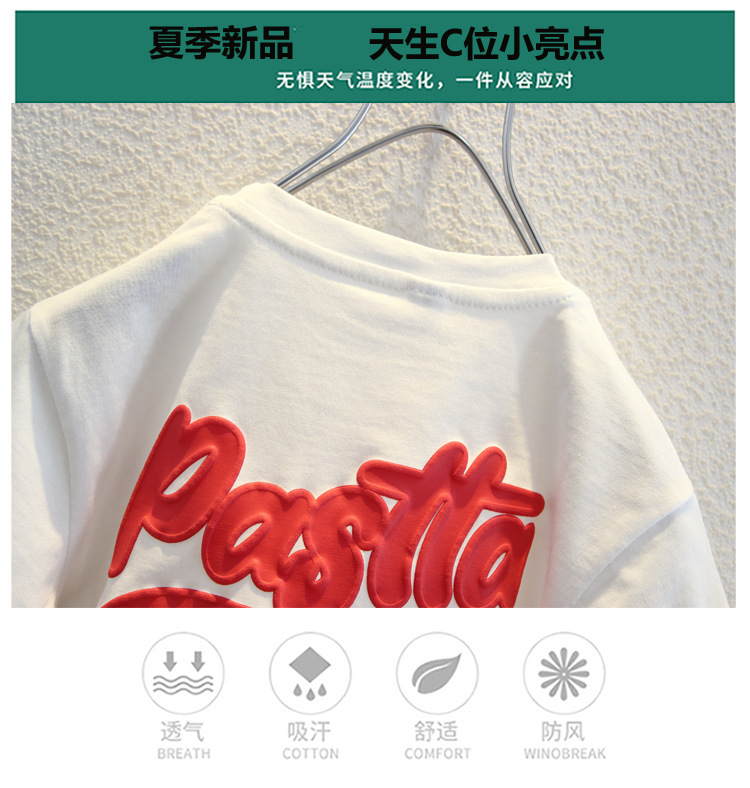 남자들의 여름 반팔 티셔츠 2024 중소 어린이 트렌디 한 외국식 라운드 넥 탑을위한 새로운 어린이 여름 원피스스토어 가기