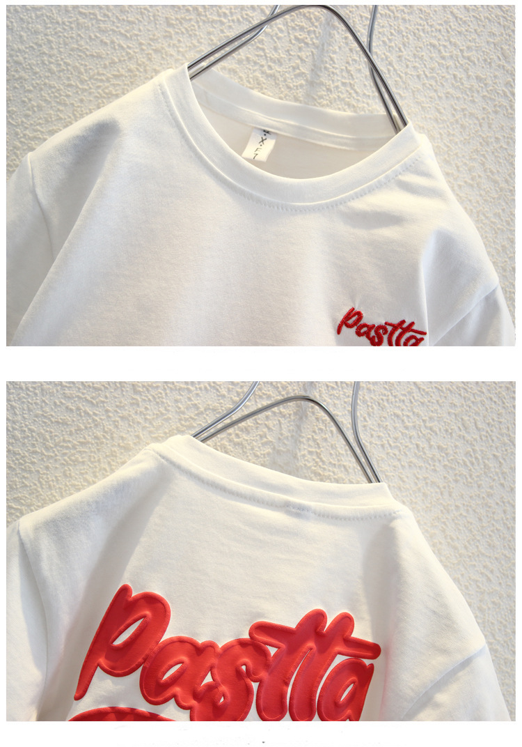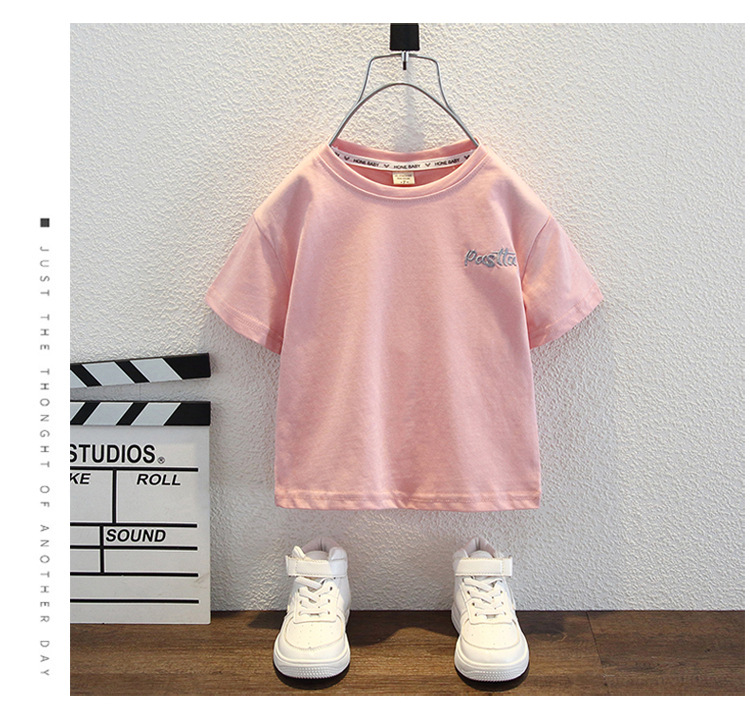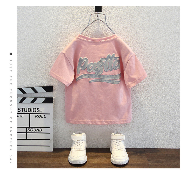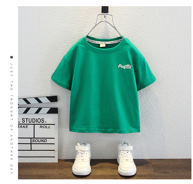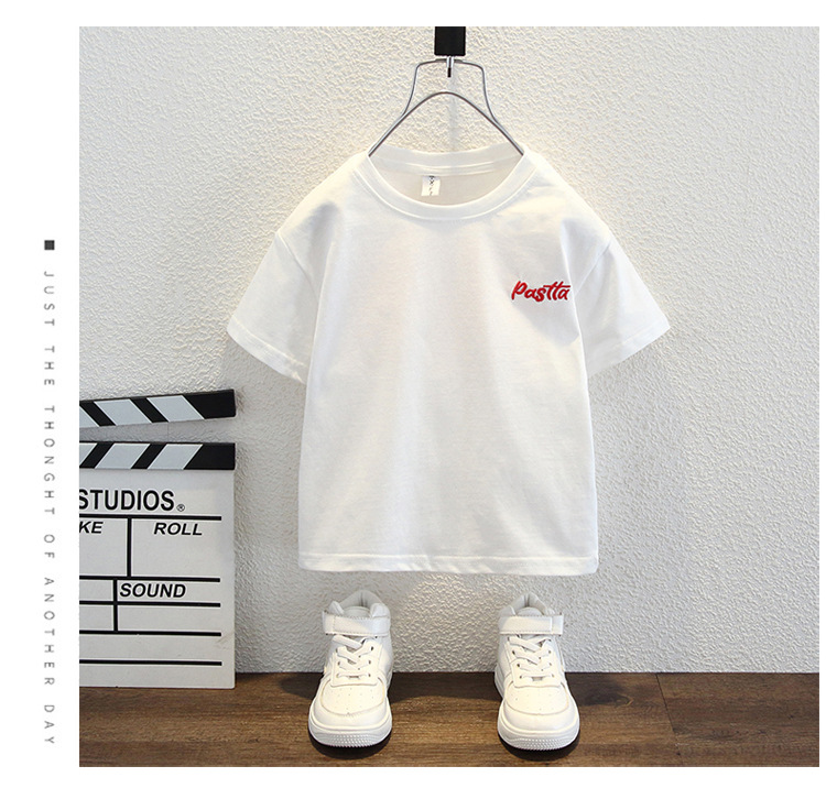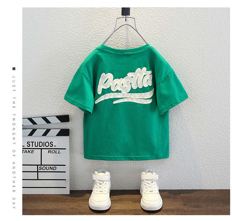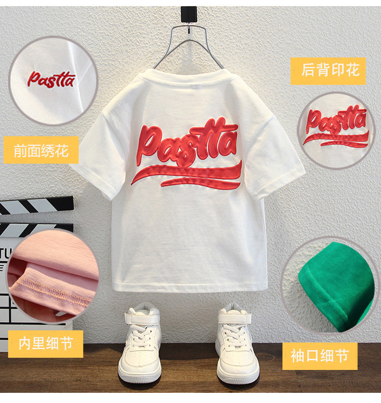 남자들의 여름 반팔 티셔츠 2024 중소 어린이 트렌디 한 외국식 라운드 넥 탑을위한 새로운 어린이 여름 원피스