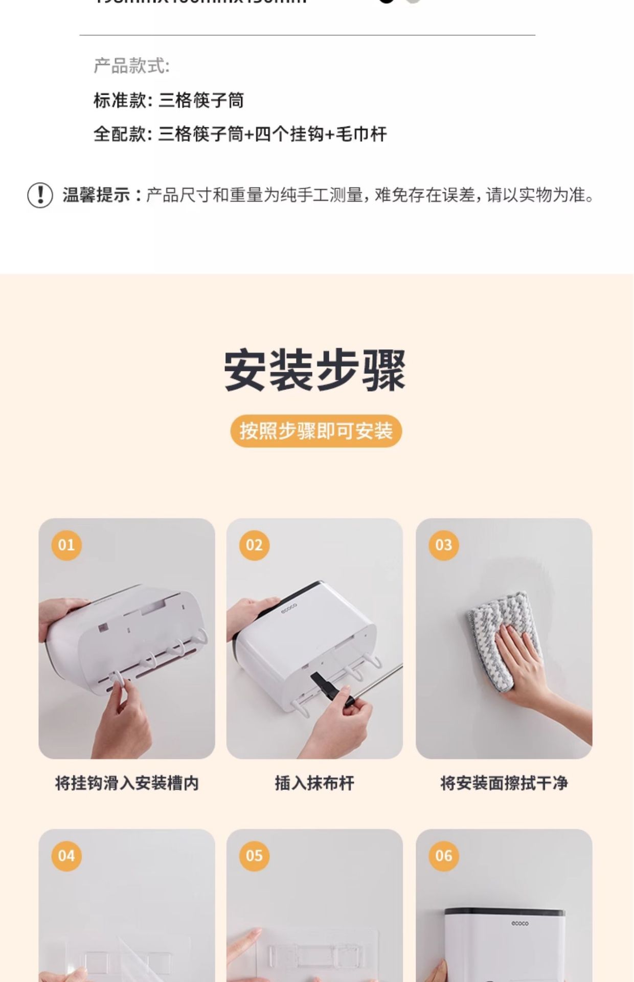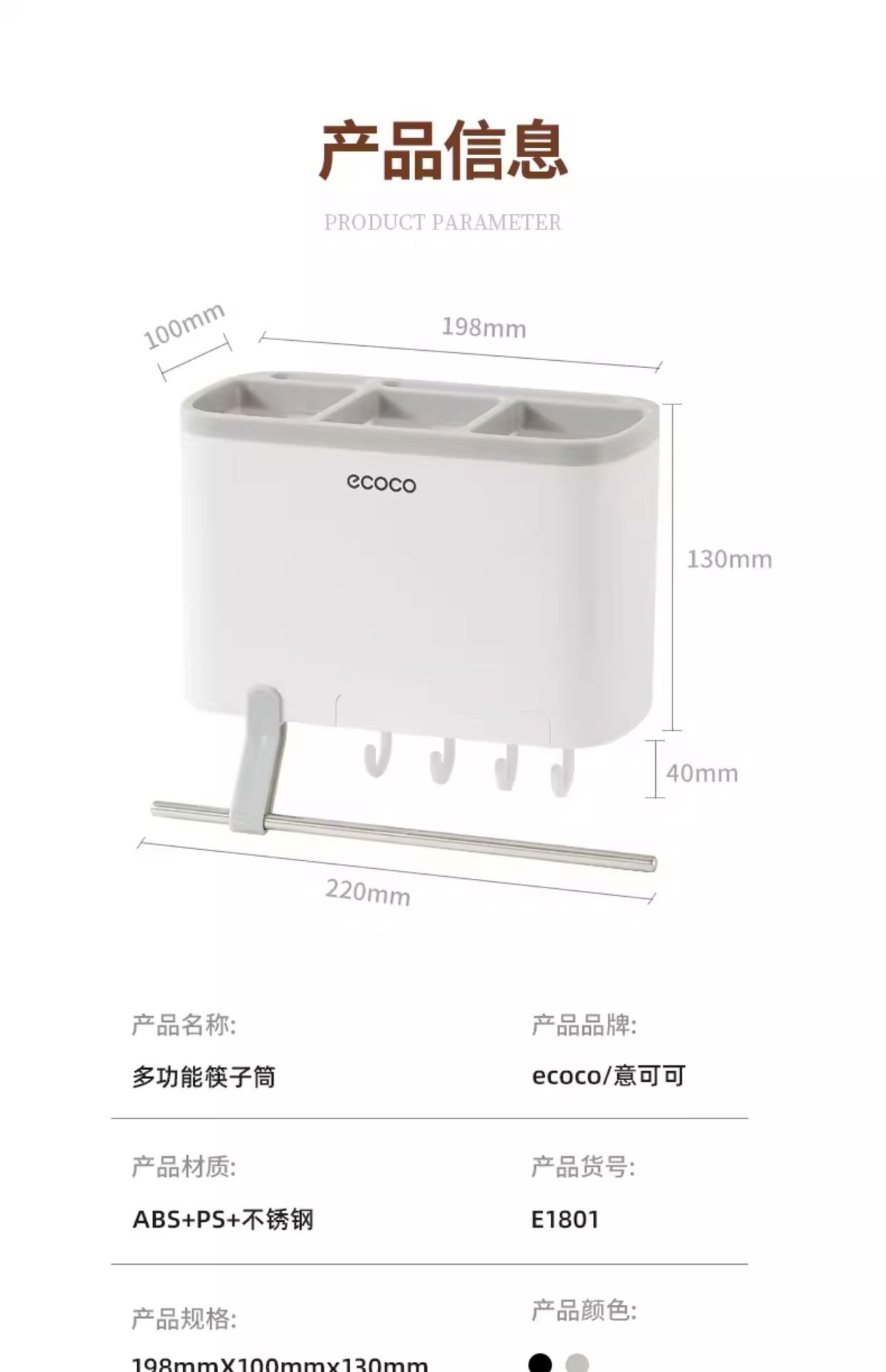 • [그레이] 풀옵션 - 3칸 젓가락통 + 고리 + 걸레봉