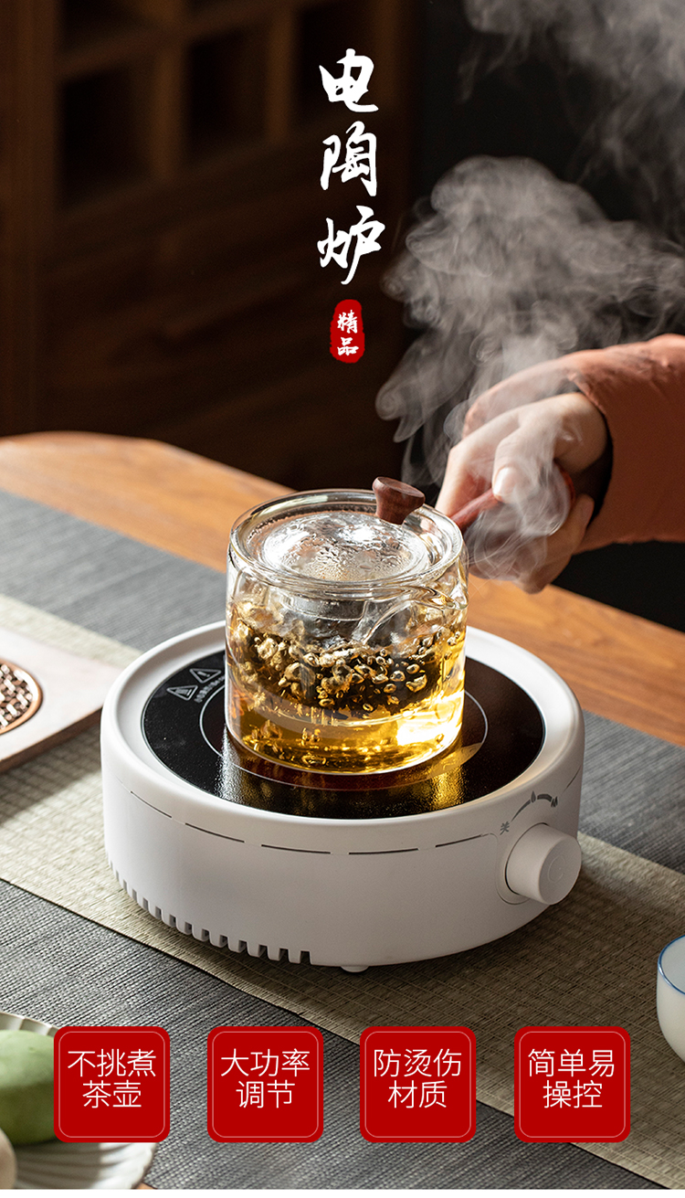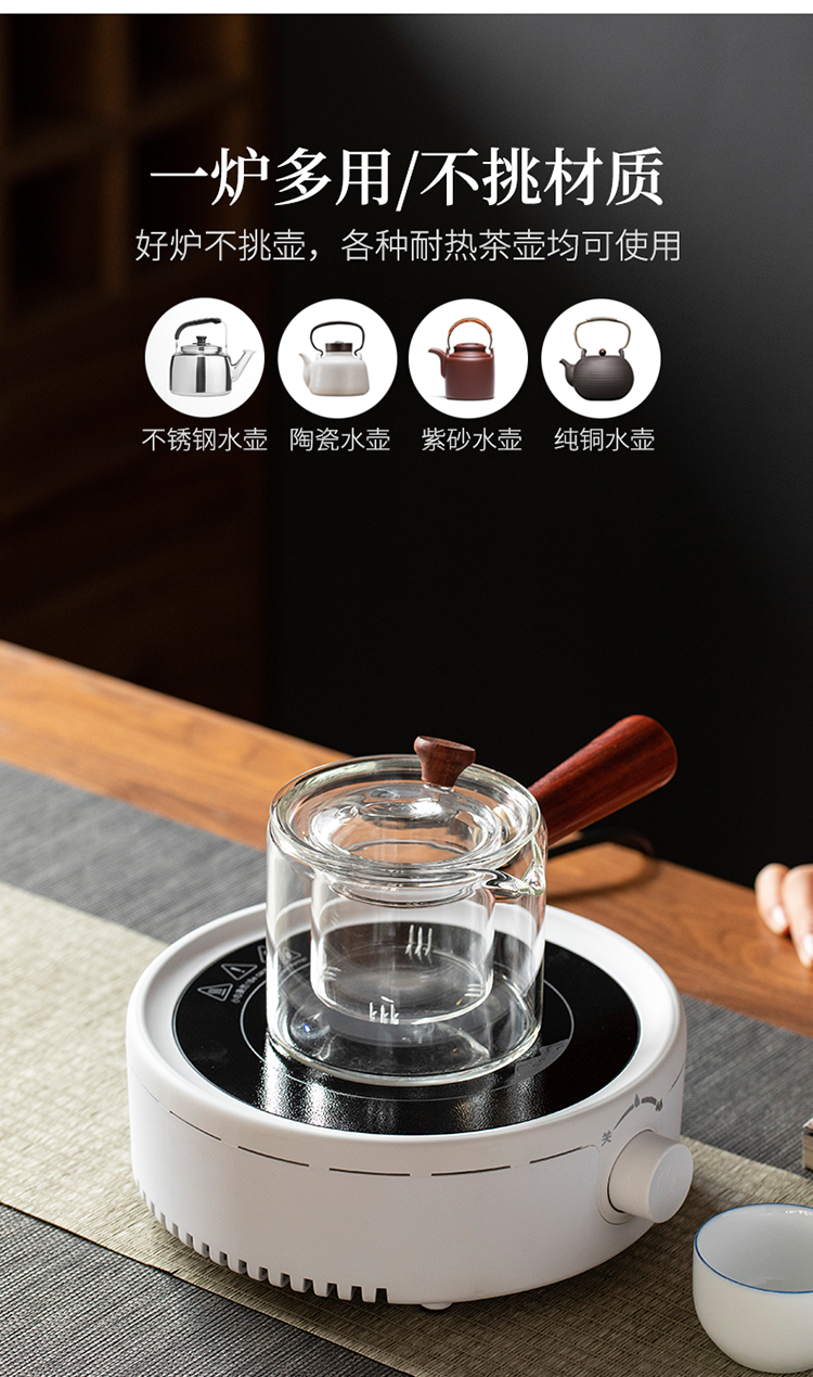 미니 전기 도자기 스토브 작은 차 메이커 유리 냄비 끓는 물 차 작은 유도 쿠커 차 스토브 라이트 웨이브 가정용 음소거